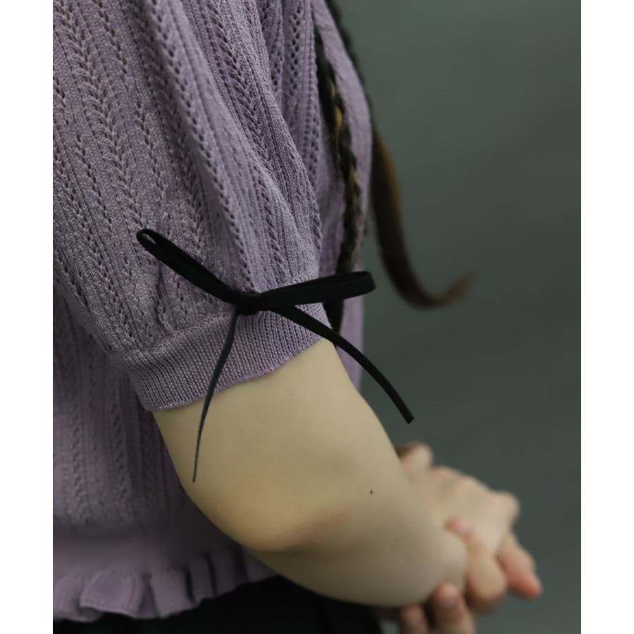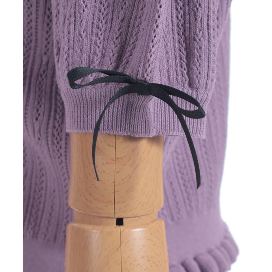 透かし編みとさらりとした素材で涼し気な印象に仕上げました。