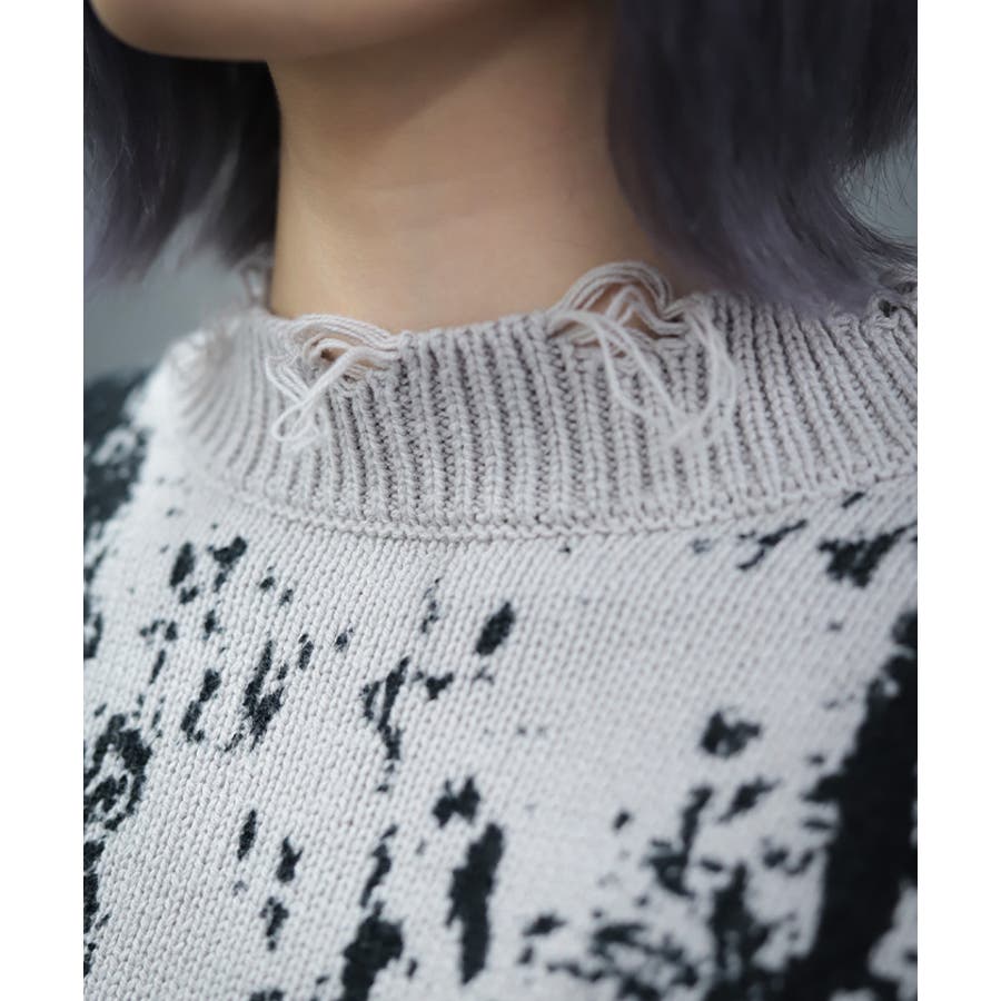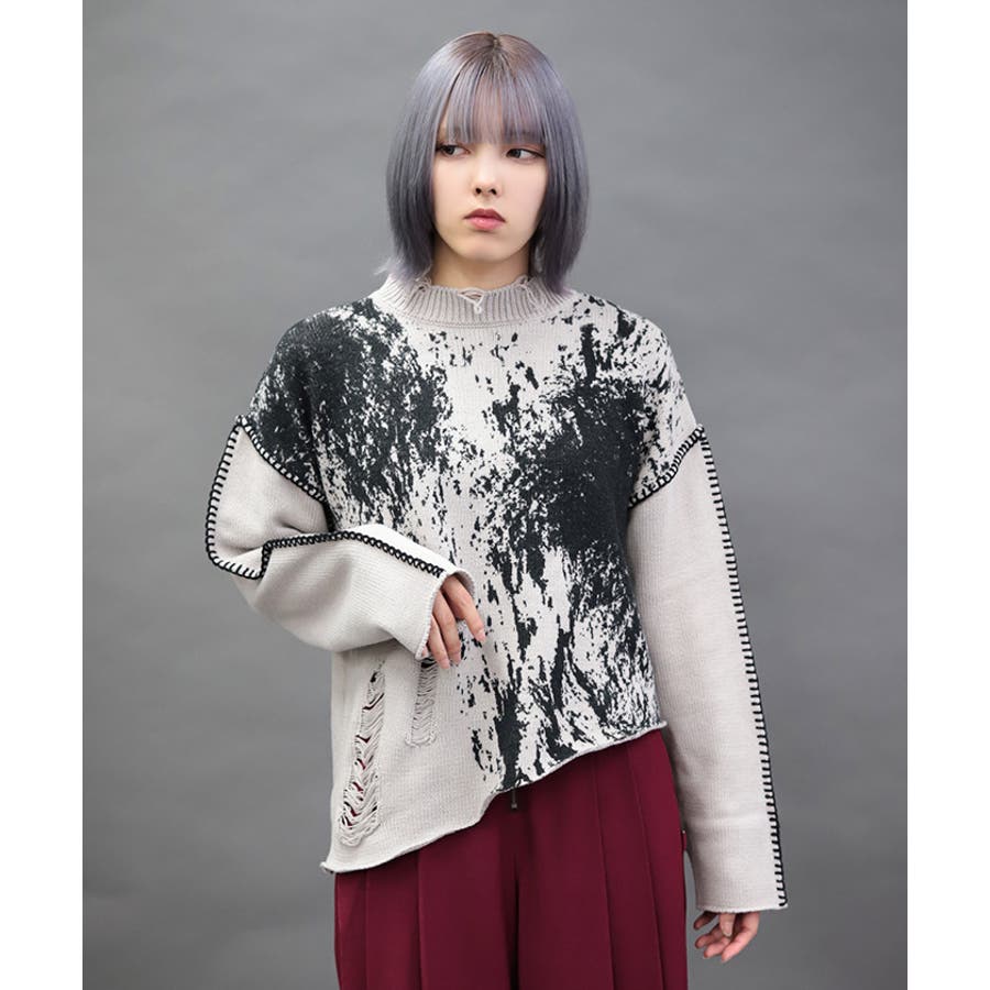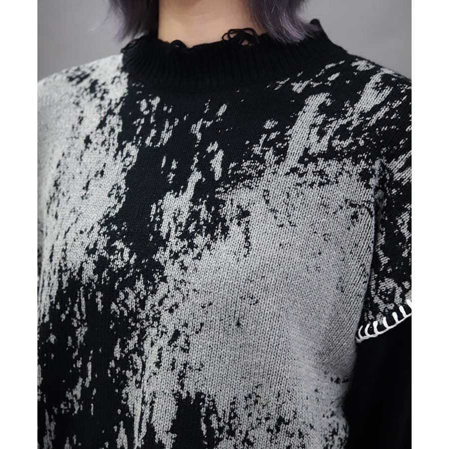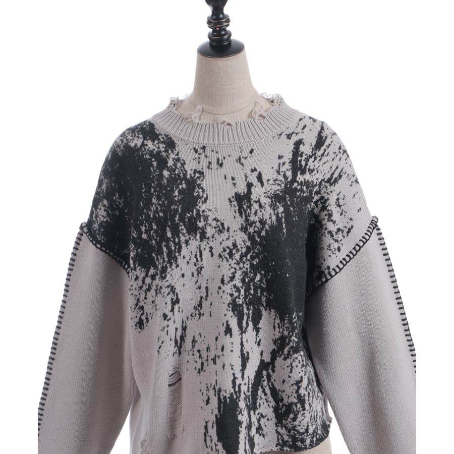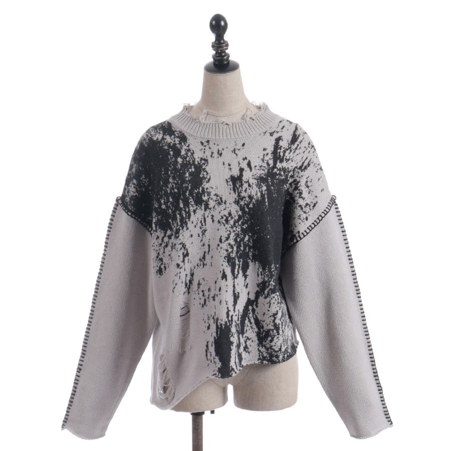ペイント風のプリントが辛口なニットプルオーバーが登場です!