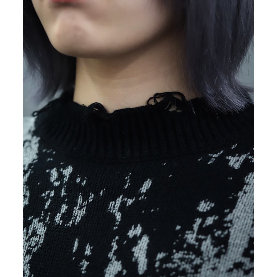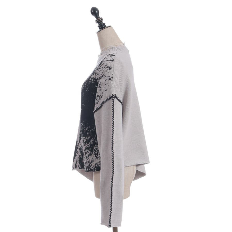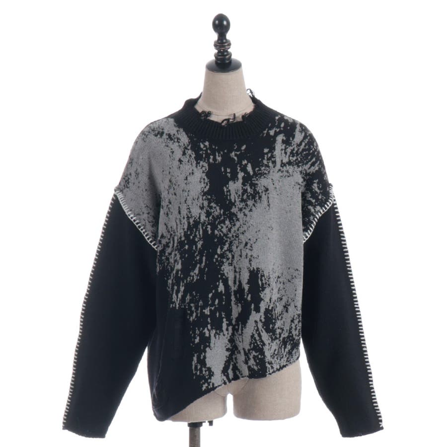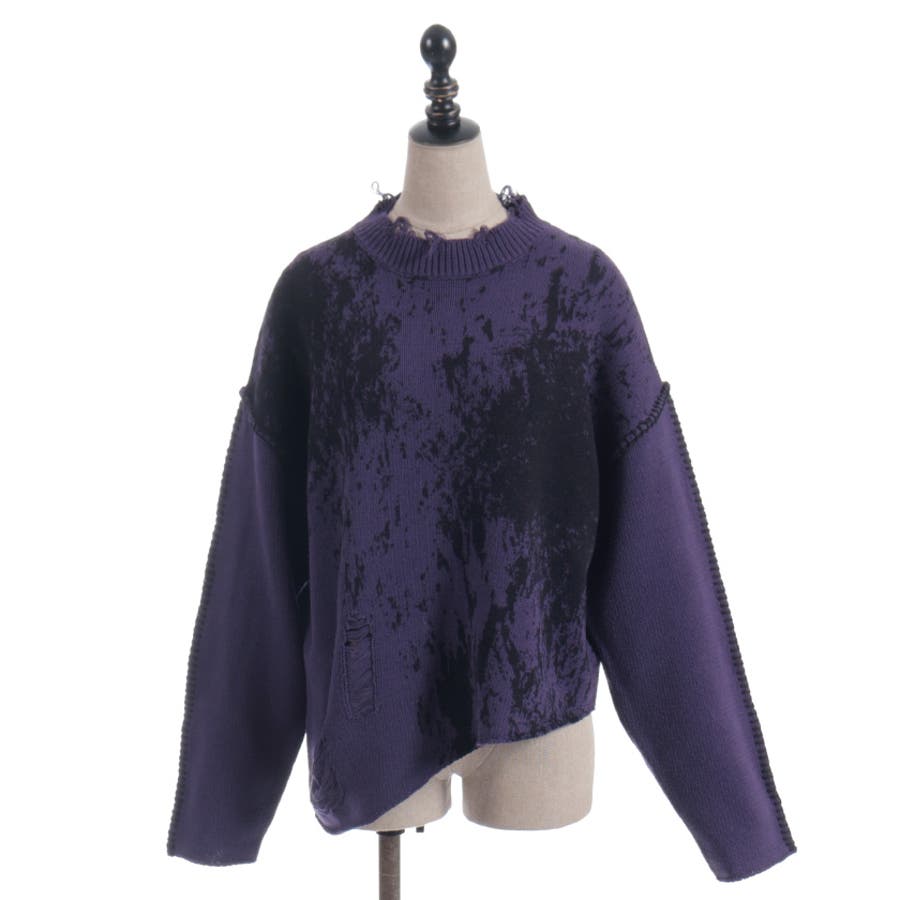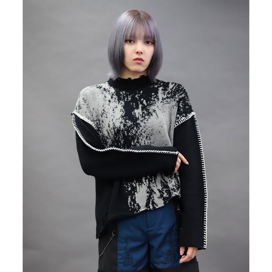 ペイント風のプリントが辛口なニットプルオーバーが登場です!