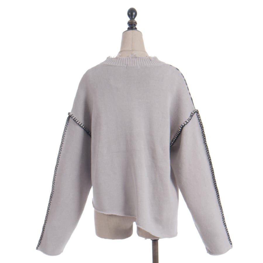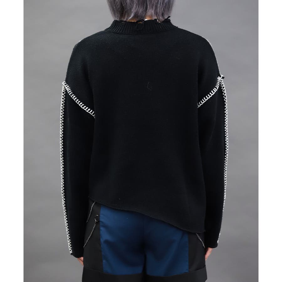 ダメージ風の編み地や配色ステッチがアクセントになっています。
