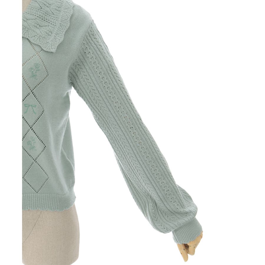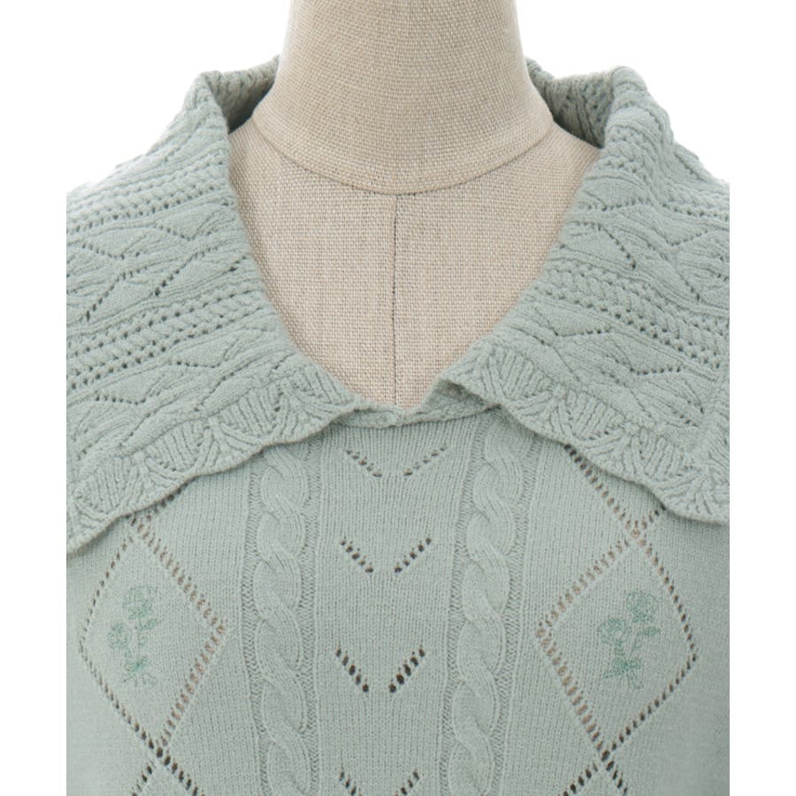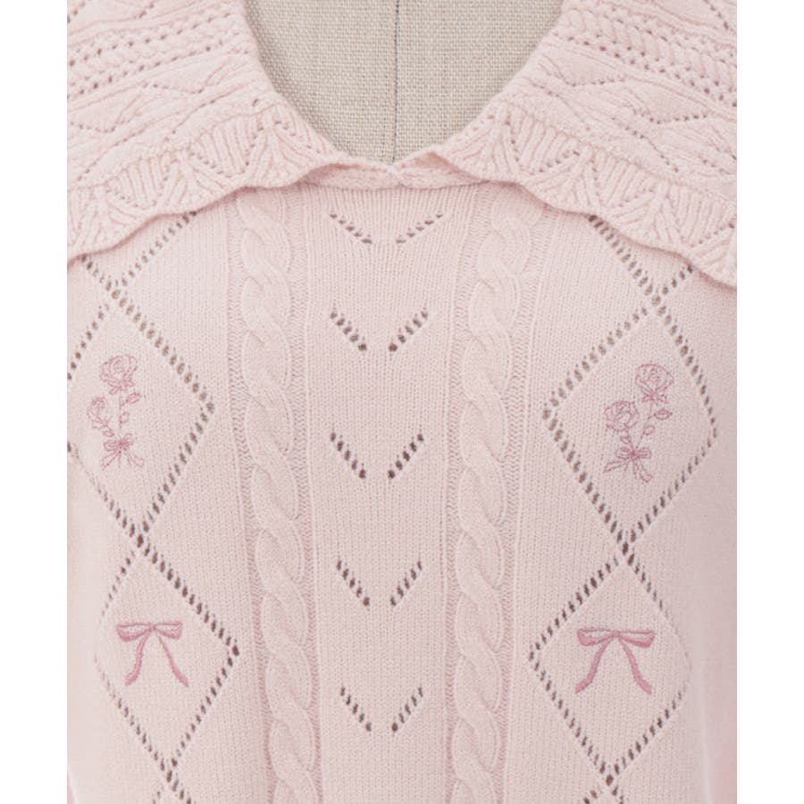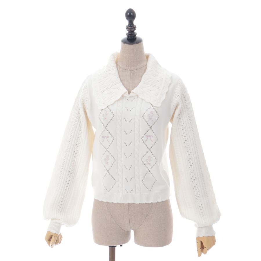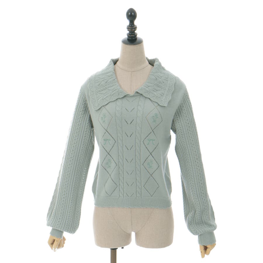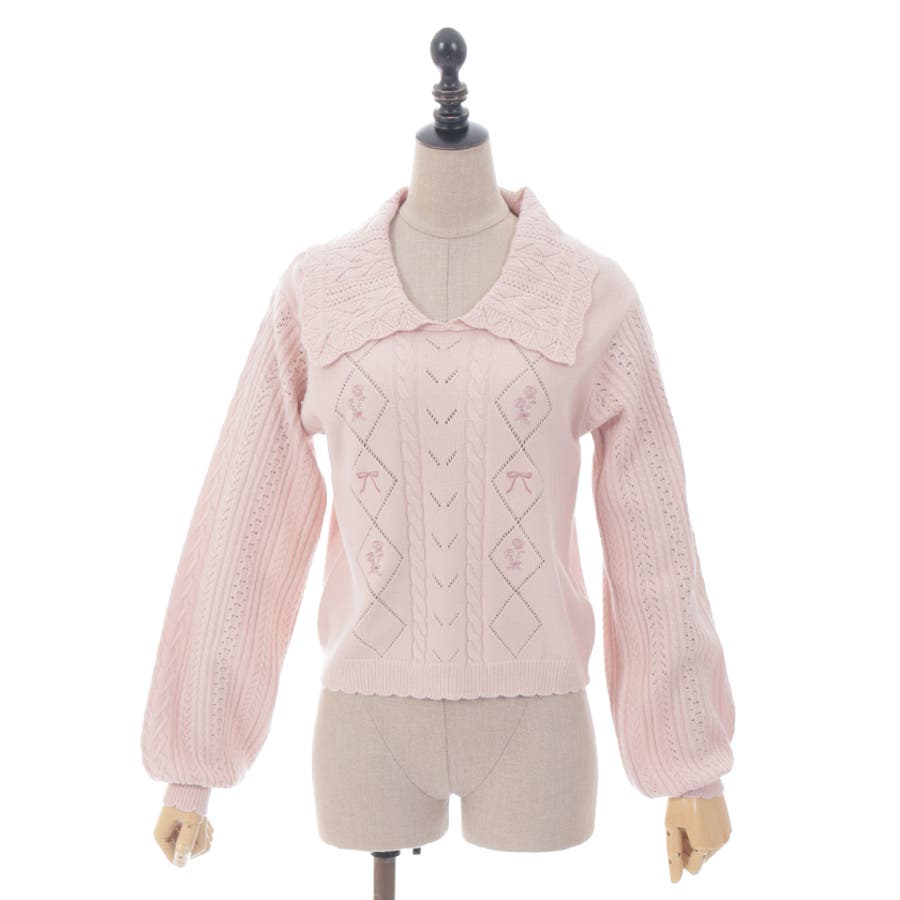 ブーケ刺繍ビッグ襟ニットプルオーバー