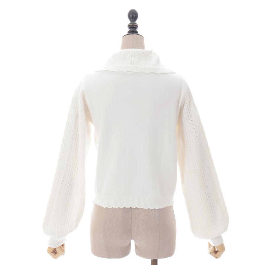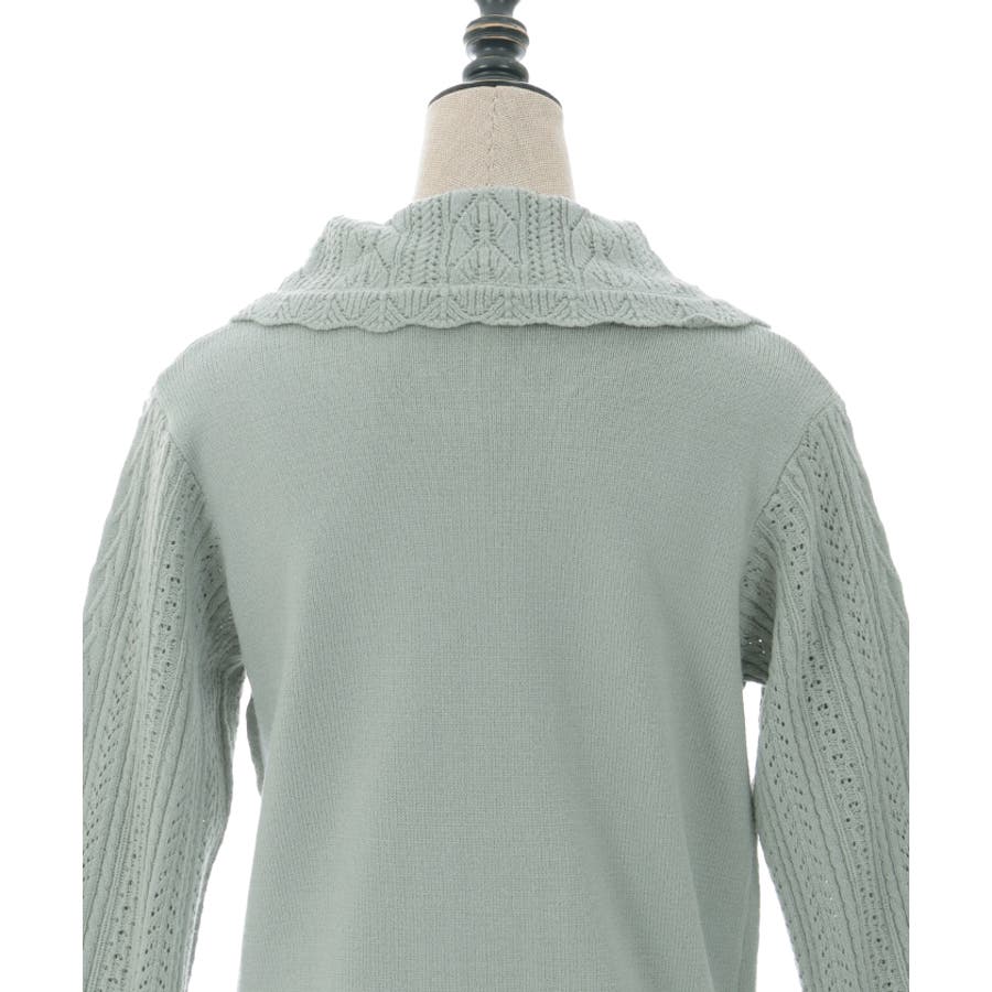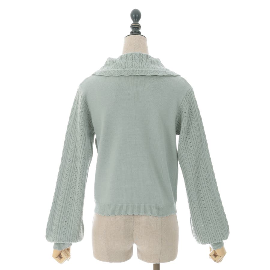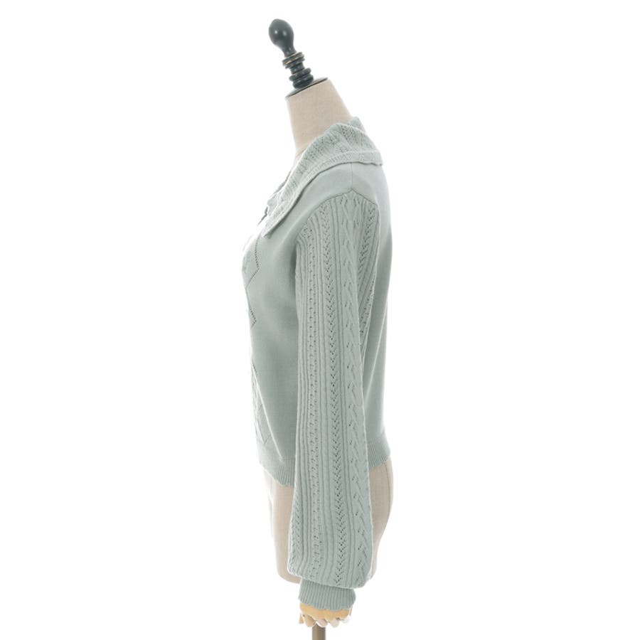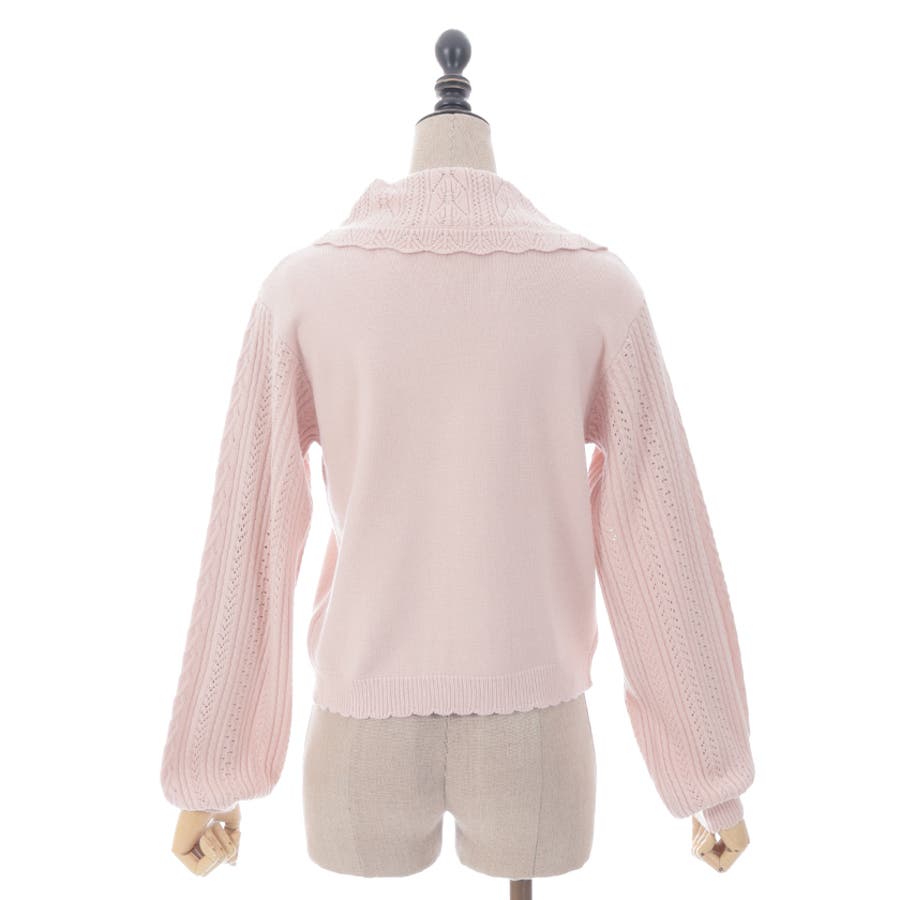 襟デザインのニットはカジュアルになりすぎず、ガーリーコーデにも◎!