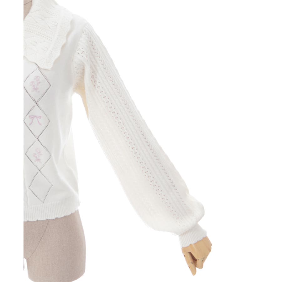 ブーケとリボンを刺繍であしらったニットプルオーバーです。