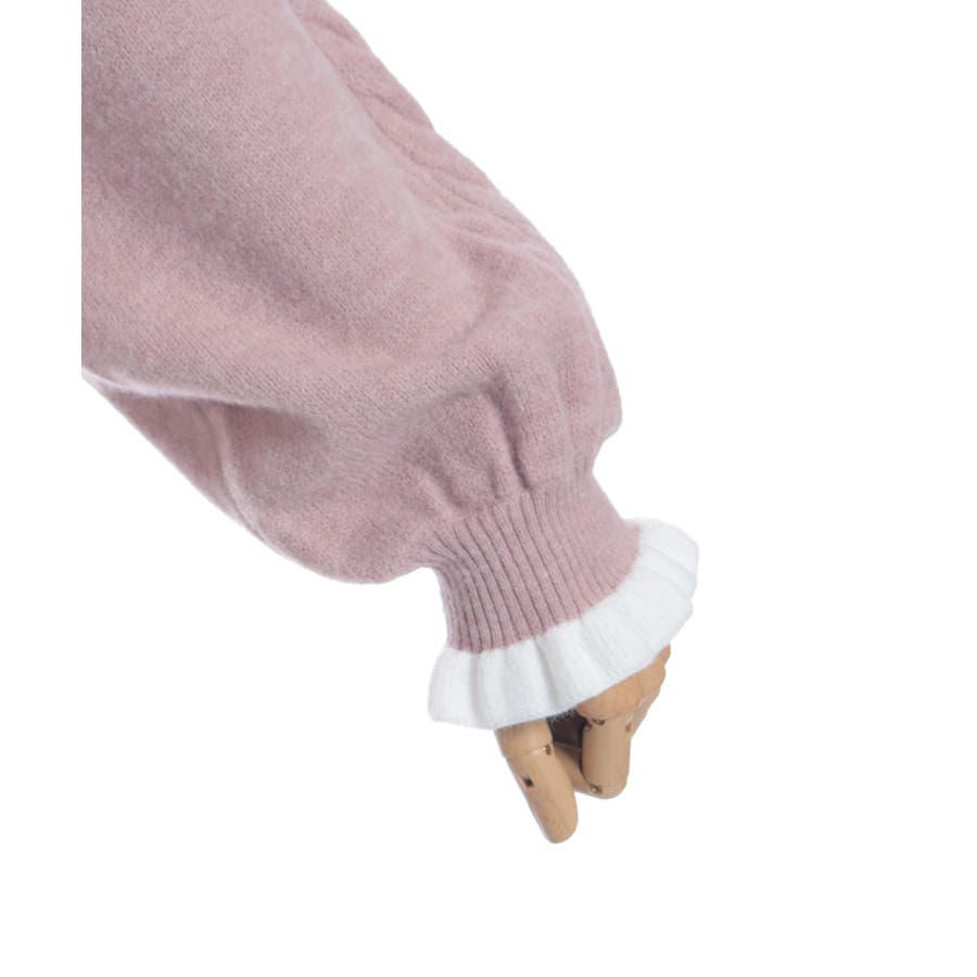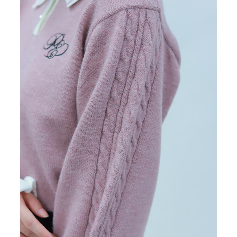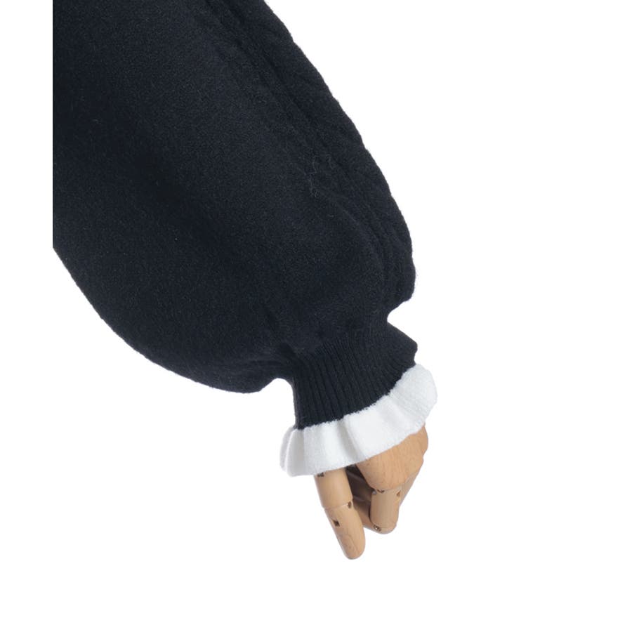 袖には大ぶりのケーブル柄をあしらい、デザインポイントになっています。