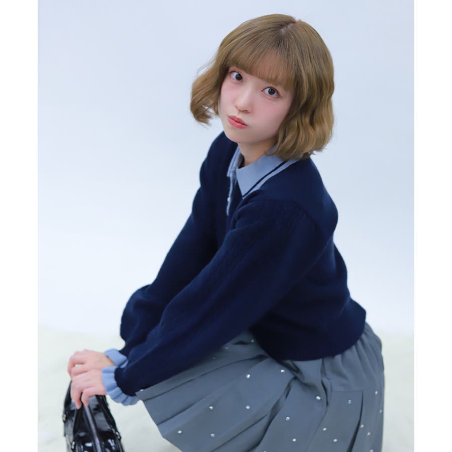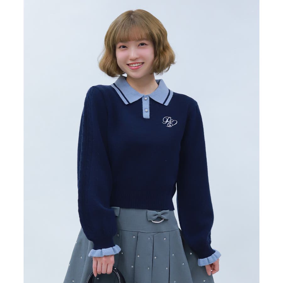 プレッピーコーデにぴったりのバイカラーのポロニットです。
