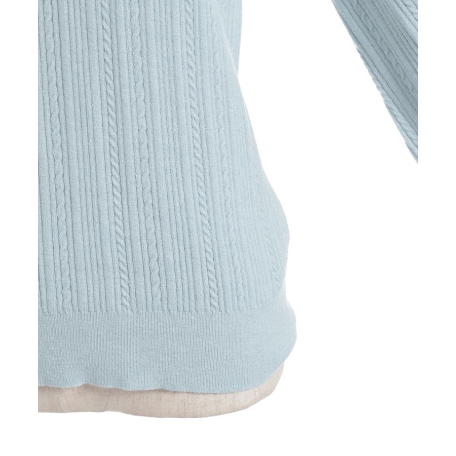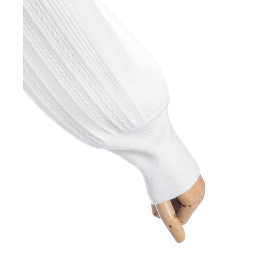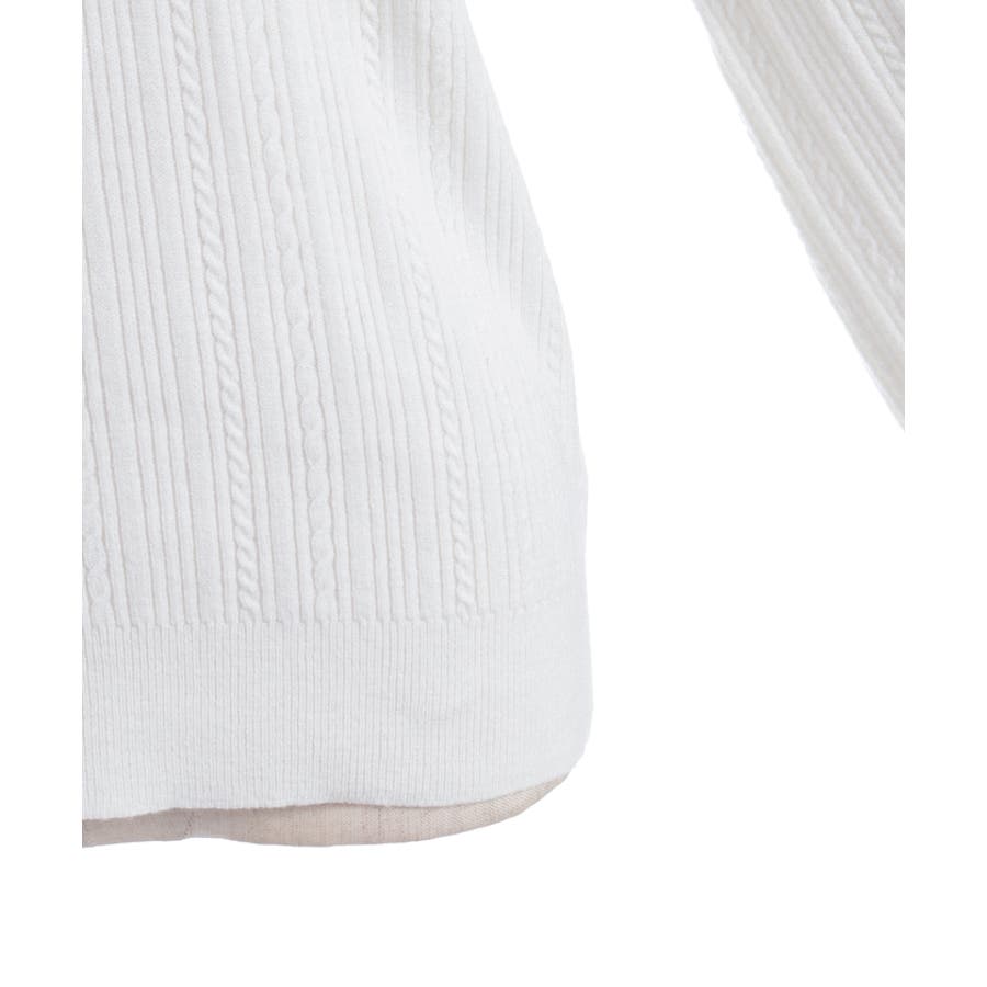 シンプルなリブの中にさりげなく入ったケーブルで、縦ライン細見えがうれしいポイント。