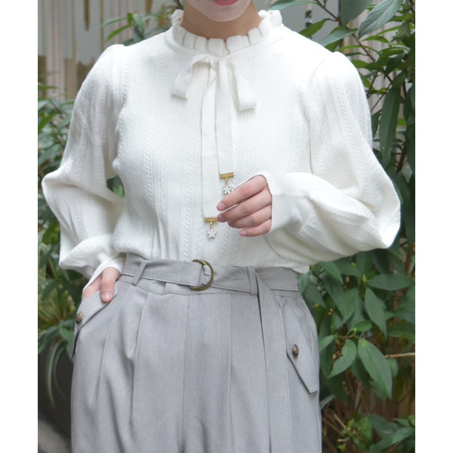 機能付チャームリボンニット