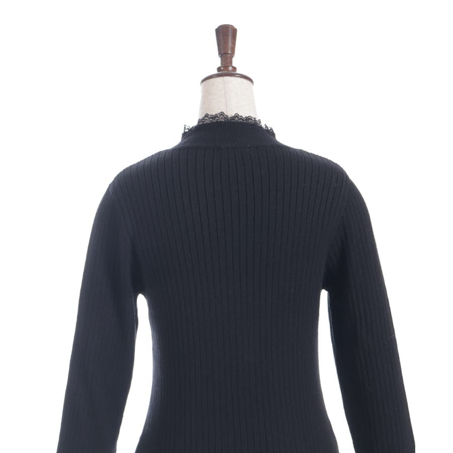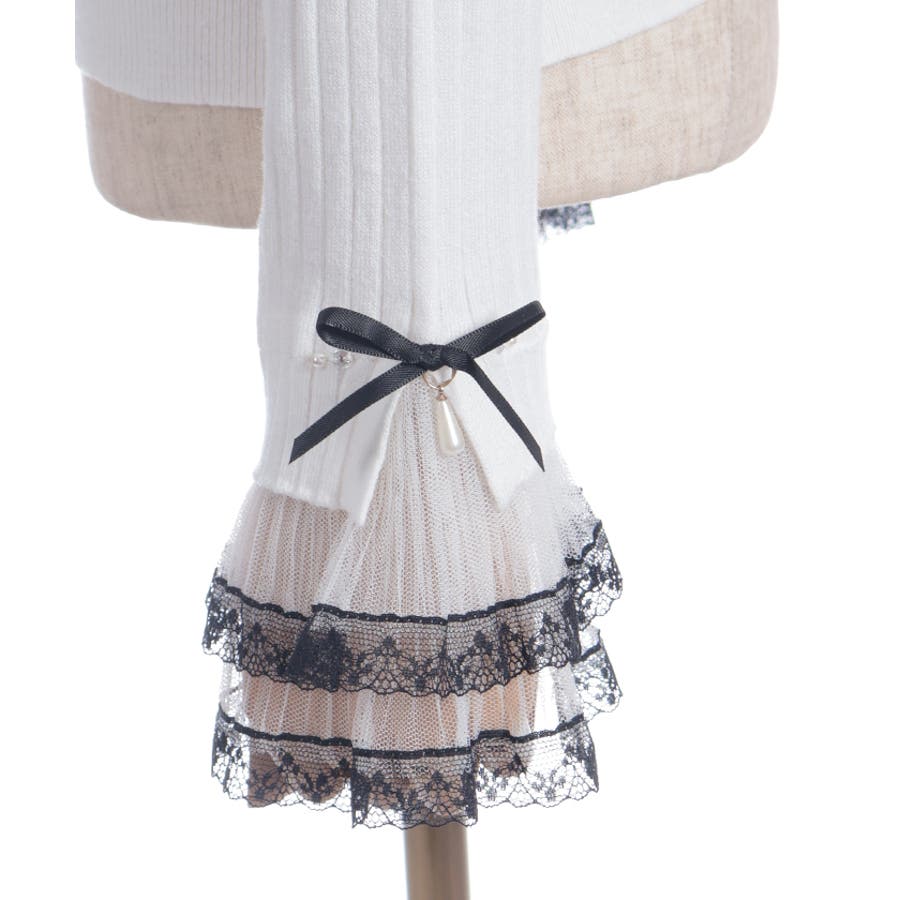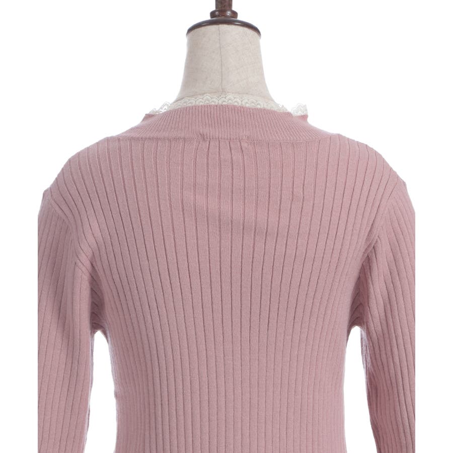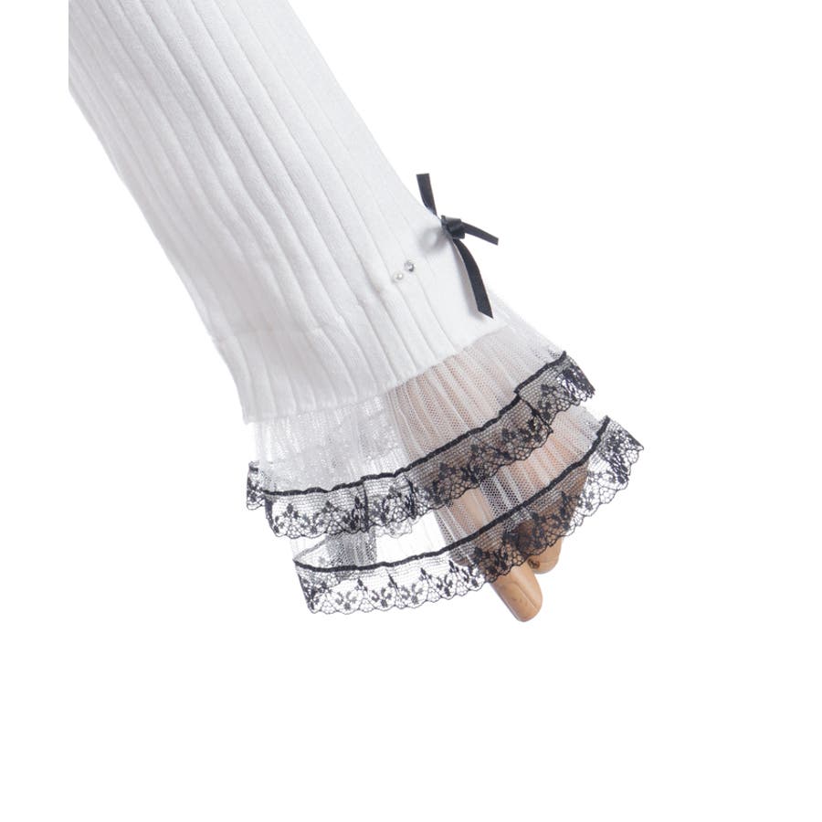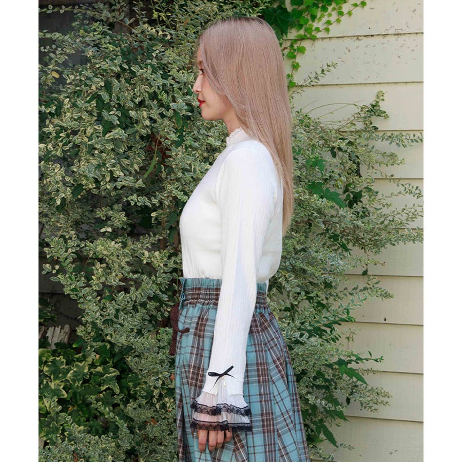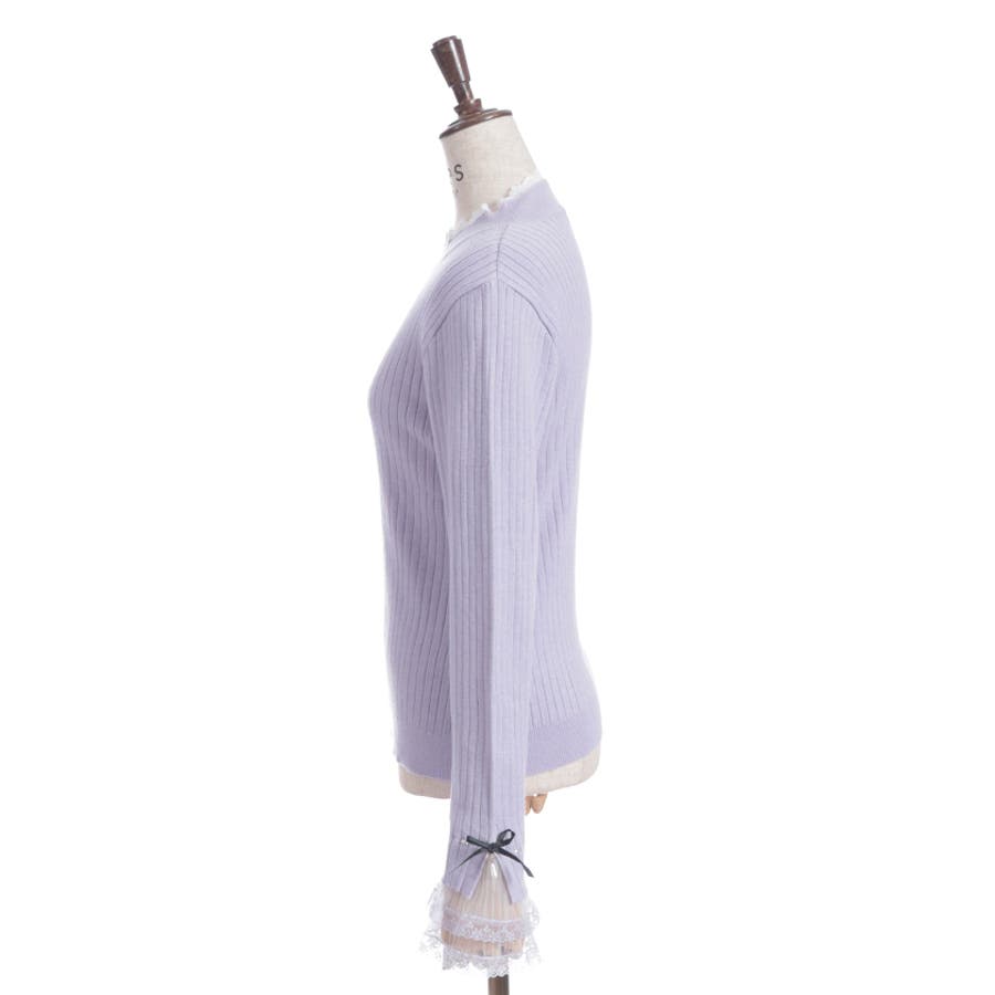 袖口のプリーツチュール×レース×リボンの装飾が華やかなデザインのニットです。