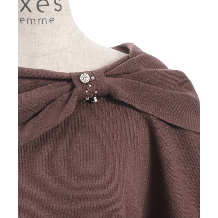 ドレープリボンフレア袖ニット