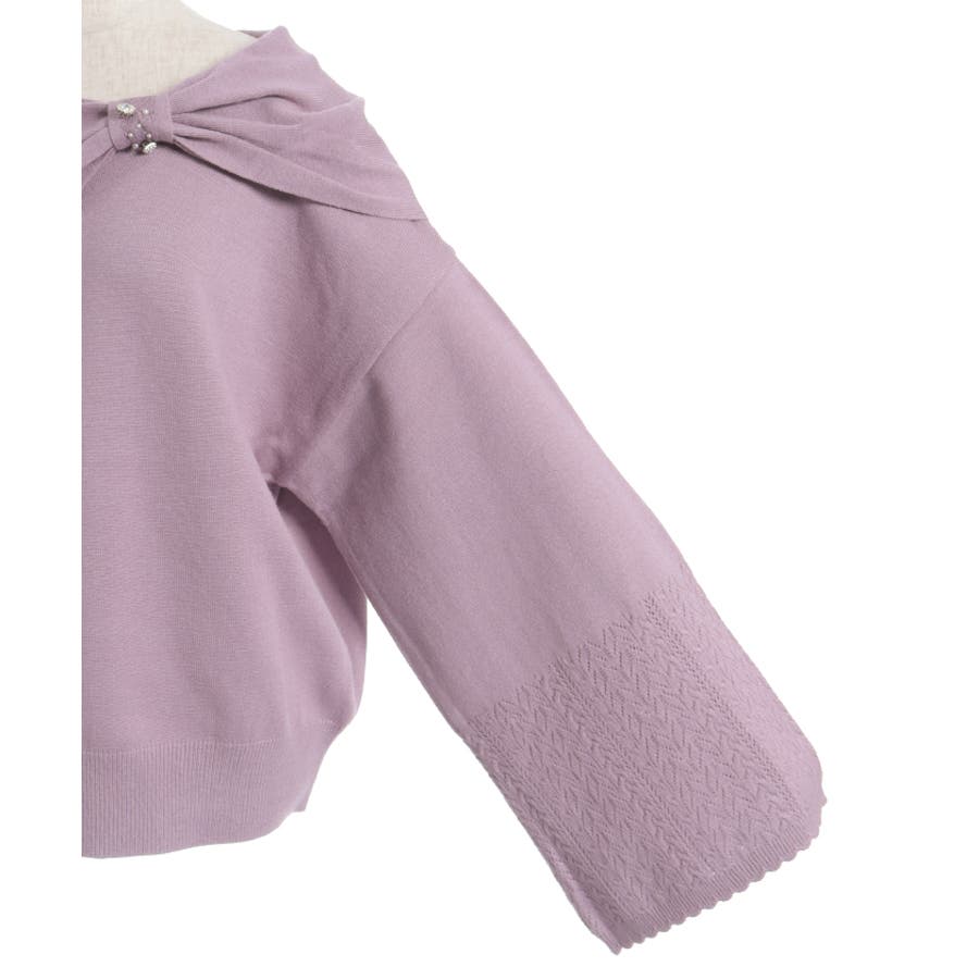 ケーブル柄をあしらったフレアスリーブがフェミカジな印象に。
