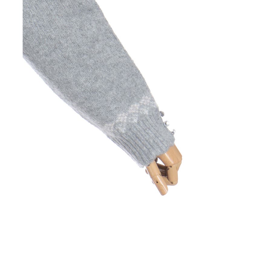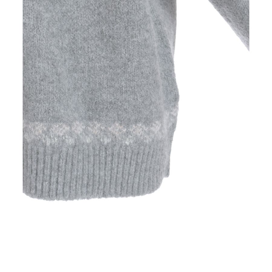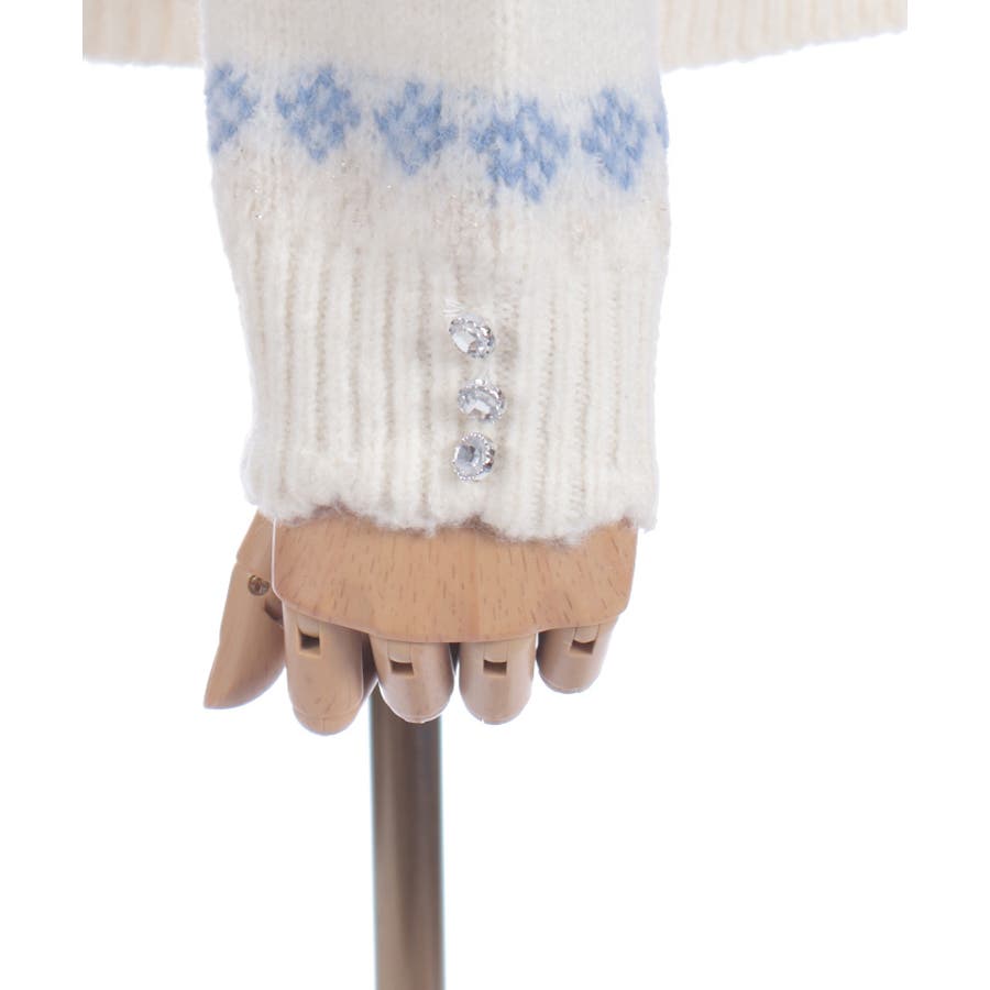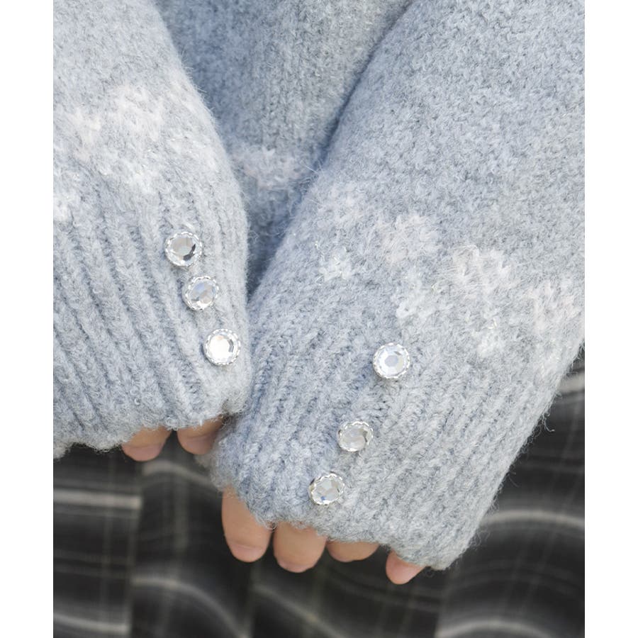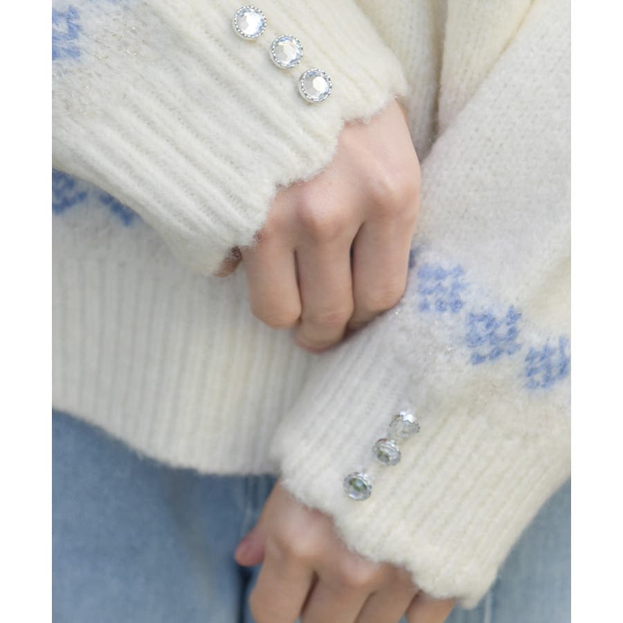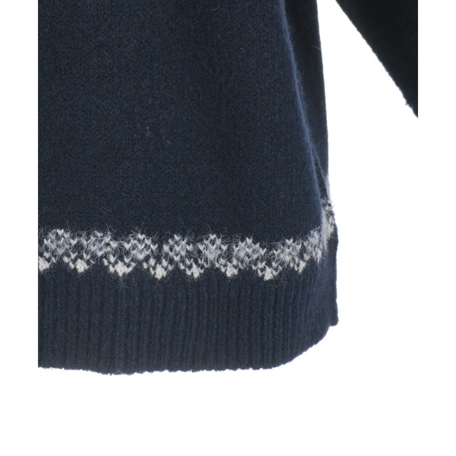 雪モチーフをあしらったフェアアイル柄が目を引き、冬らしい可愛さを楽しめるニット。