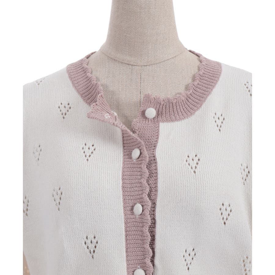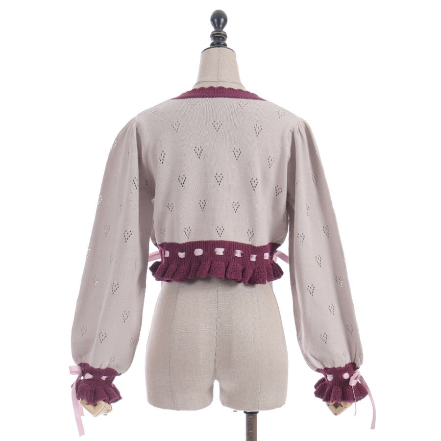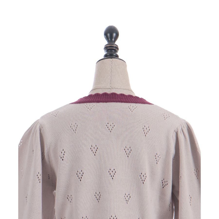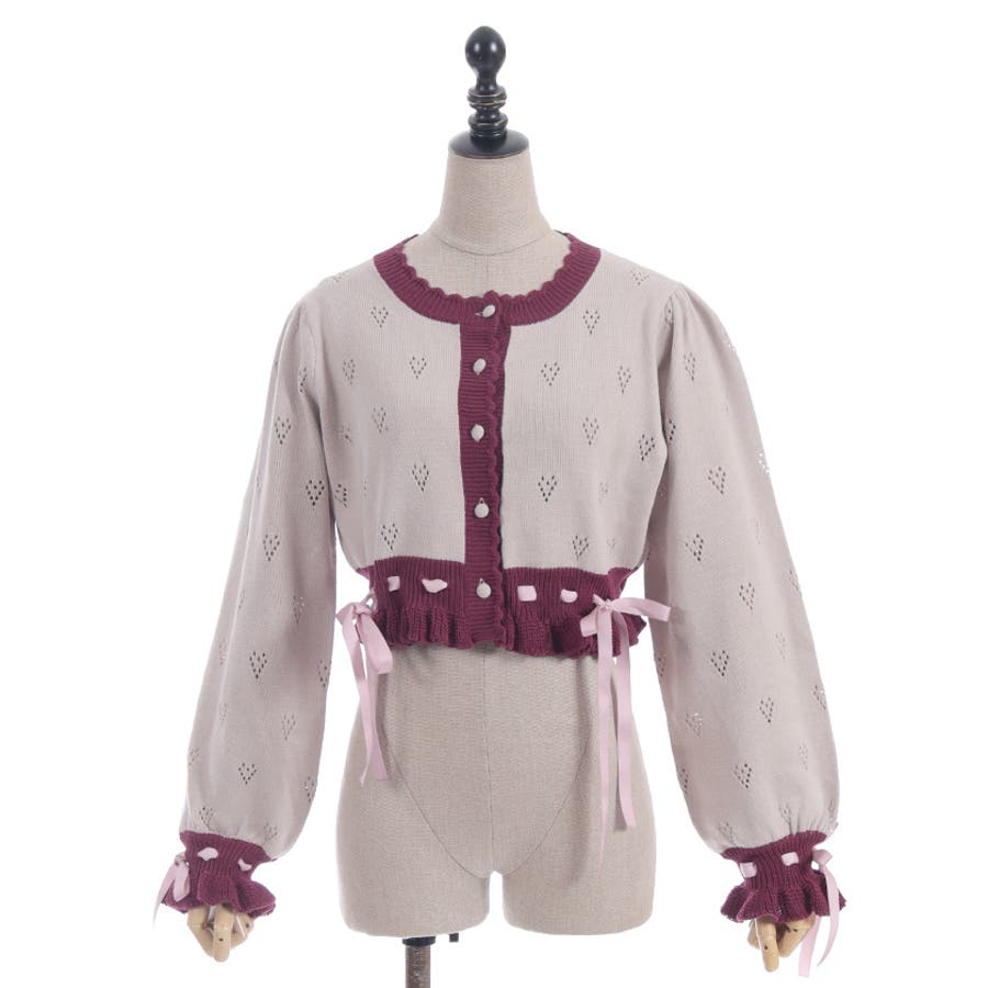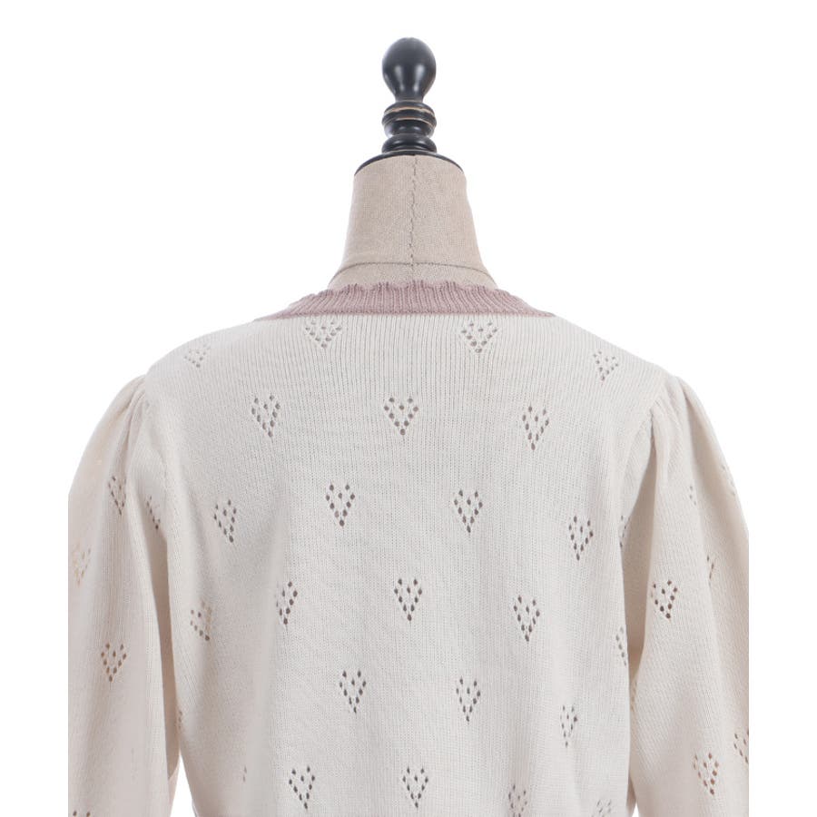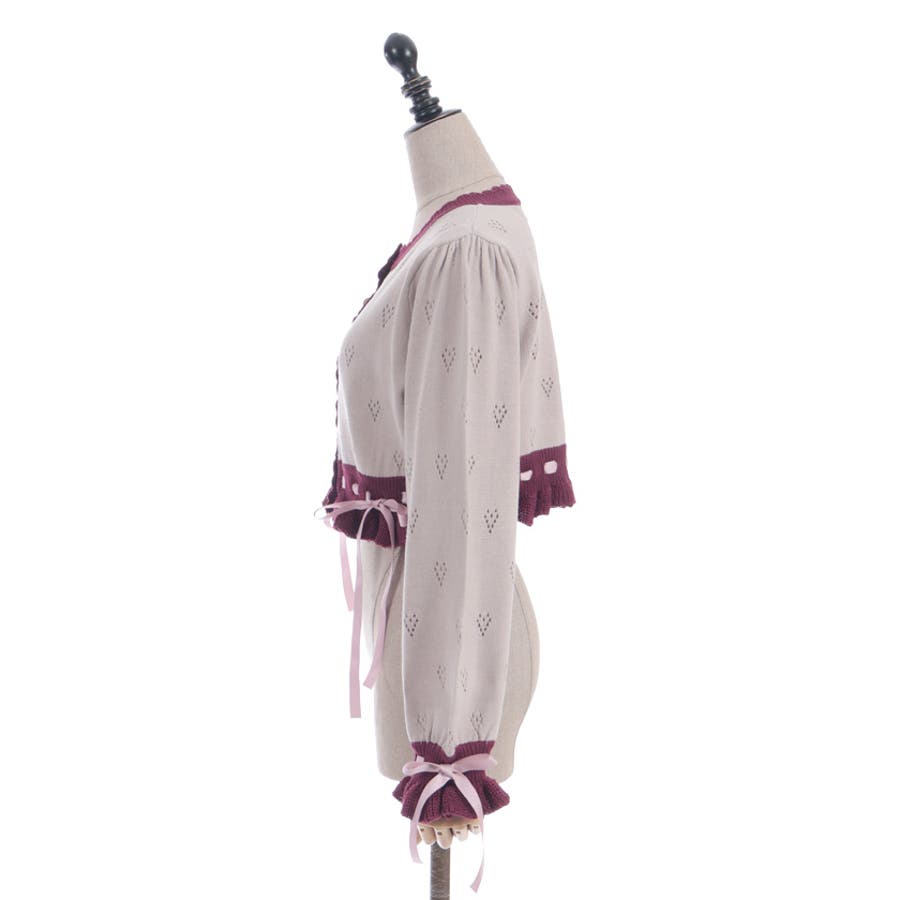 苺の種の様なハートの透かし模様を入れたニットカーディガンです。