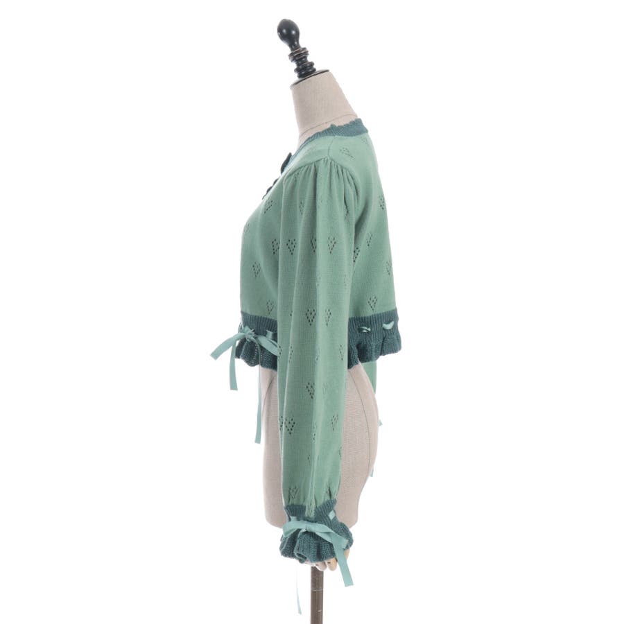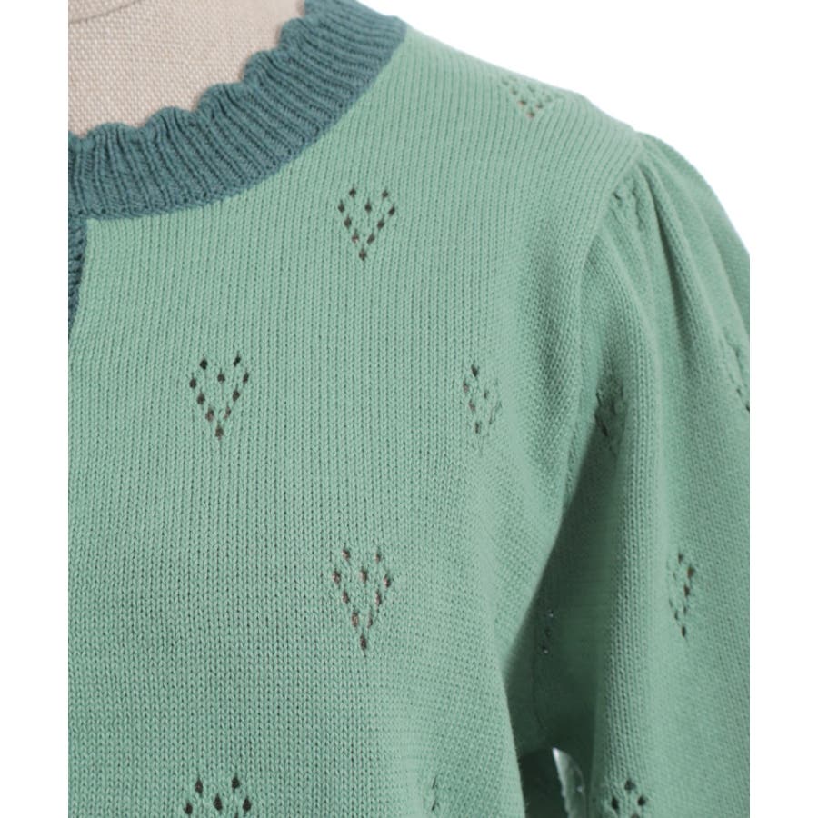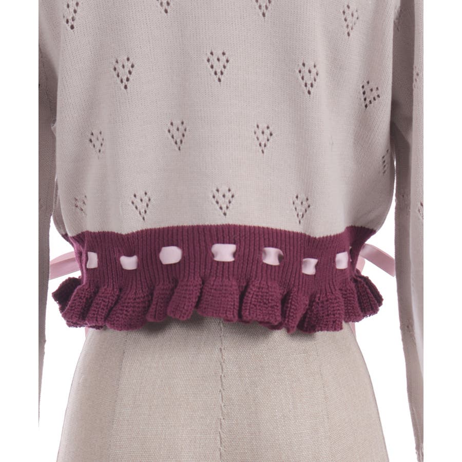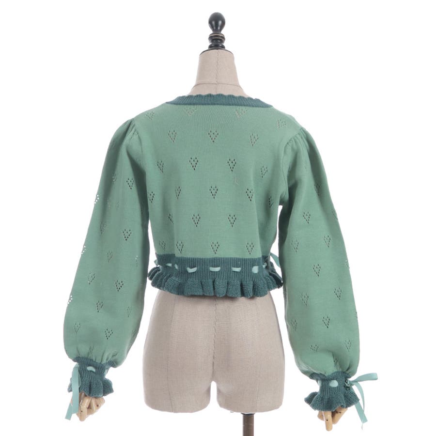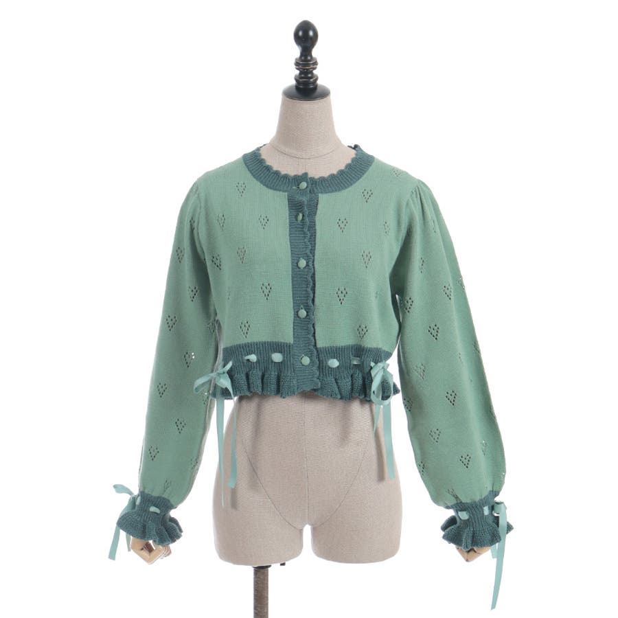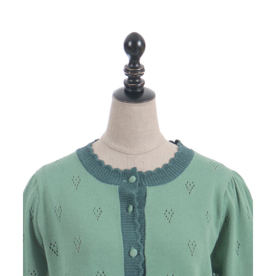 苺の種の様なハートの透かし模様を入れたニットカーディガンです。