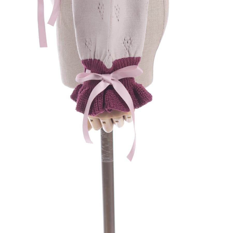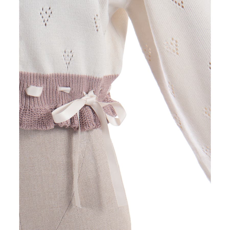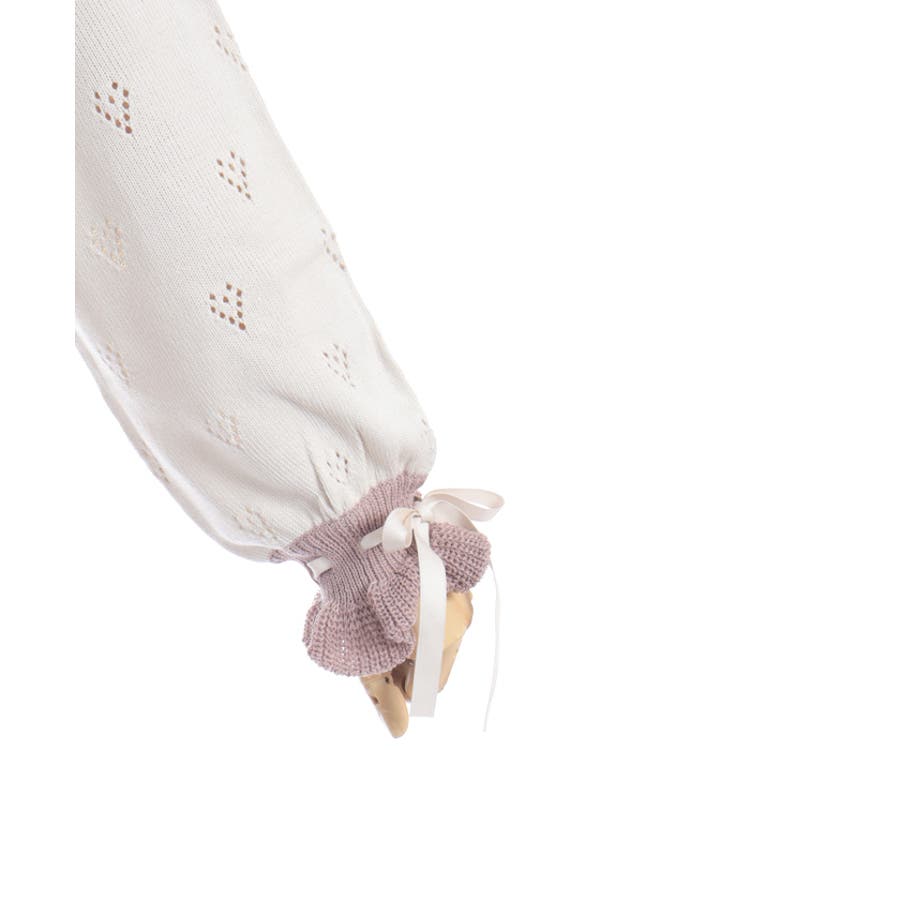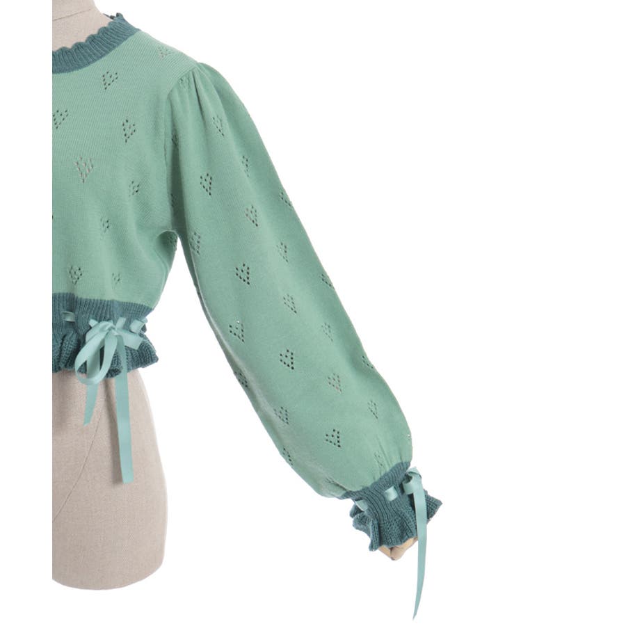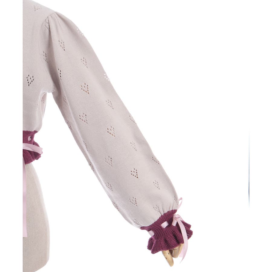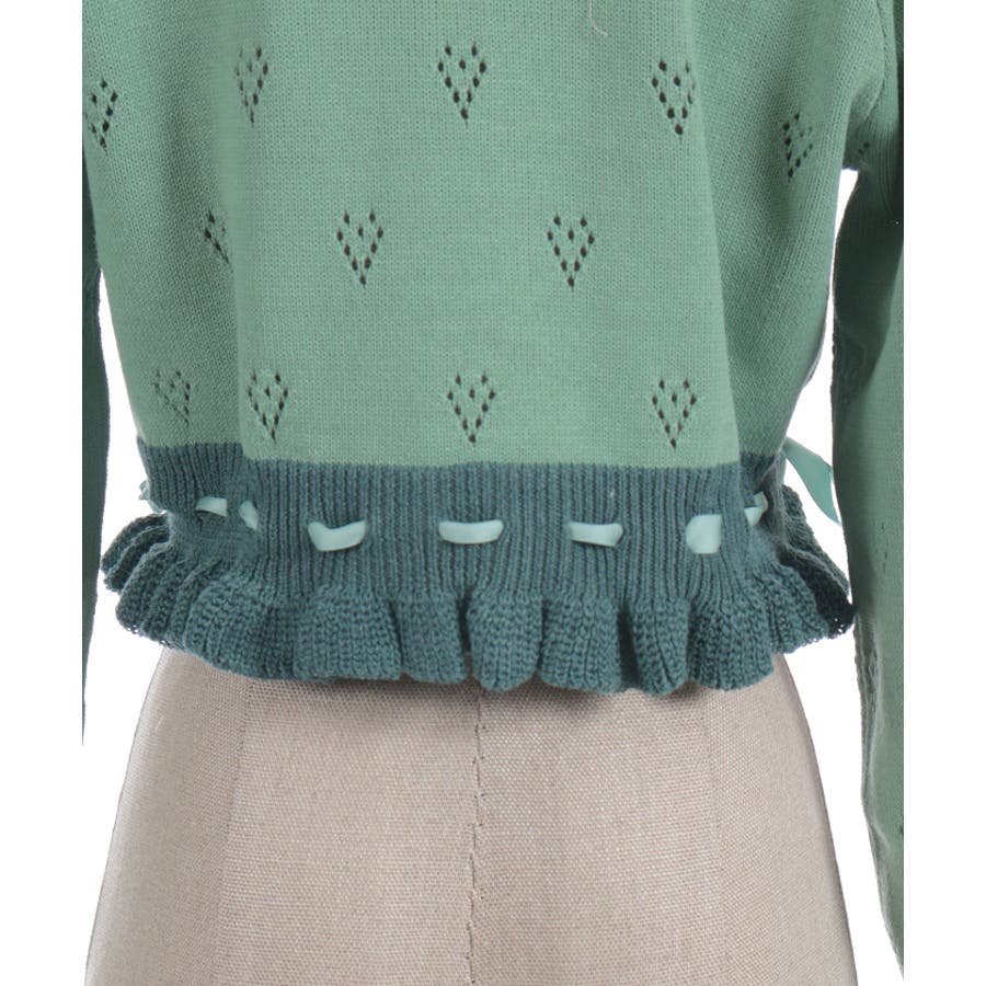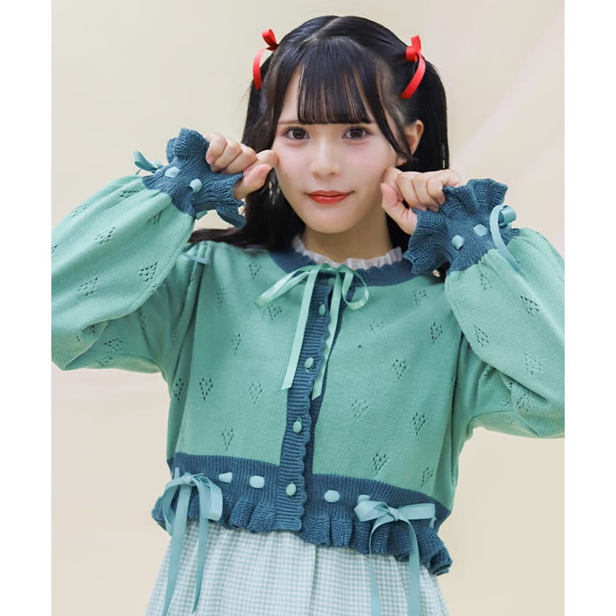 苺の種の様なハートの透かし模様を入れたニットカーディガンです。