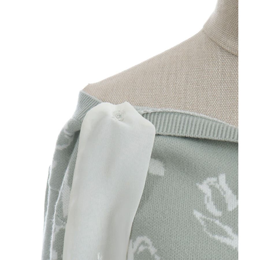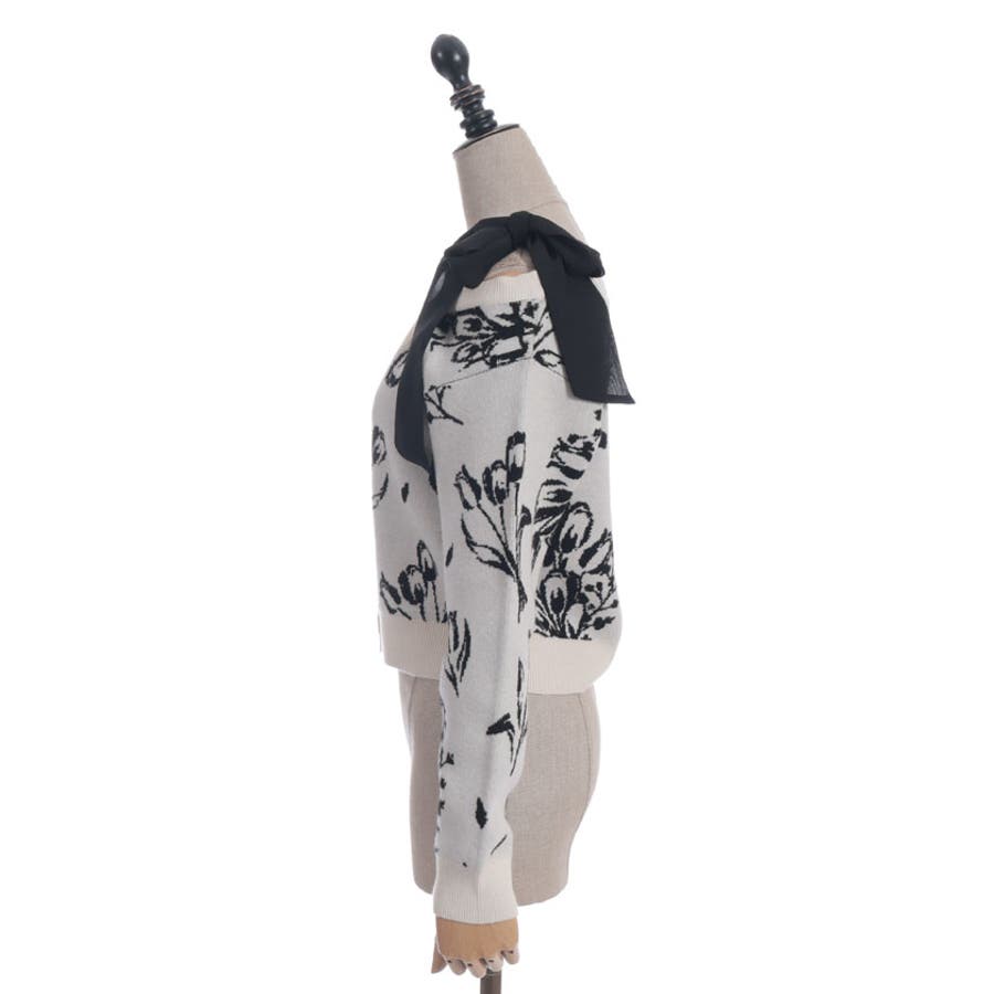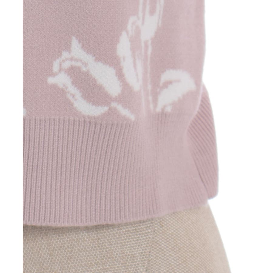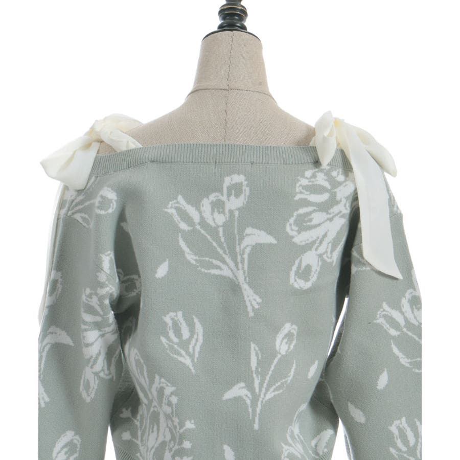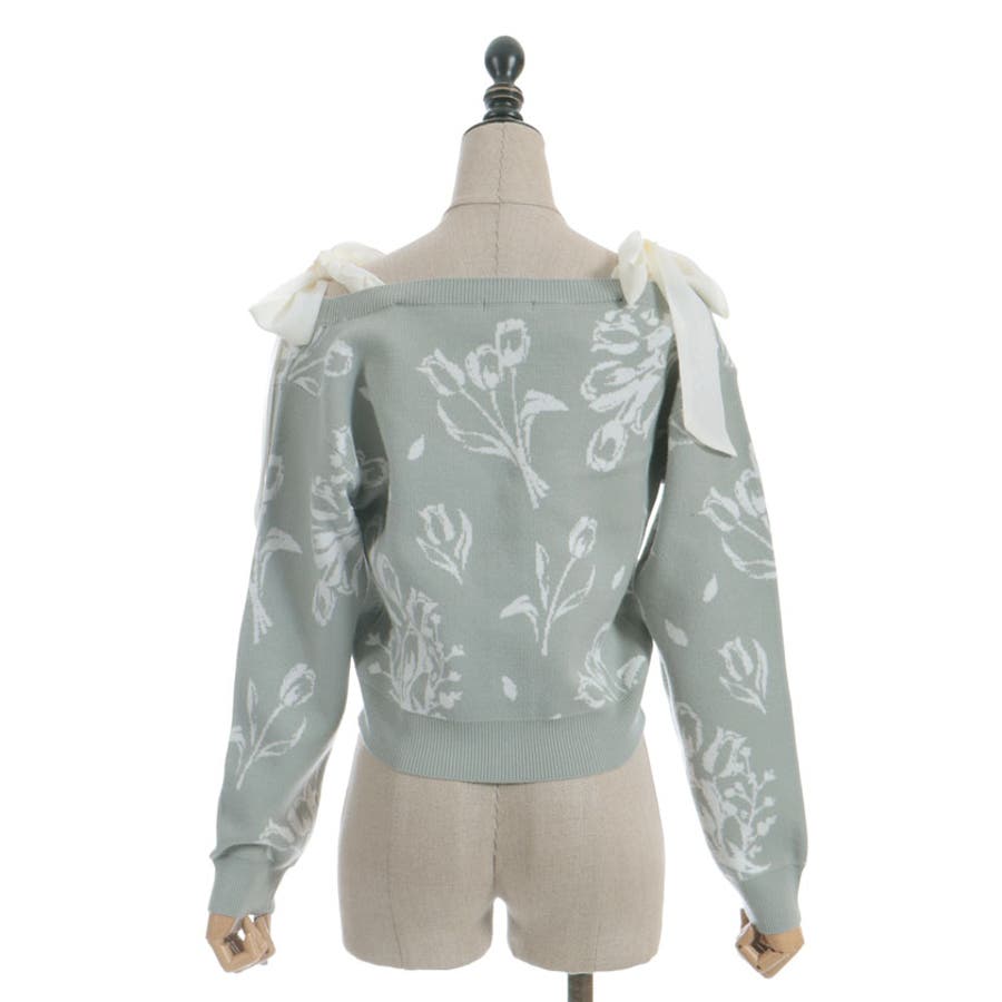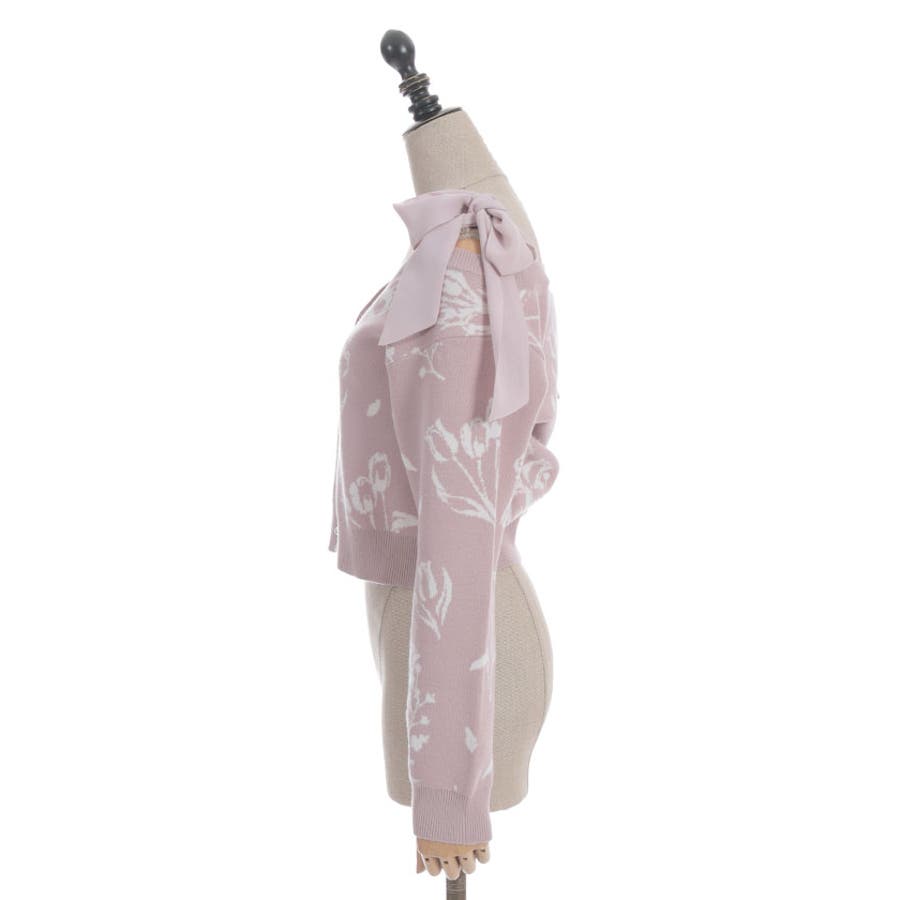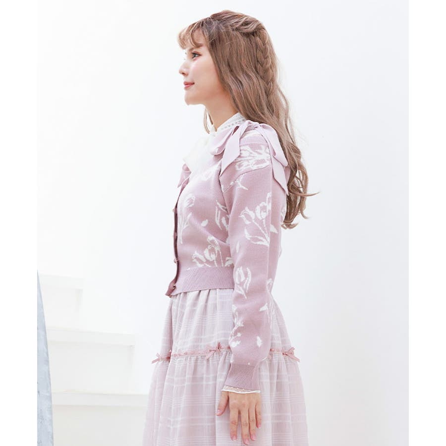 春らしいブーケ柄のジャカード織りが目を惹くニットカーディガンです。