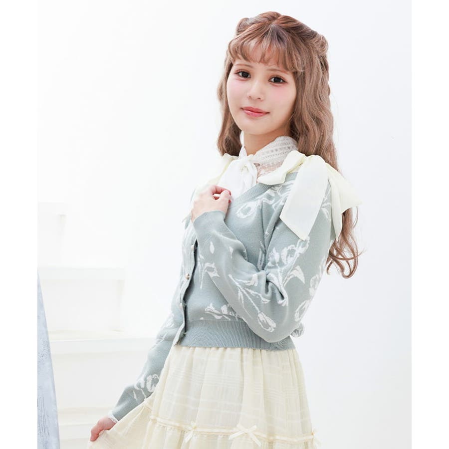 肩のリボンでオフショルで着用してもあざと可愛いアイテムです。