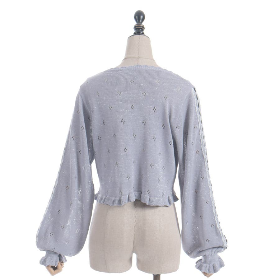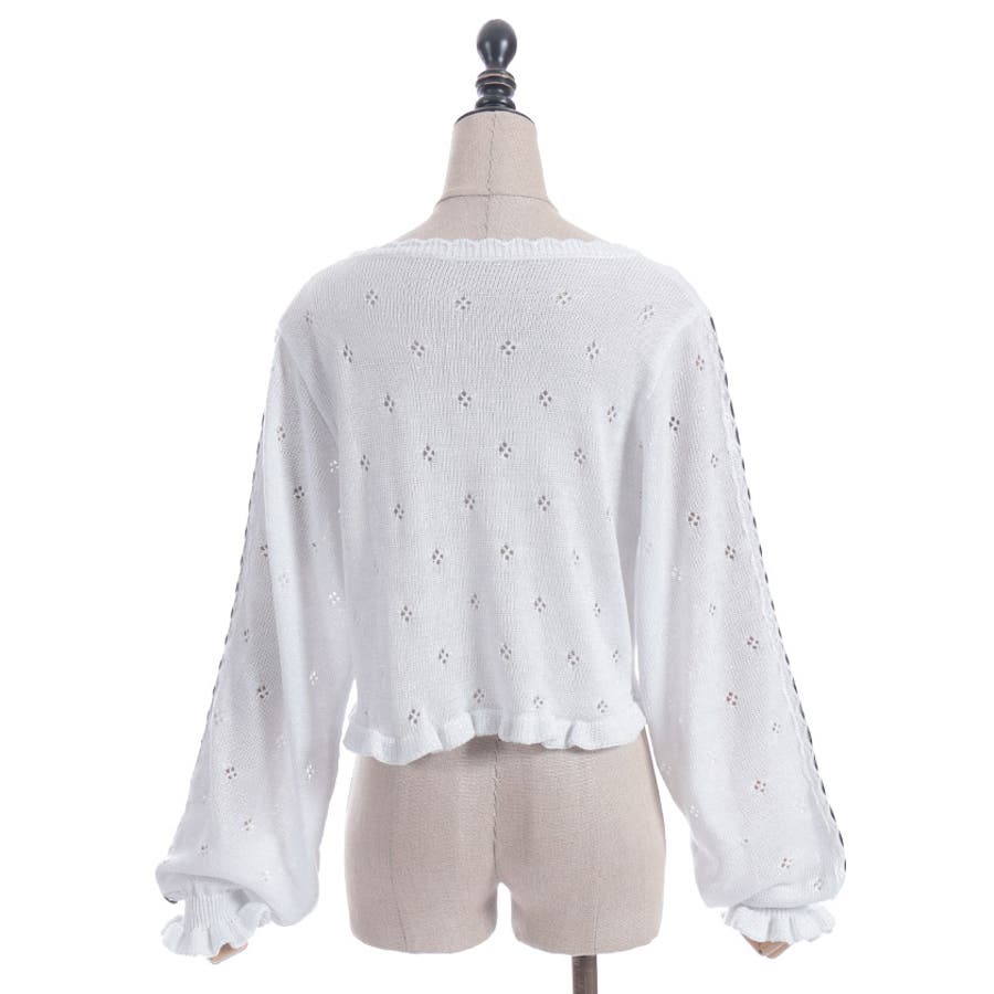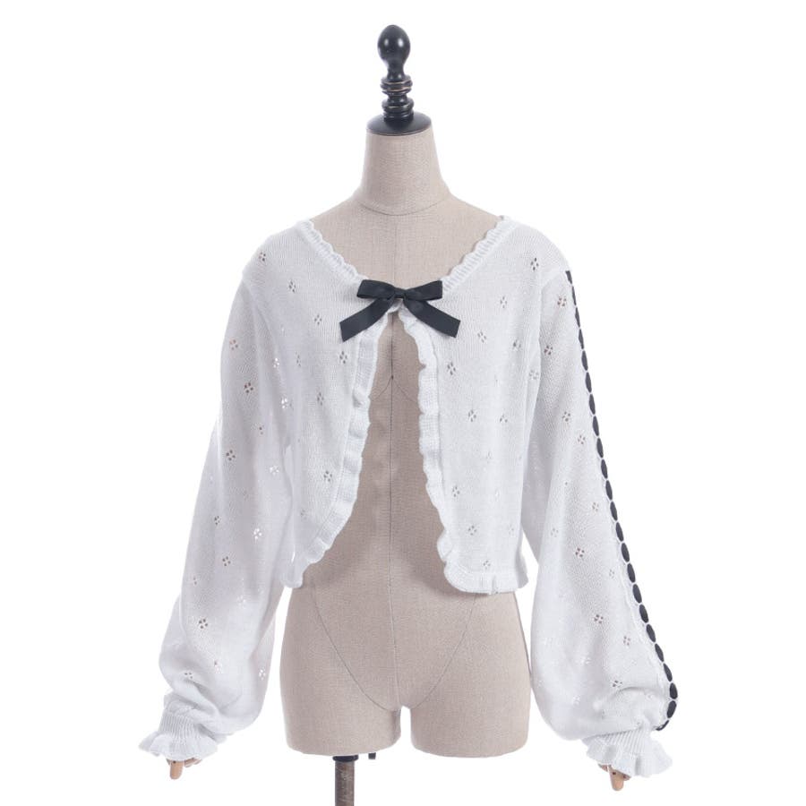 袖にあしらったハシゴレース×リボンがポイントになっています。