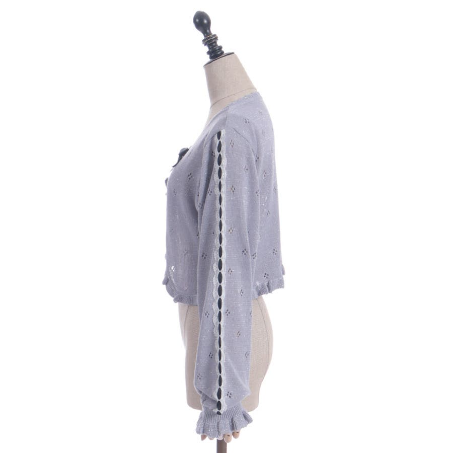 爽やかなシルバーラメで春らしい印象に仕上げたニットカーディガンです。