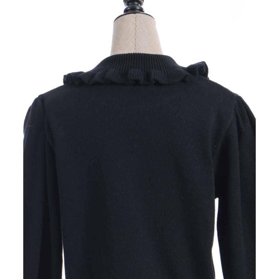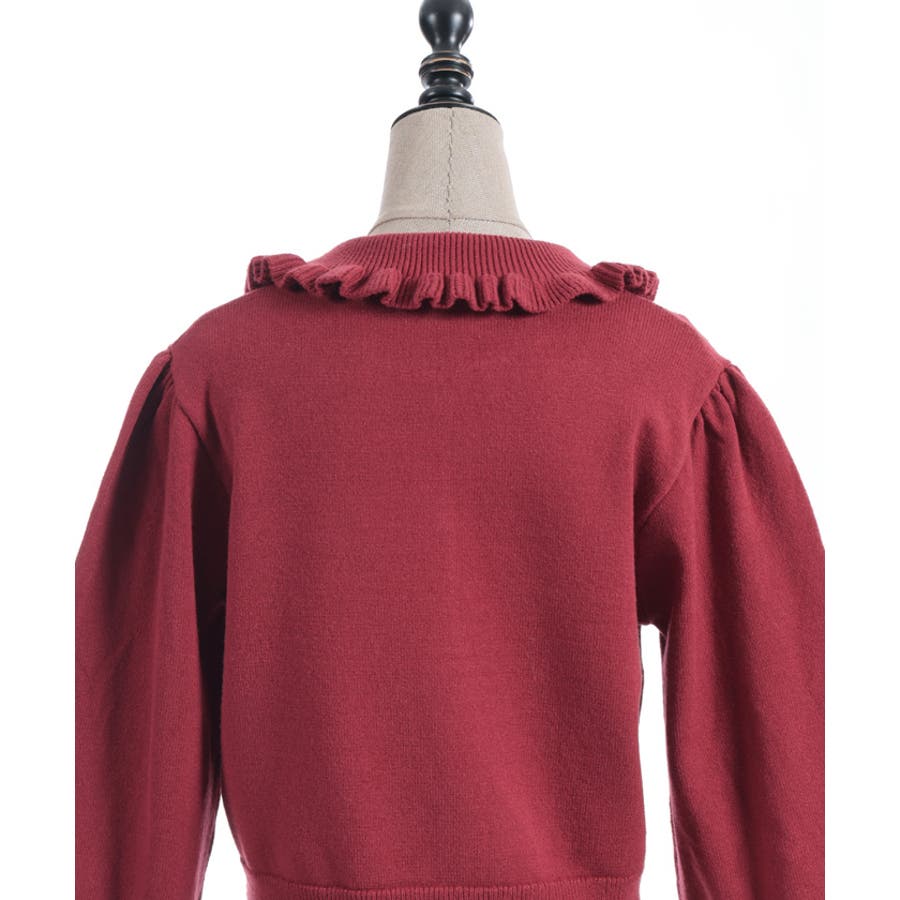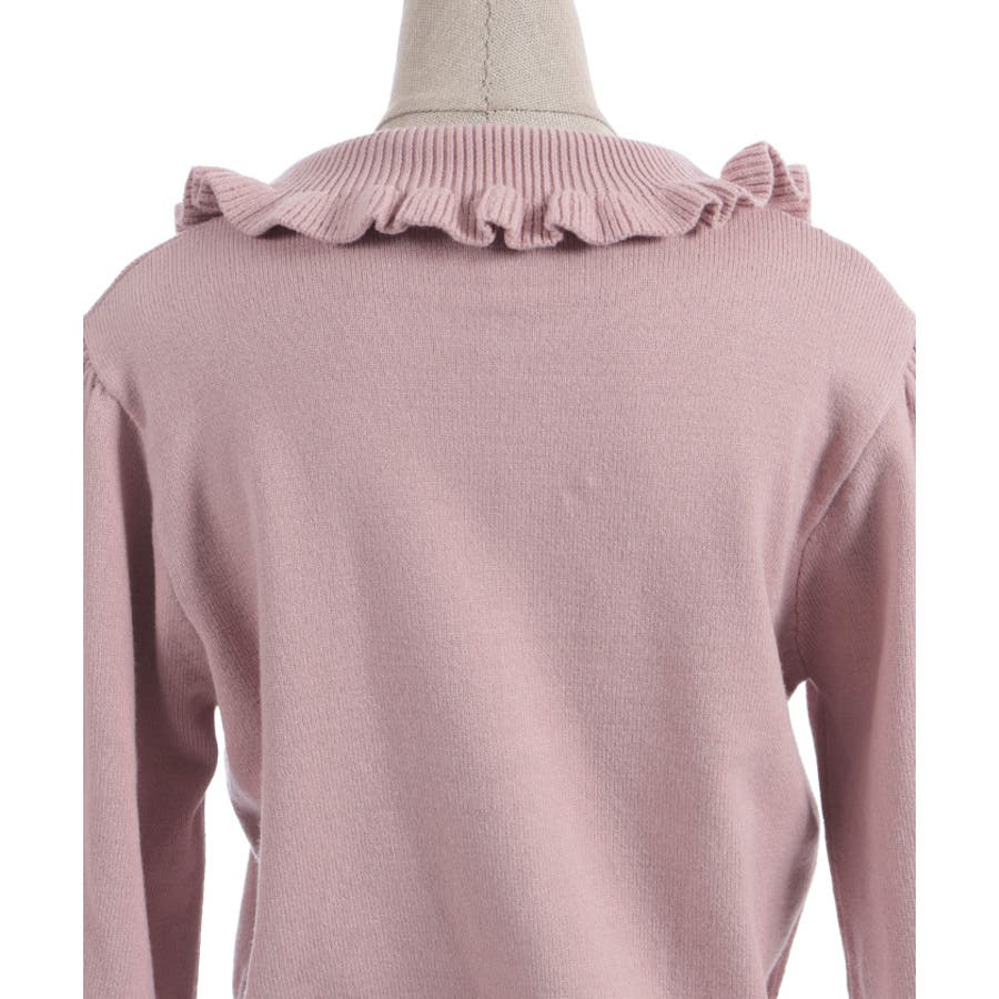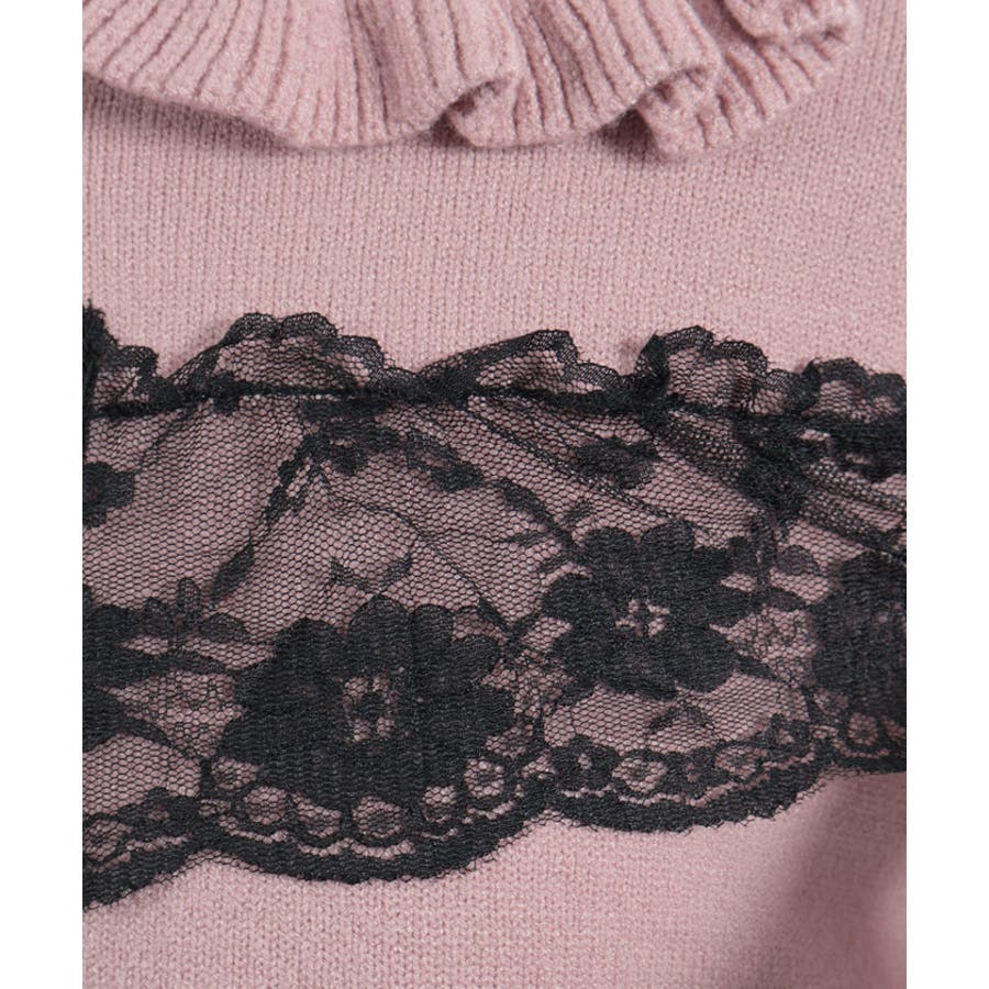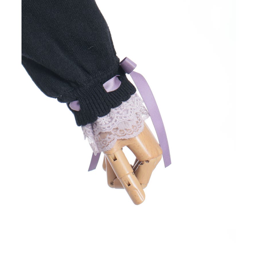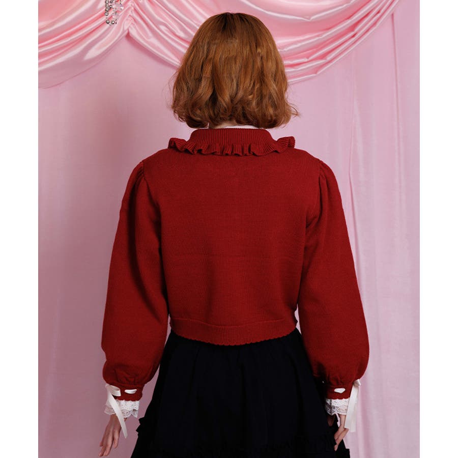 配色がガーリーなレース&梯子リボンをあしらったニットカーディガンです。