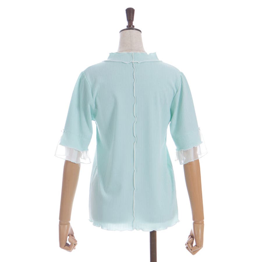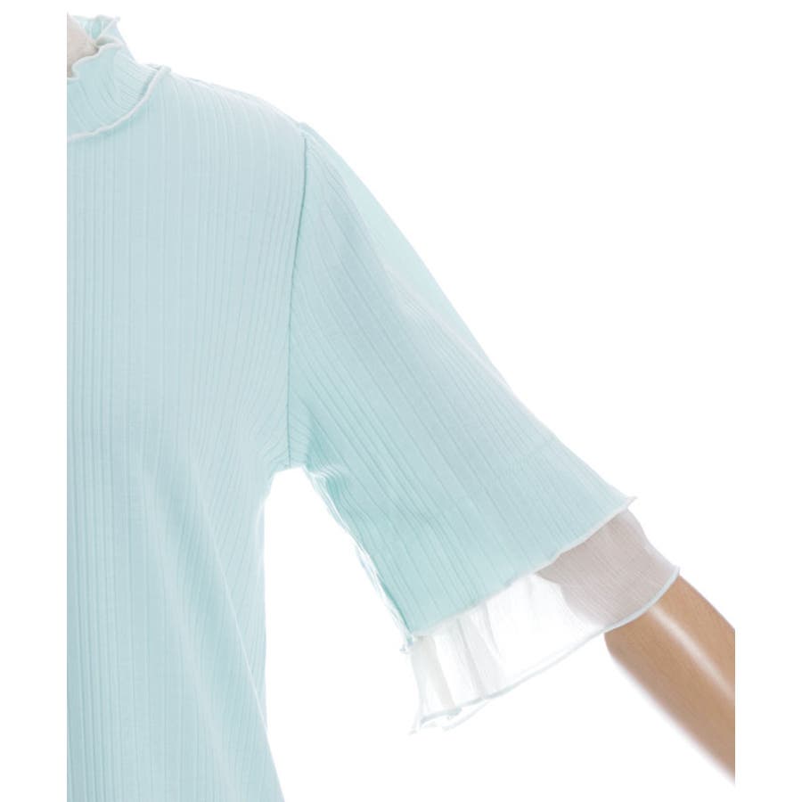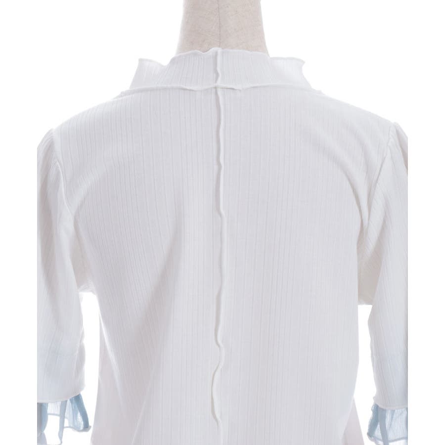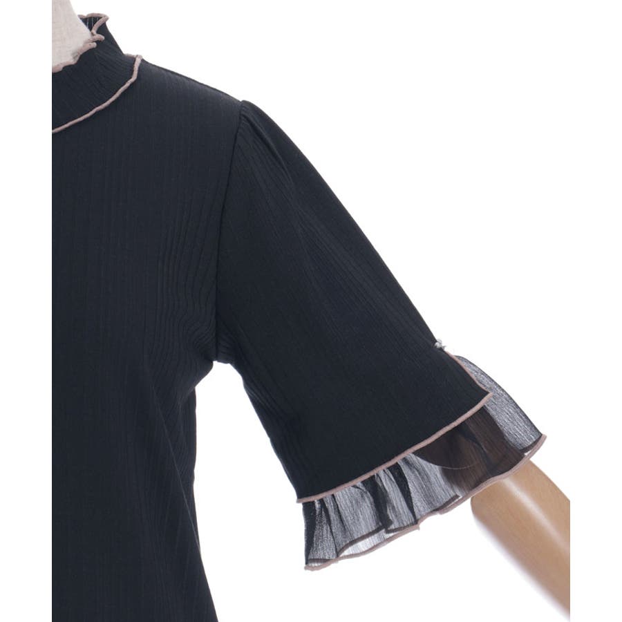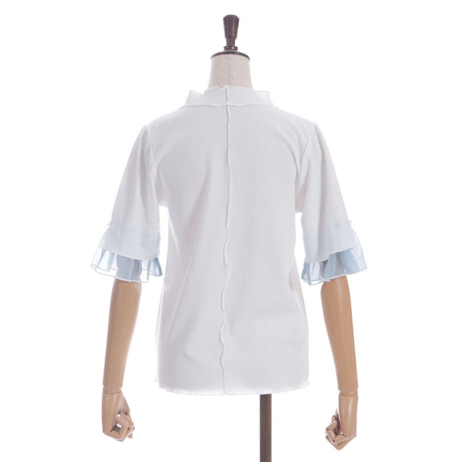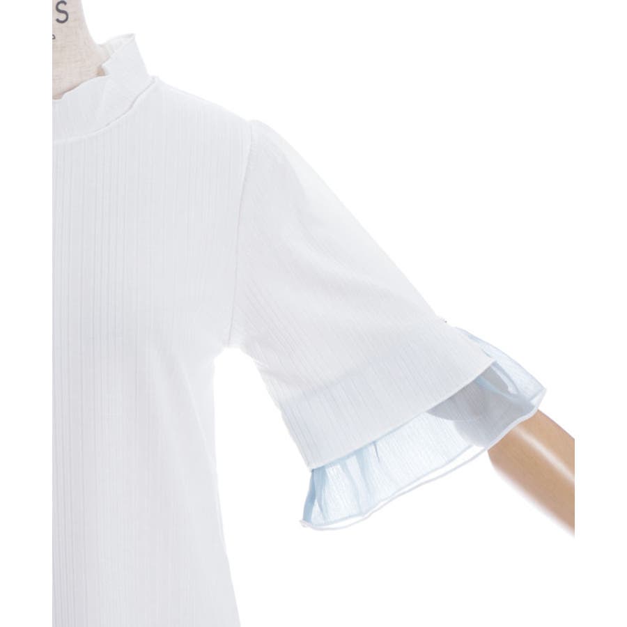 ふわっと広がる楊柳シフォンの異素材切替の袖口デザインがポイントのカットプルオーバーです。