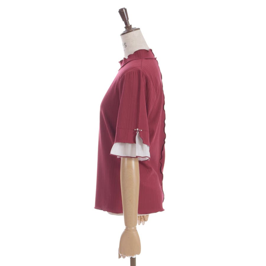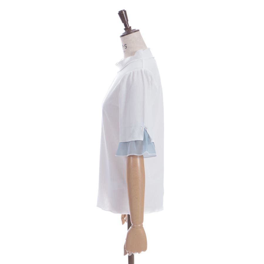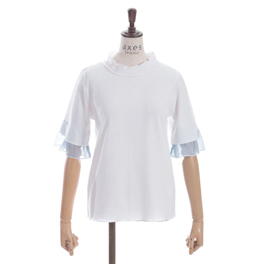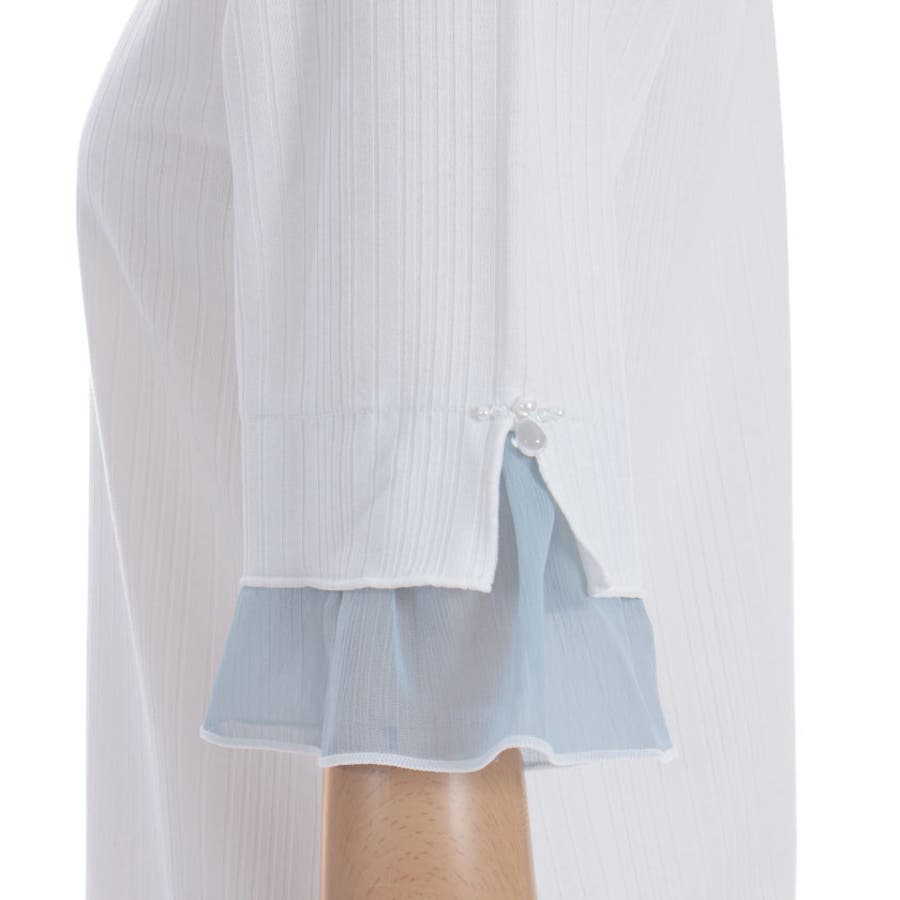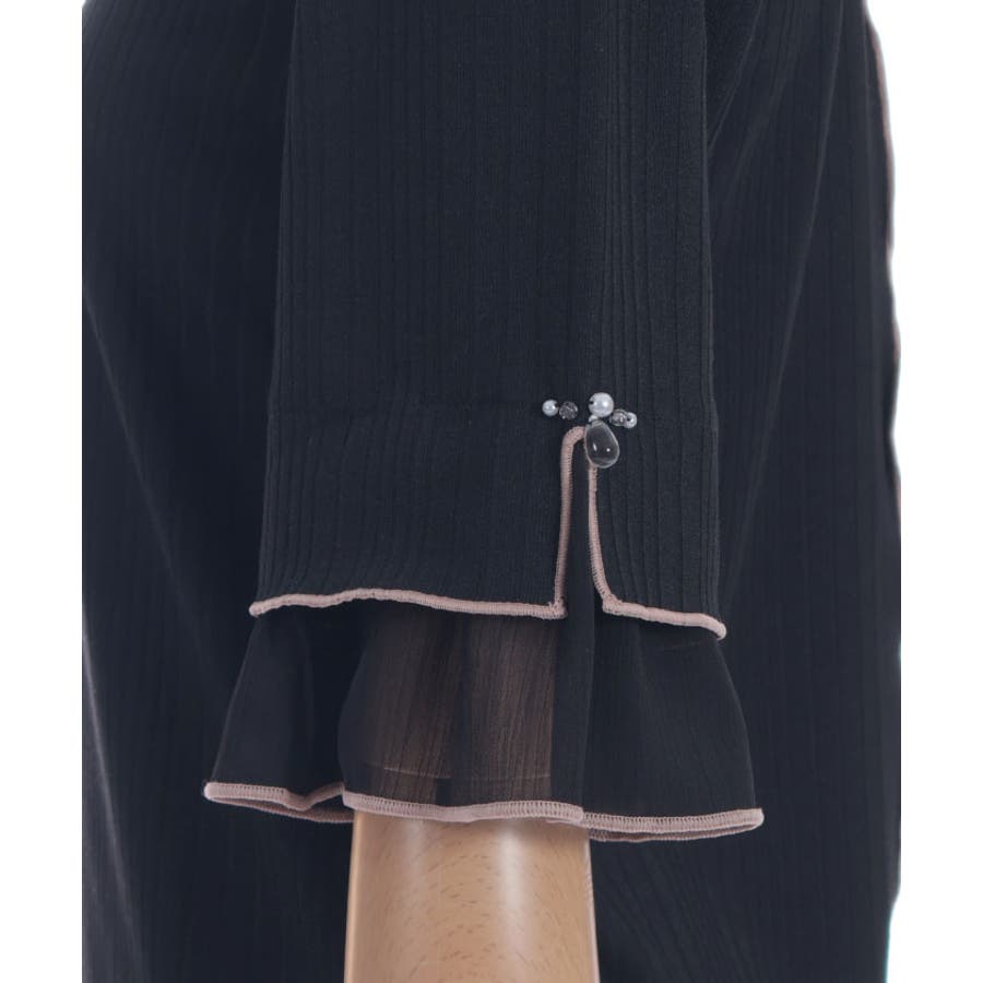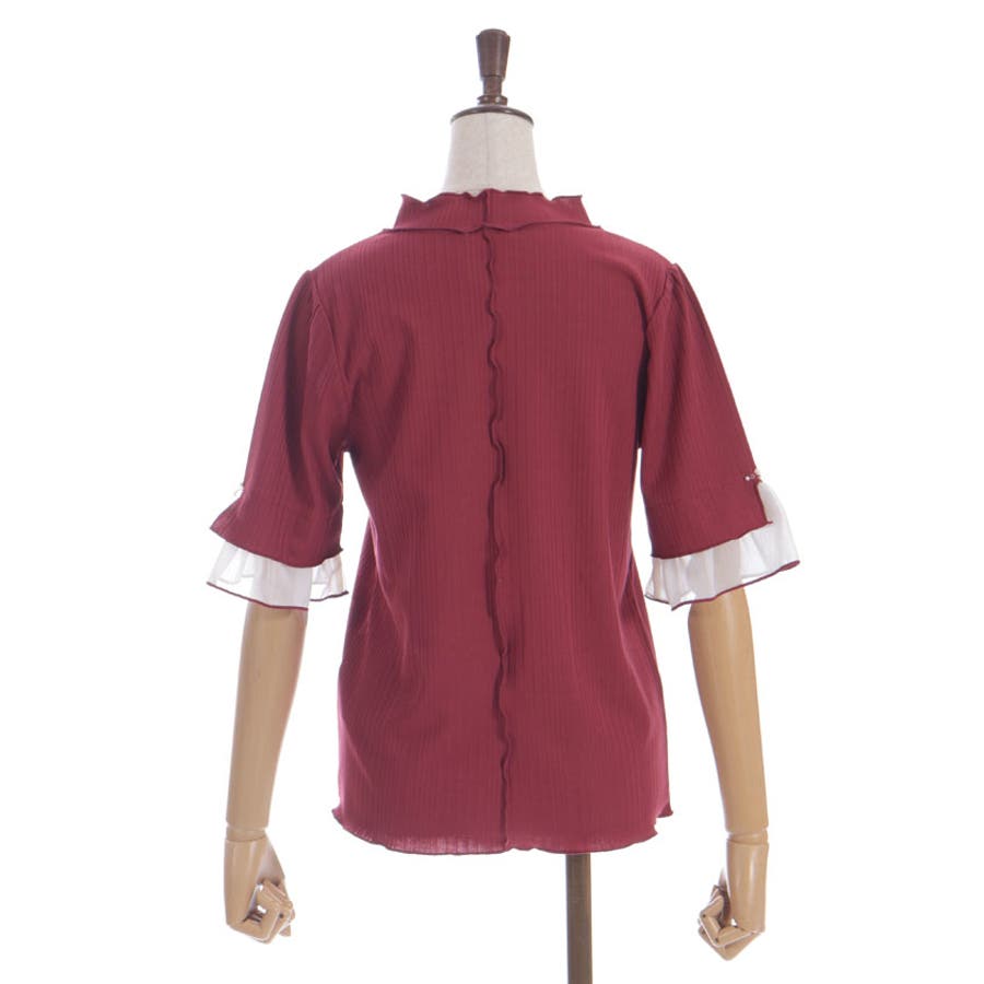 ふわっと広がる楊柳シフォンの異素材切替の袖口デザインがポイントのカットプルオーバーです。