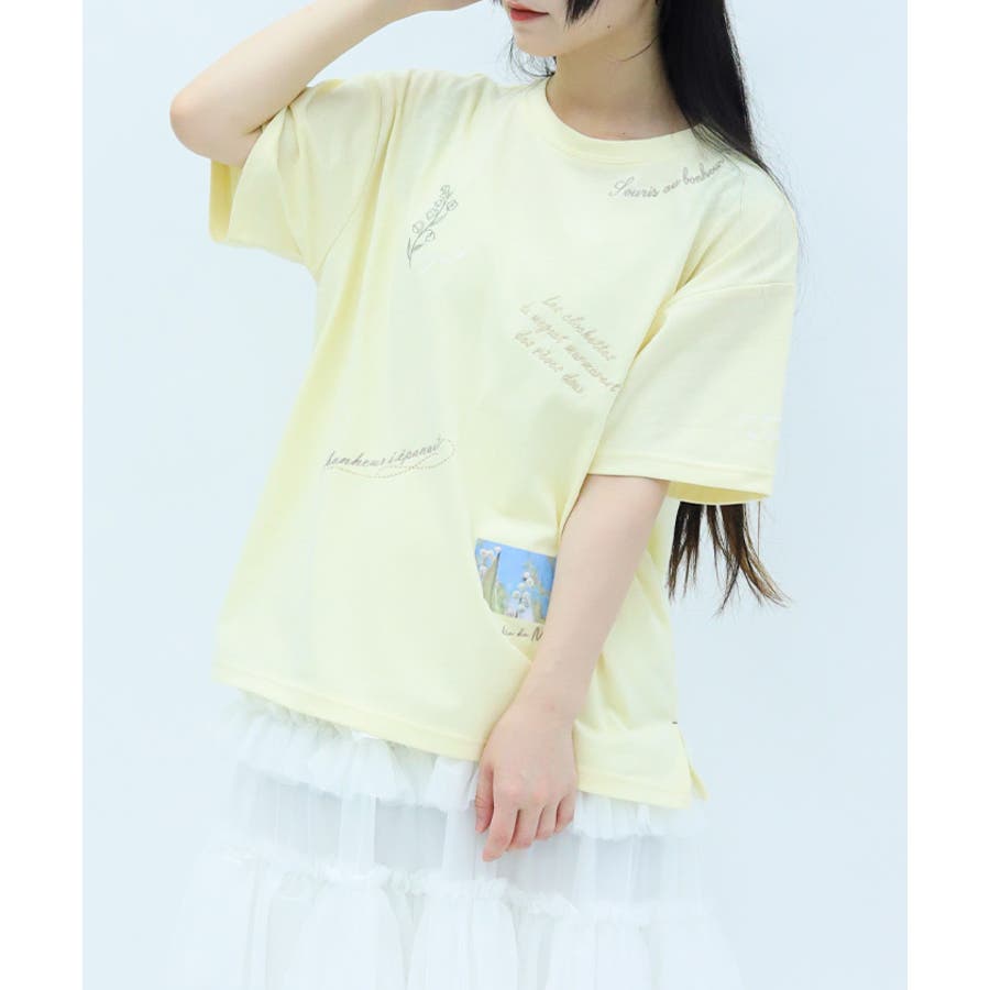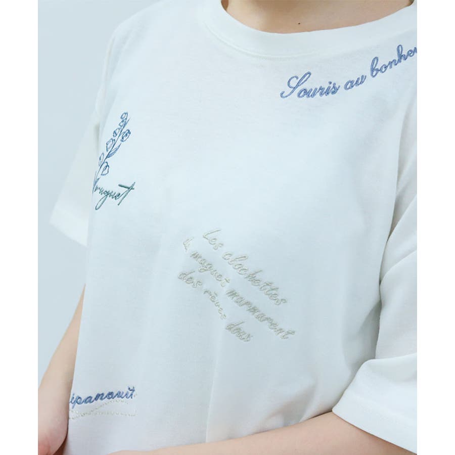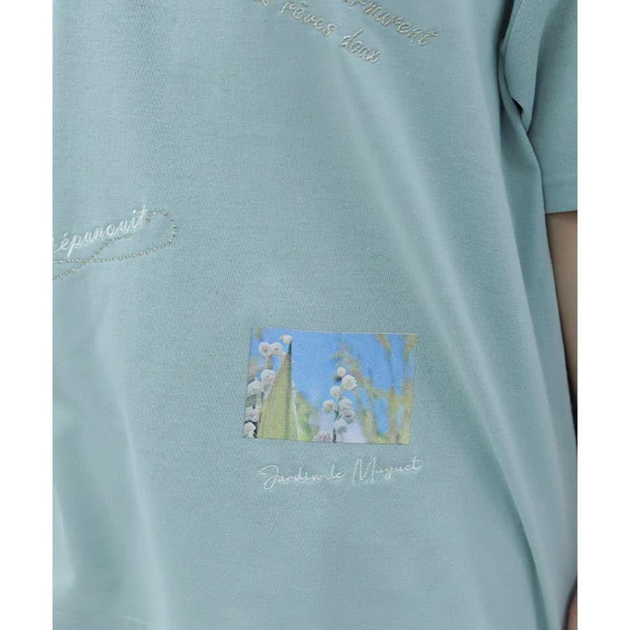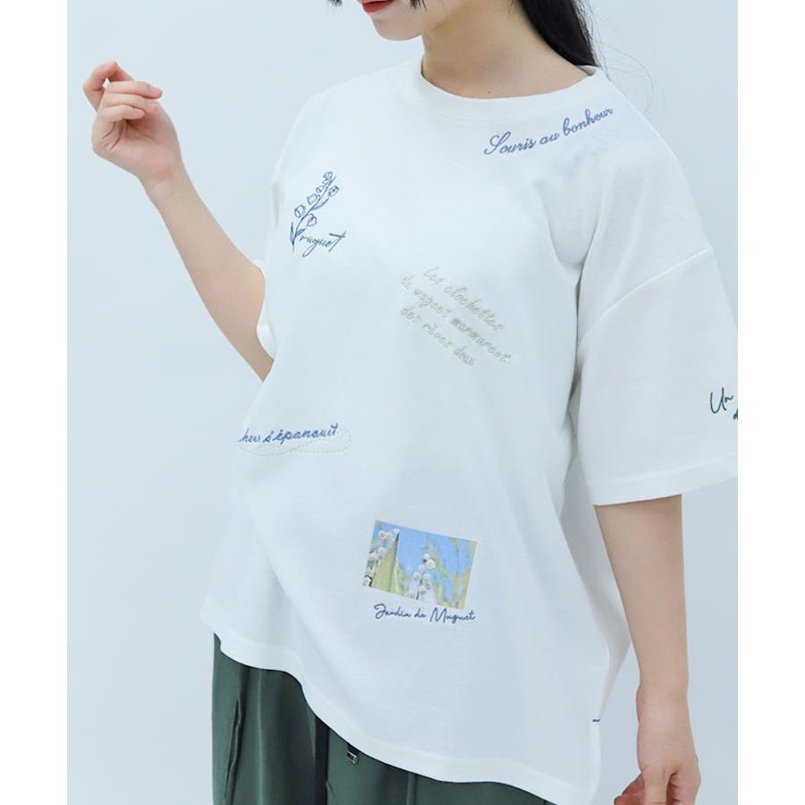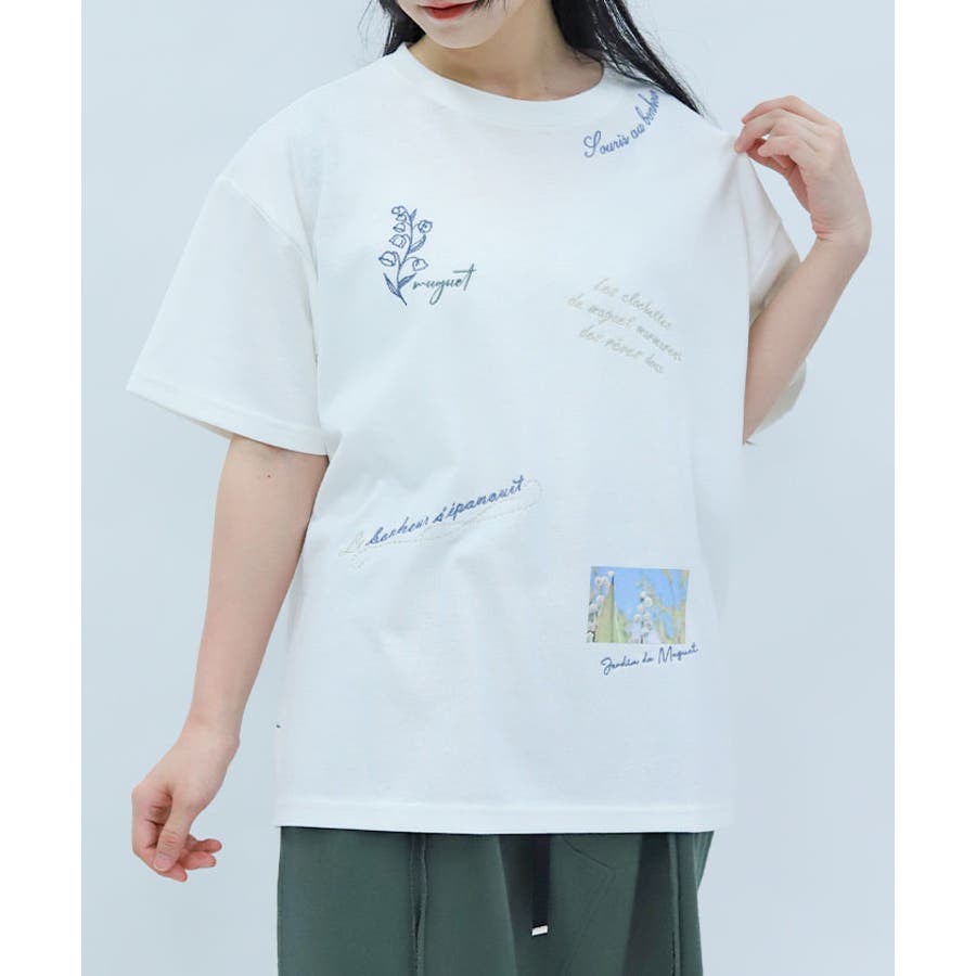 スズランモチーフをベースにした、ランダム刺繍のTシャツです。