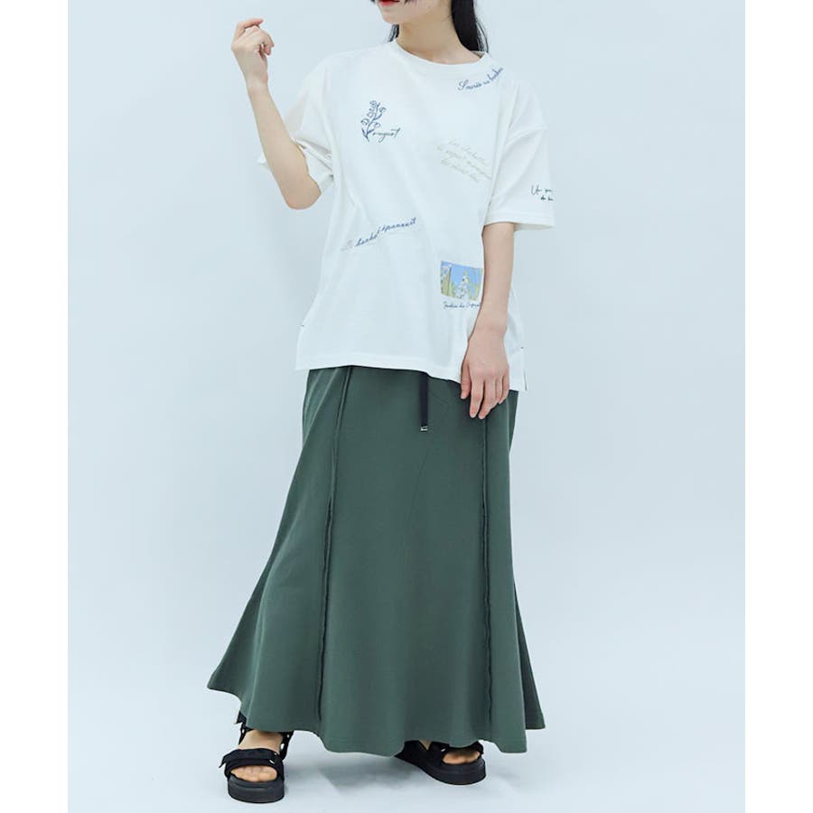 華やかなカラー展開で刺繍も目立つアイテムなので、シンプルなボトムスにも◎。