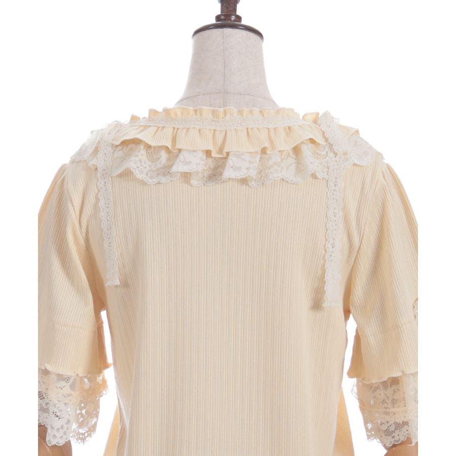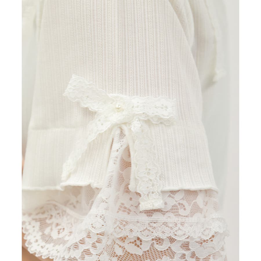 襟ぐりや袖口には、フリル×レースで華やかにボリュームをプラス。