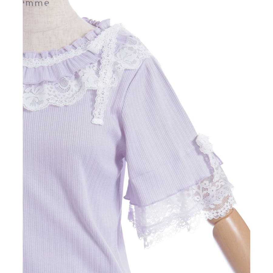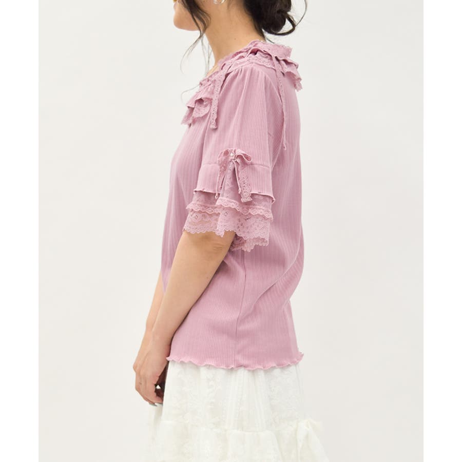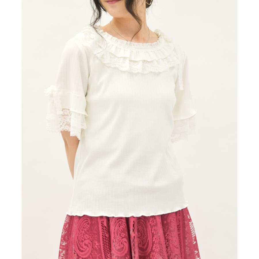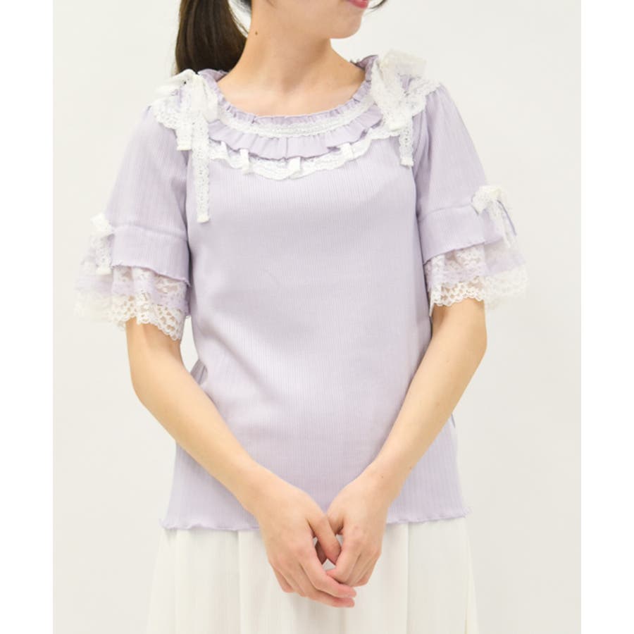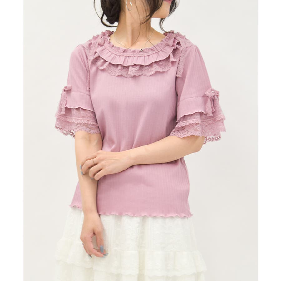 フリル×レースリボンプルオーバー