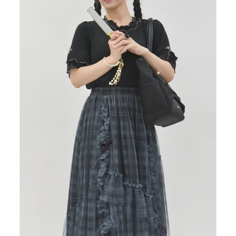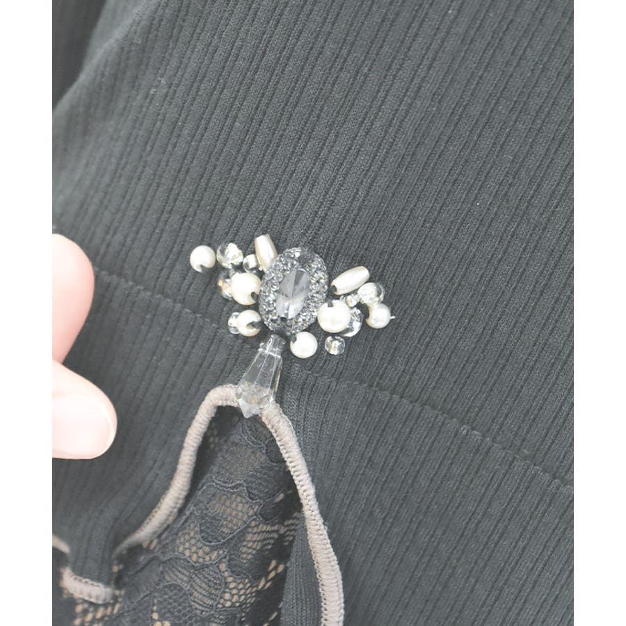 気になる二の腕をカバーしてくれる五分袖で、袖口から覗く繊細なナイロンレースもストレッチが効くため着やすさ◎。