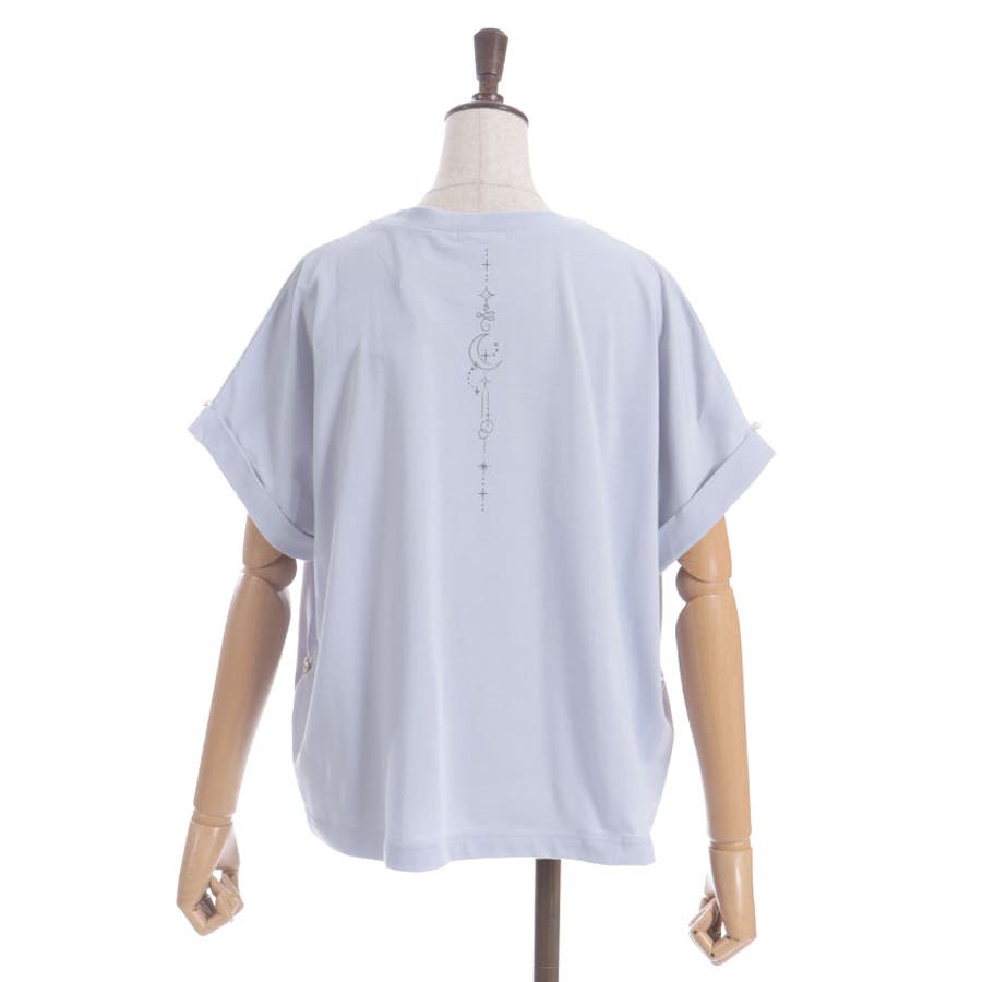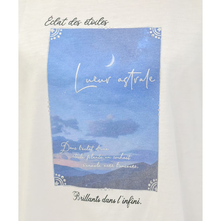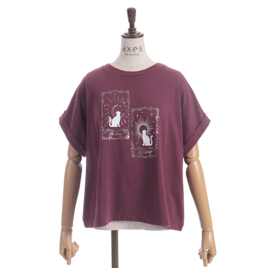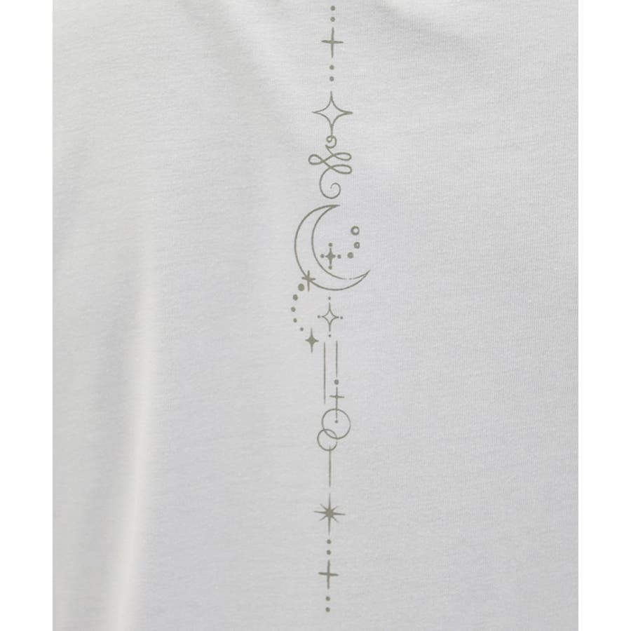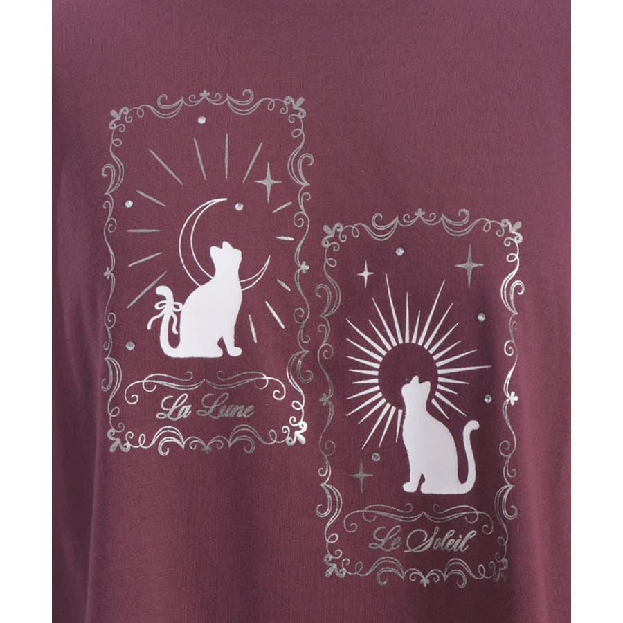 フォトプリント、前後プリント、大きめの星座や、太陽と月をメインにしたネコ柄のアソートデザインで、カラーによって印象がガラッと変わるこだわりのデザイン。