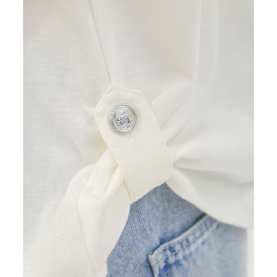 ゆったりとしたドルマンシルエットで、両裾はタブで上げることができて、シルエットを変えて楽しむことができるアイテム。