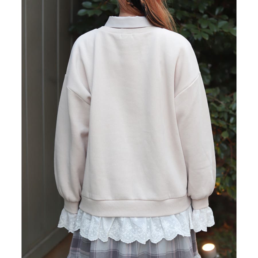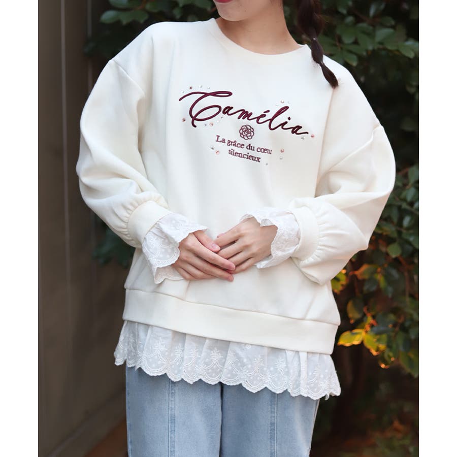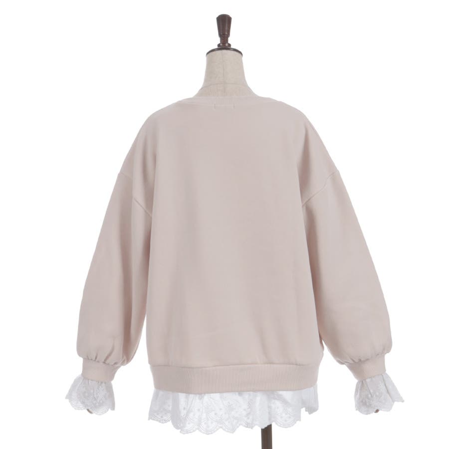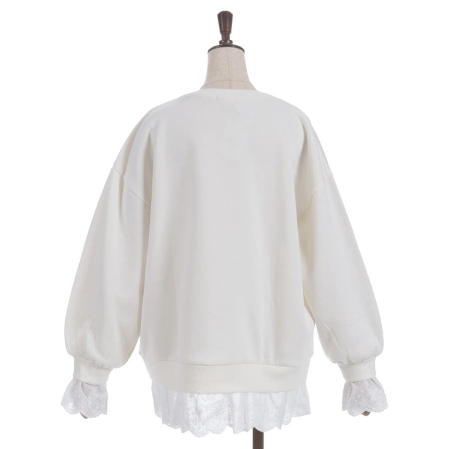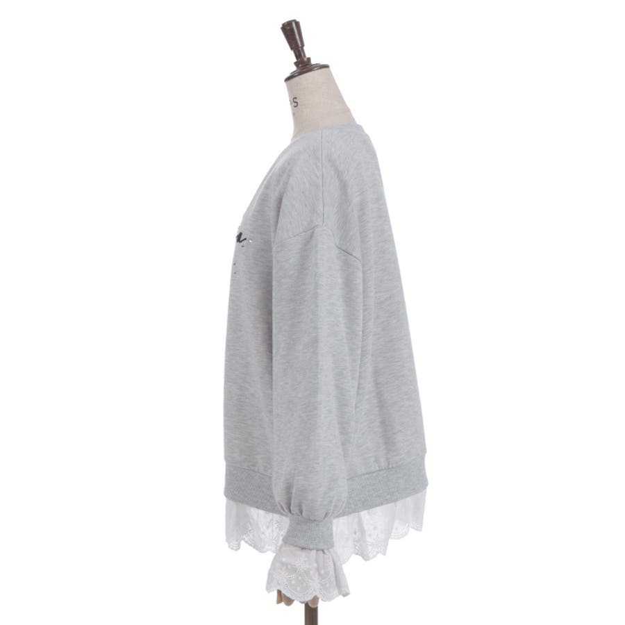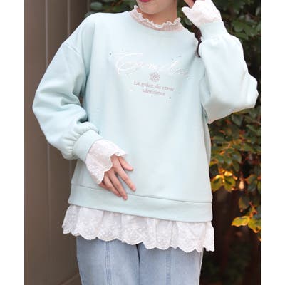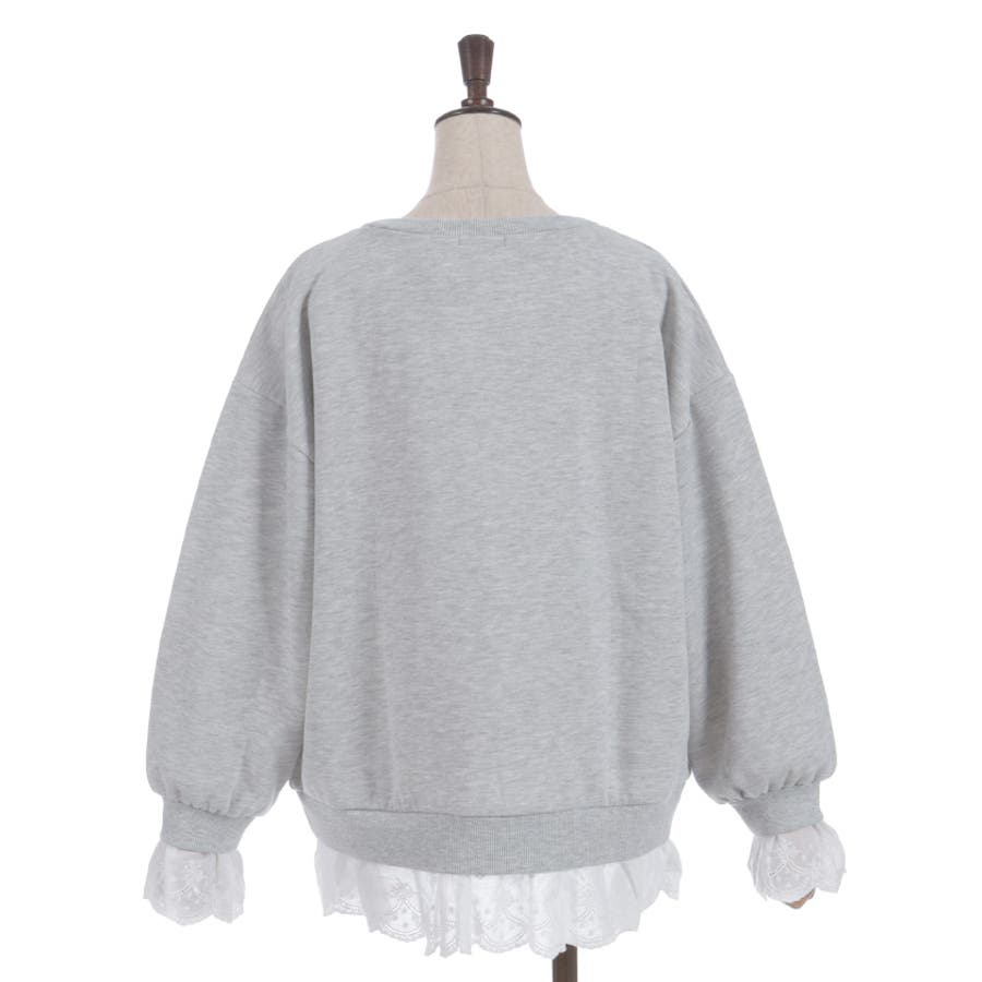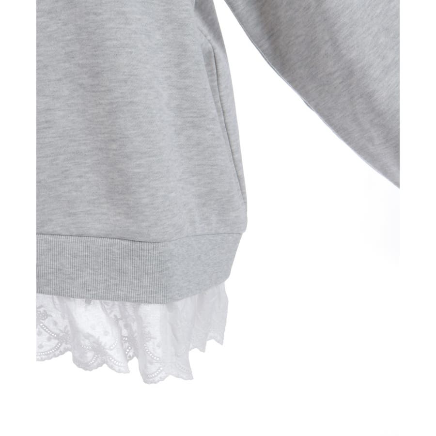 トレンドライクなコットンレースドッキングの、裏起毛トレーナーです。
