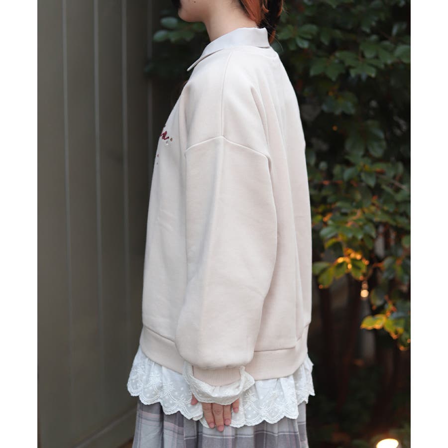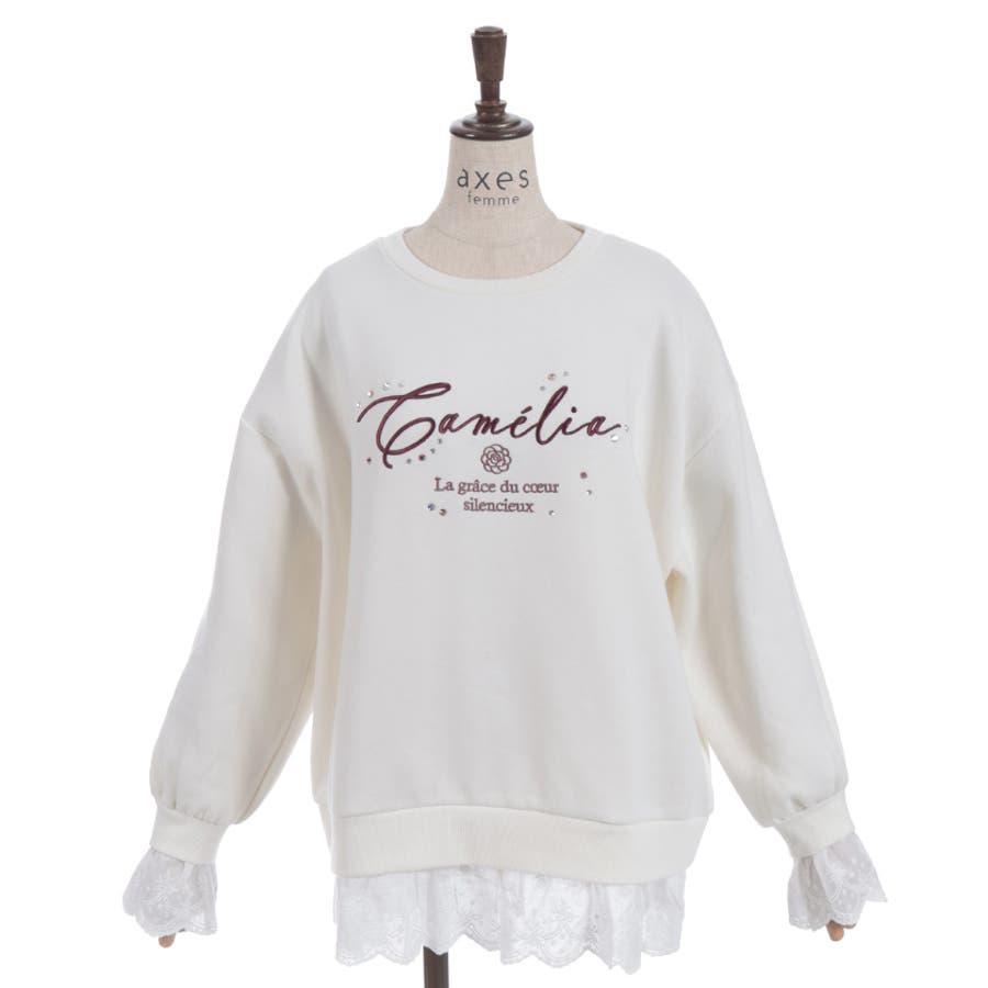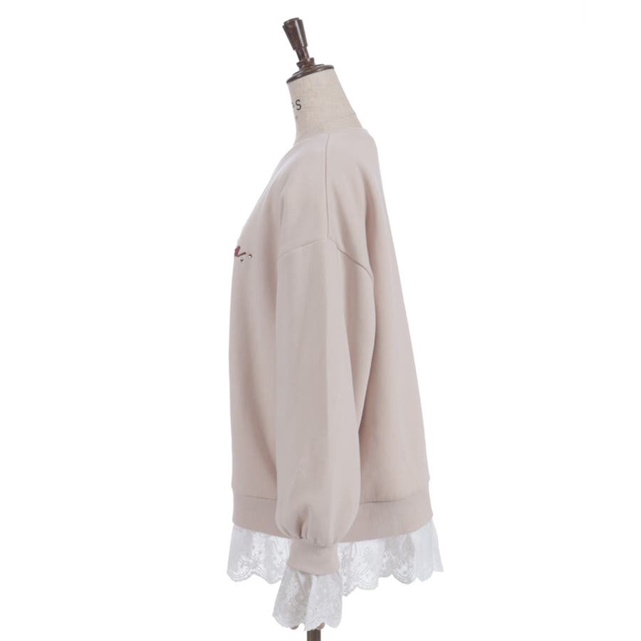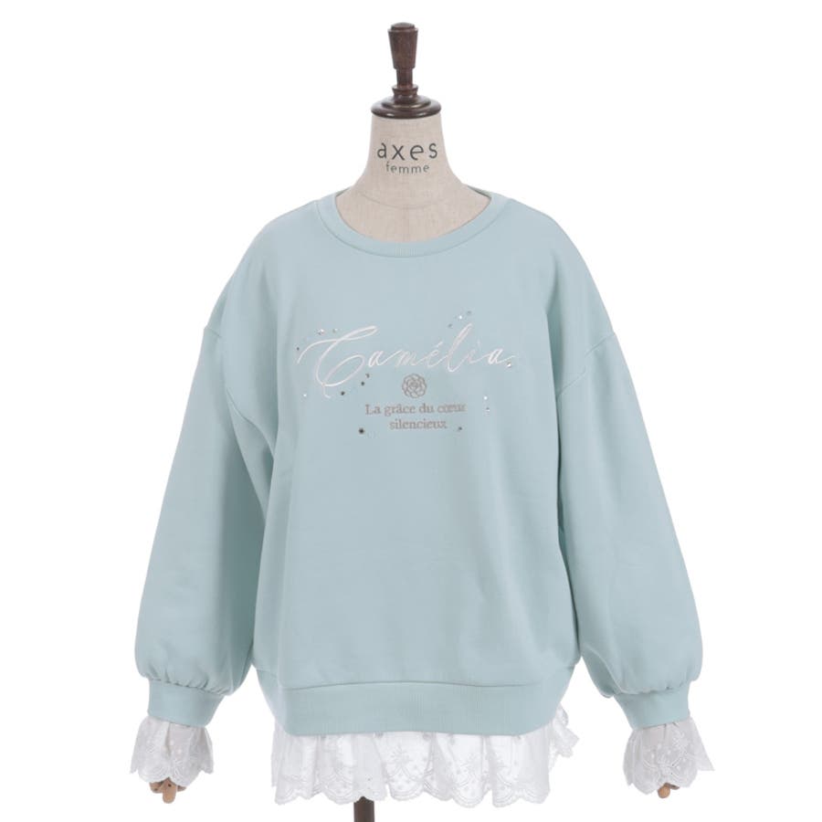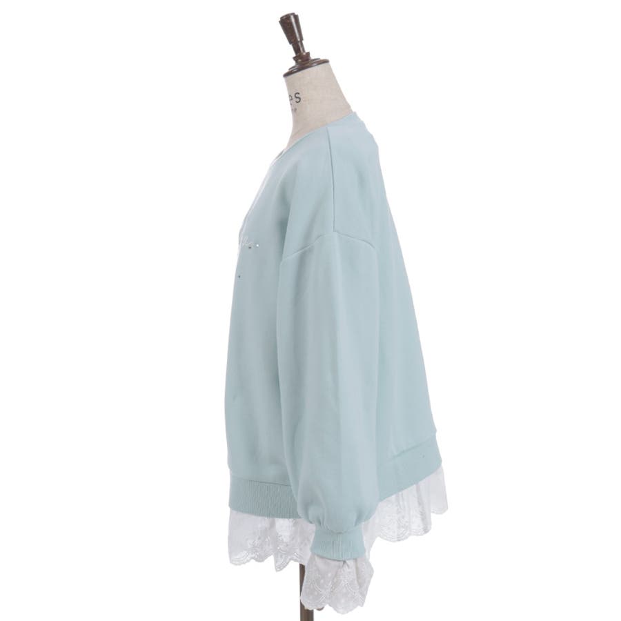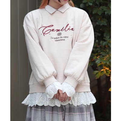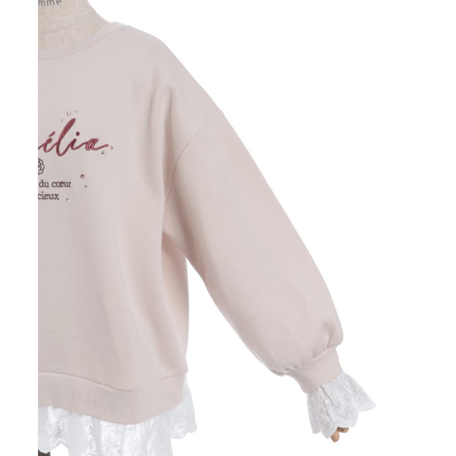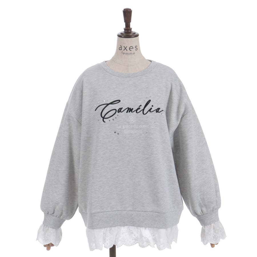 トレンドライクなコットンレースドッキングの、裏起毛トレーナーです。
