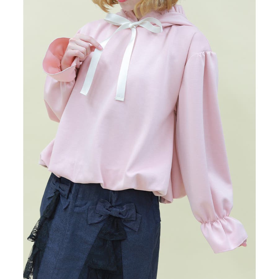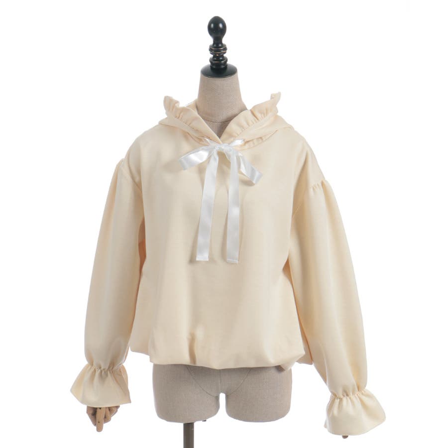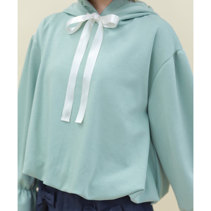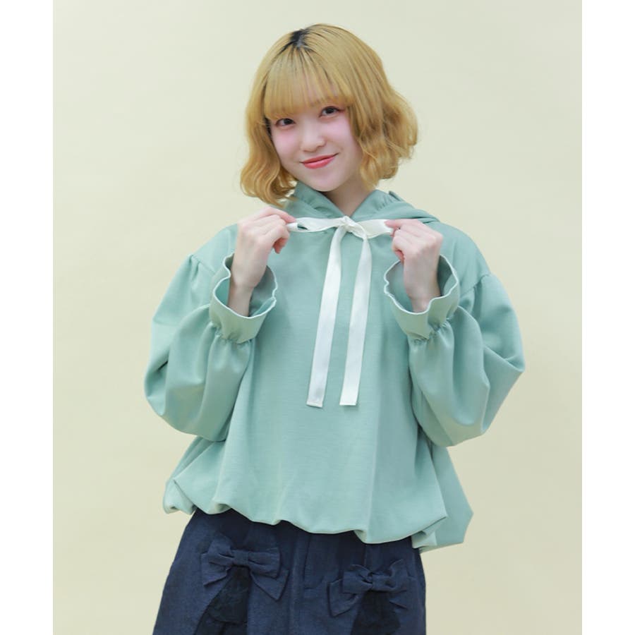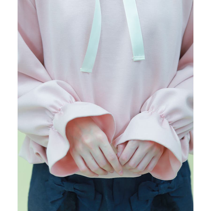 トレンド感のあるバルーンシルエットをあしらったフード付きのスウェットです。