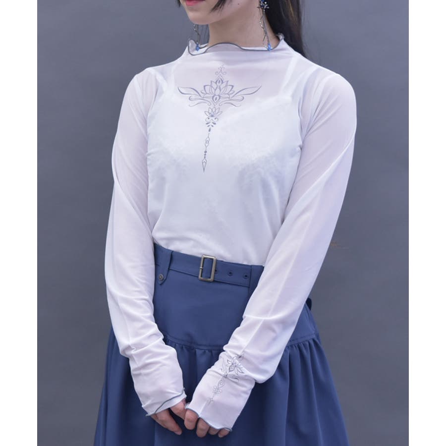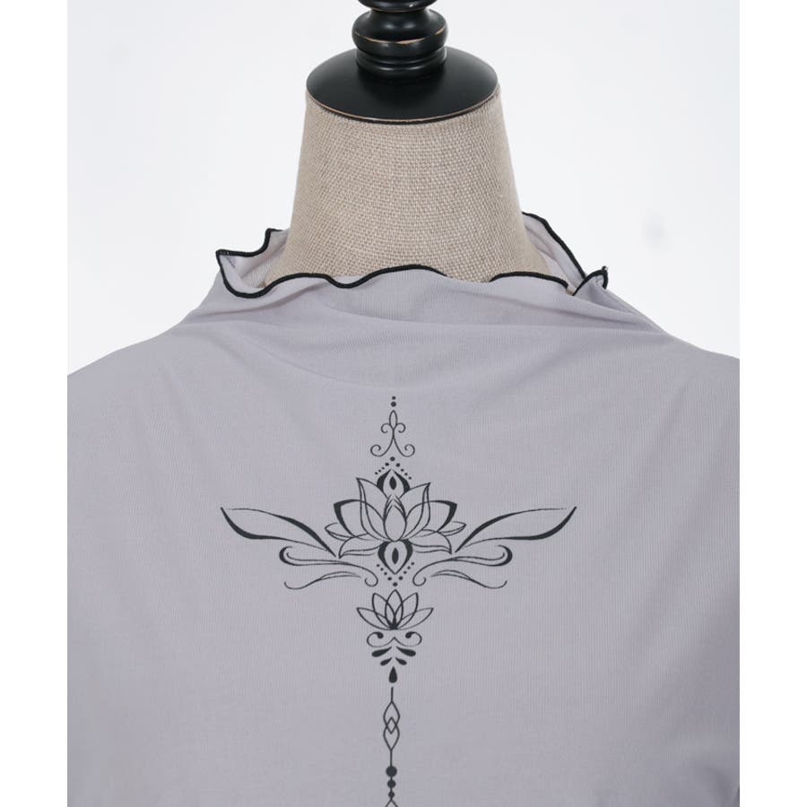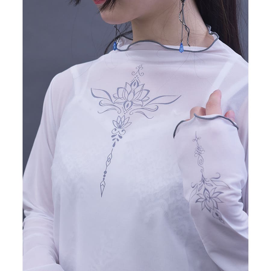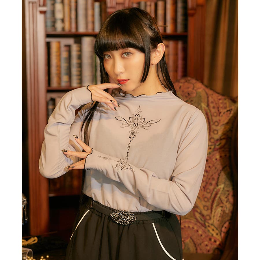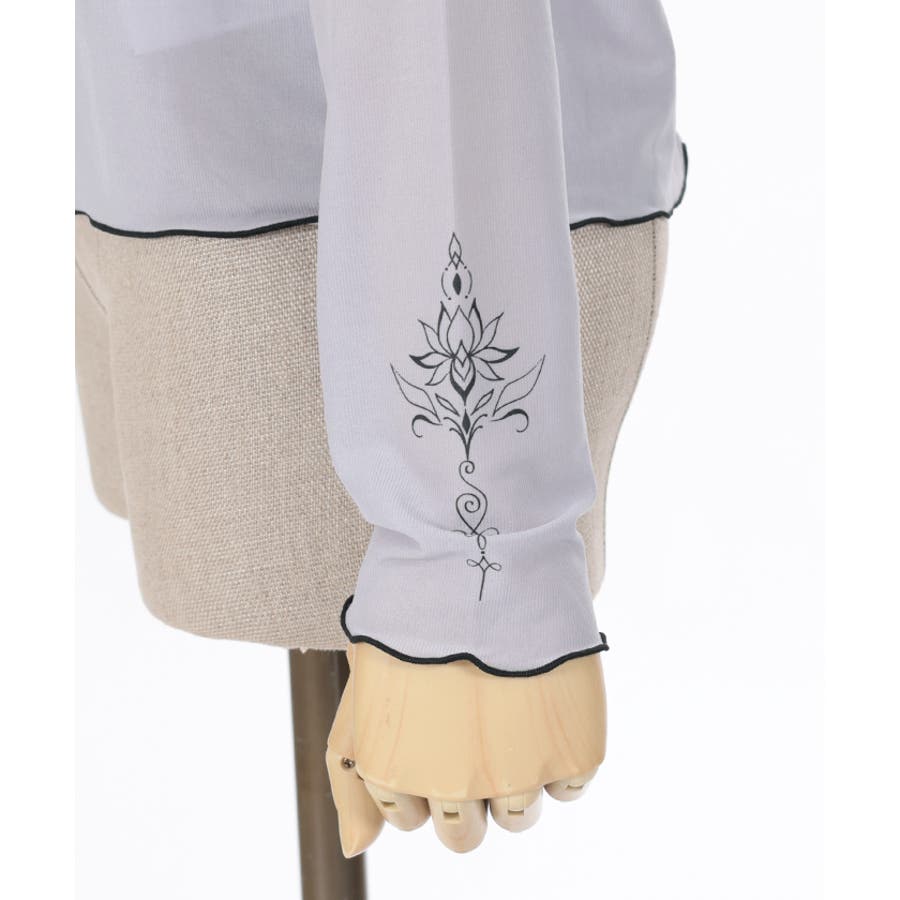 睡蓮モチーフを繊細なタッチでタトゥー風デザインプリントであしらったトップスです。