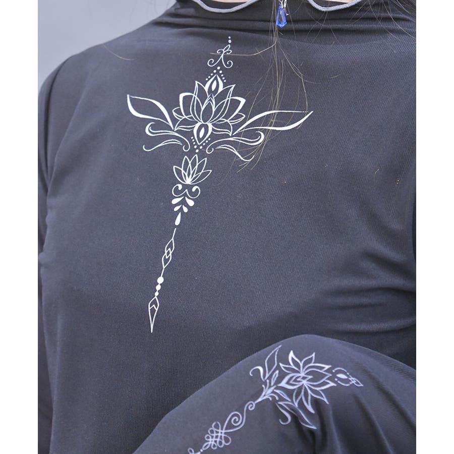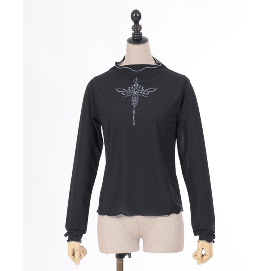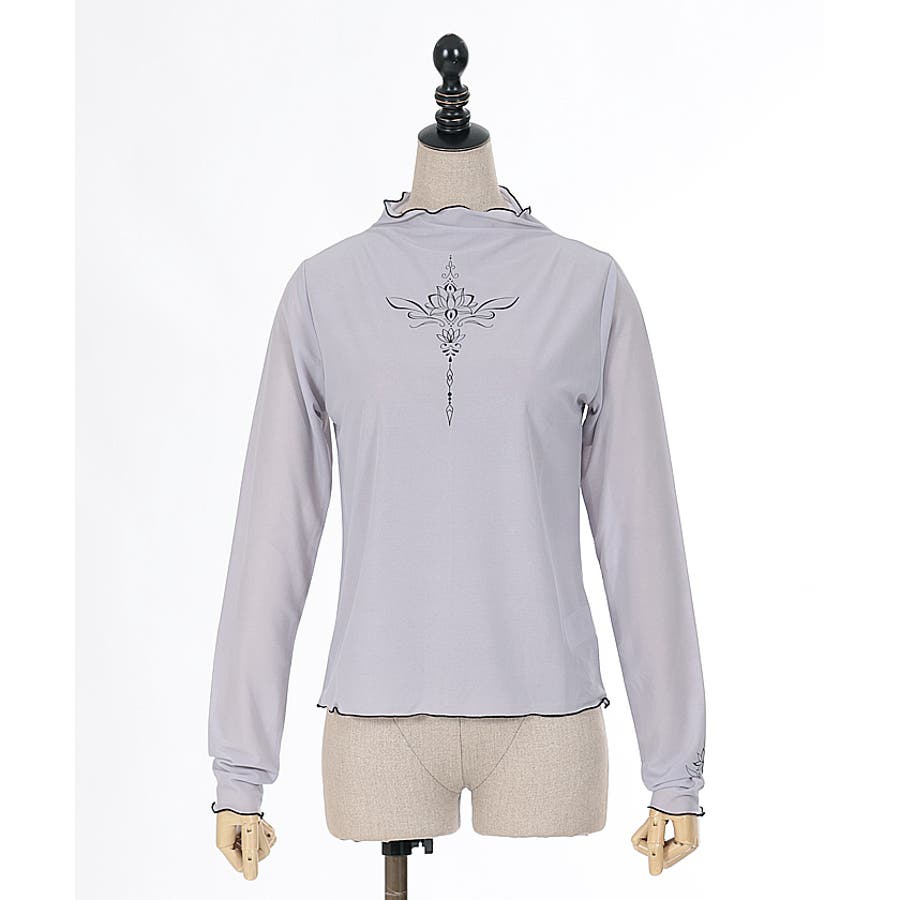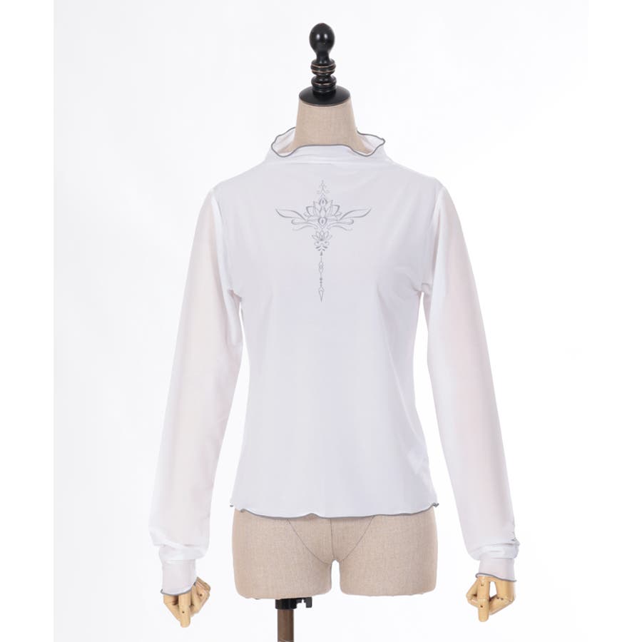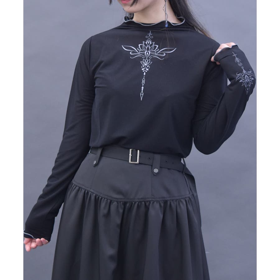 睡蓮モチーフを繊細なタッチでタトゥー風デザインプリントであしらったトップスです。