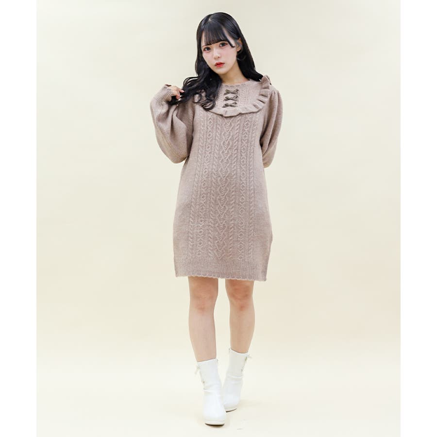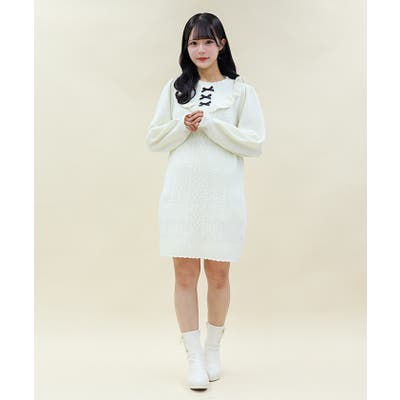 あざと可愛いガーリーコーデにピッタリなニットワンピースです。