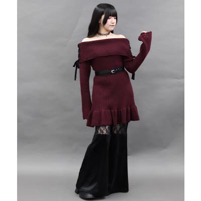 オフショルフリルニットチュニ