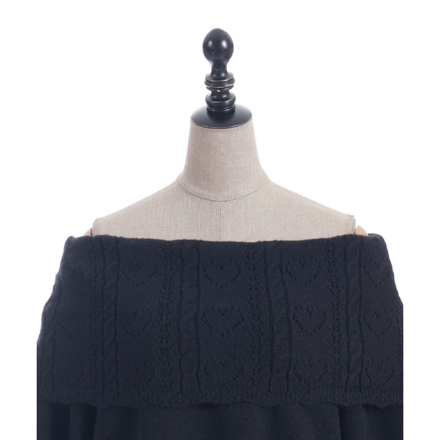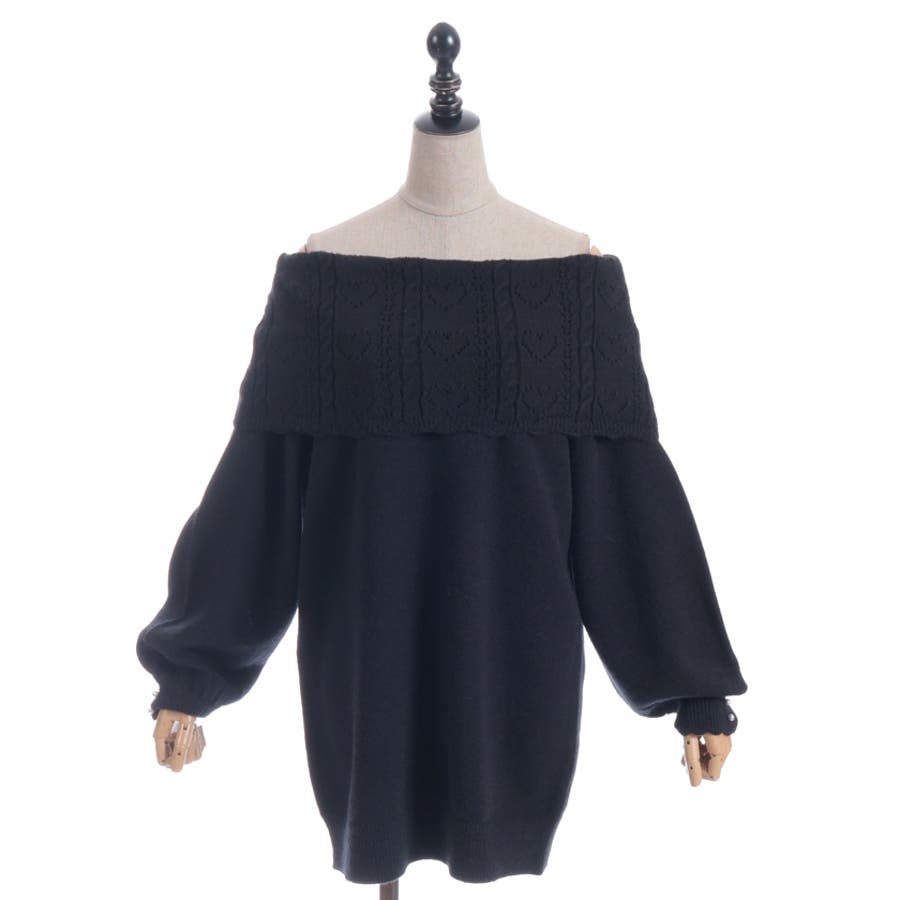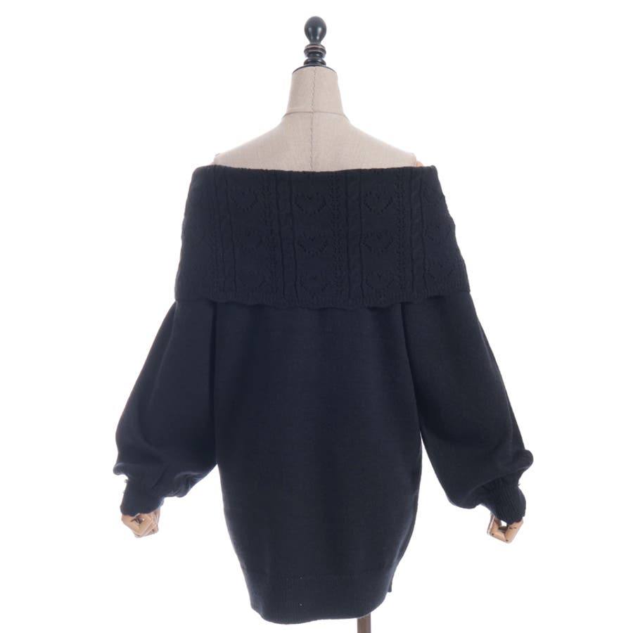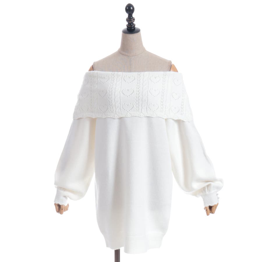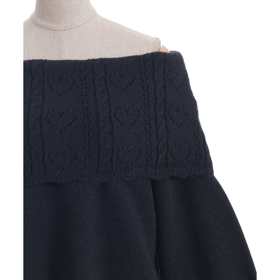ハート×ケーブル柄をあしらった、オフタートルのニットチュニックです。