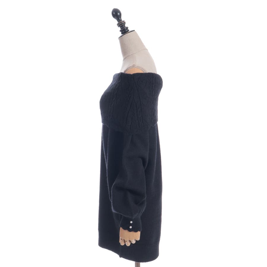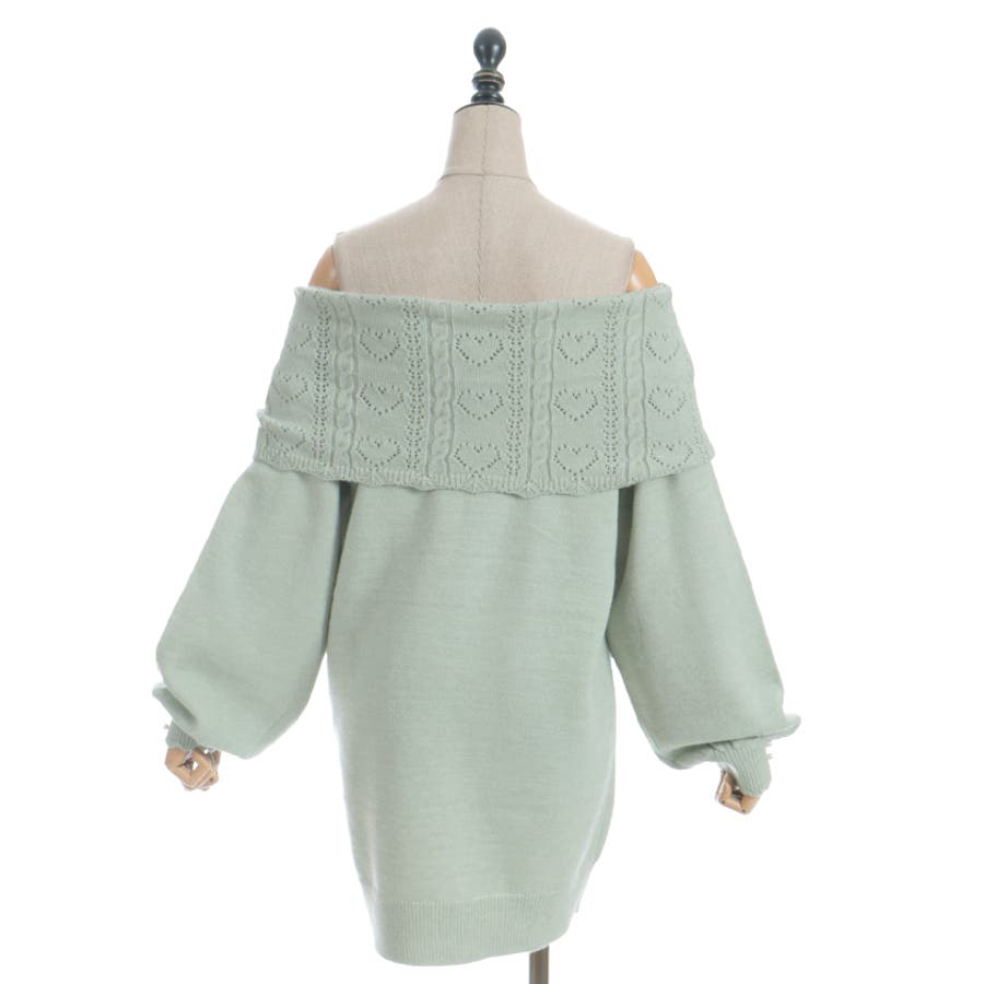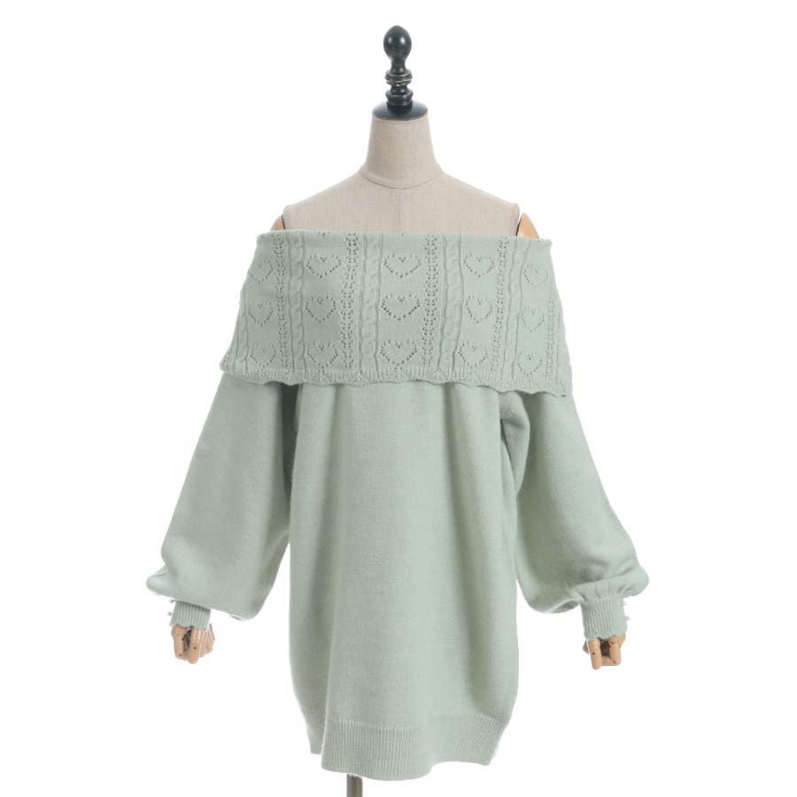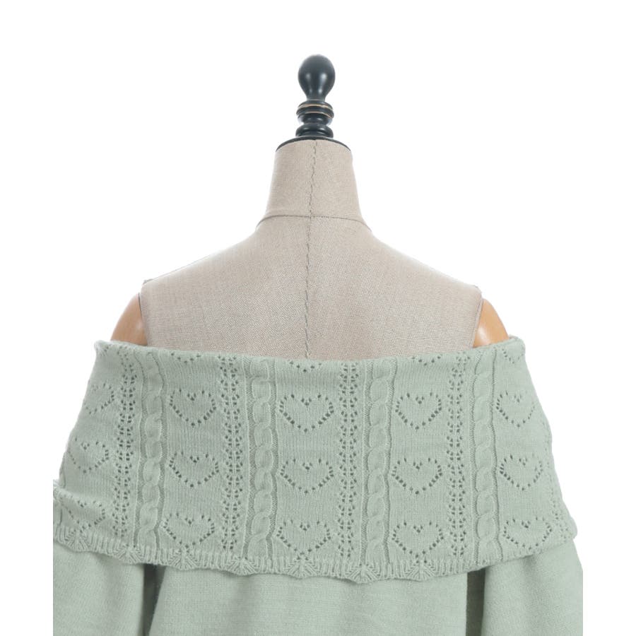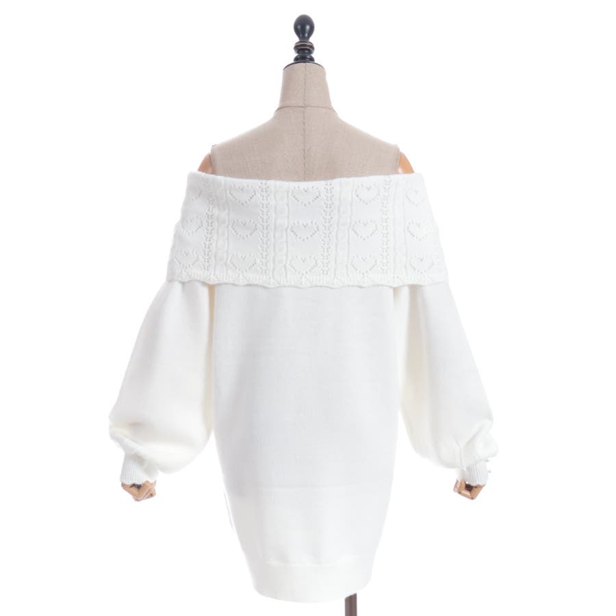 ハート×ケーブル柄をあしらった、オフタートルのニットチュニックです。