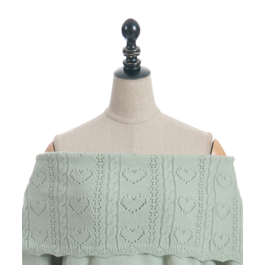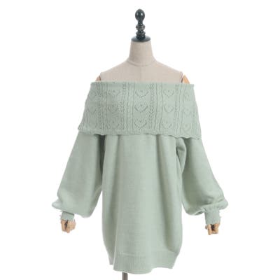ハートモチーフの編み柄がガーリーなニットチュニック