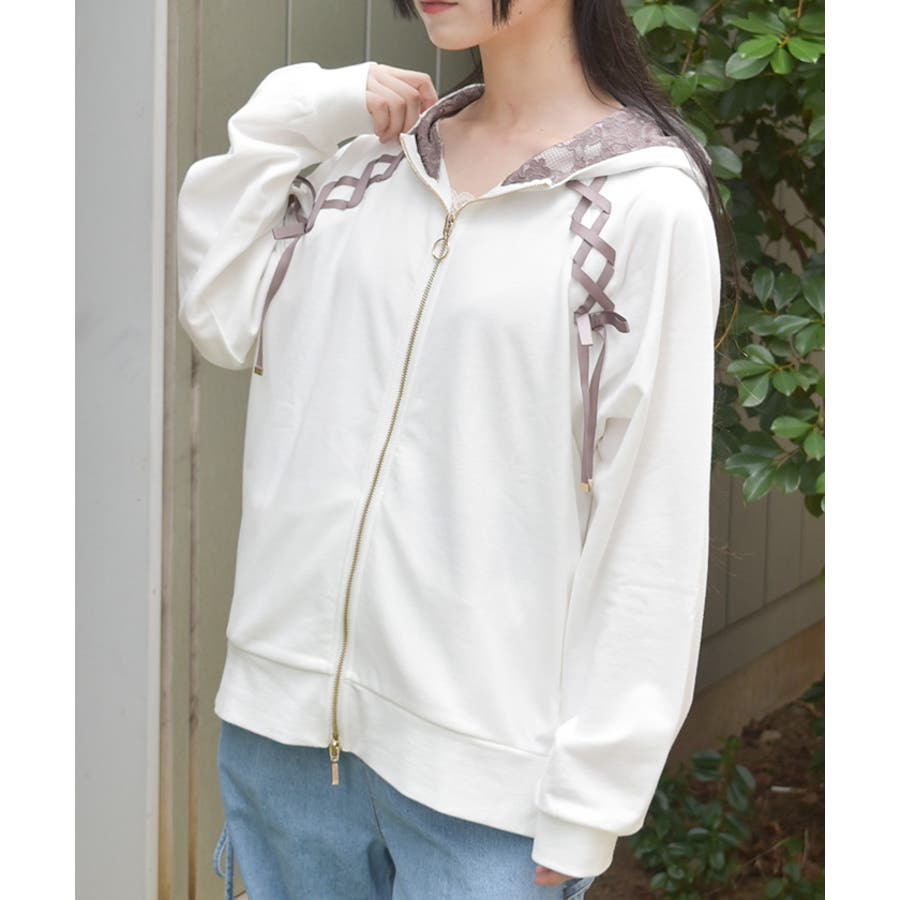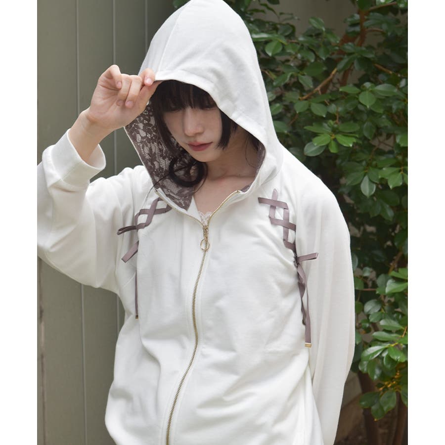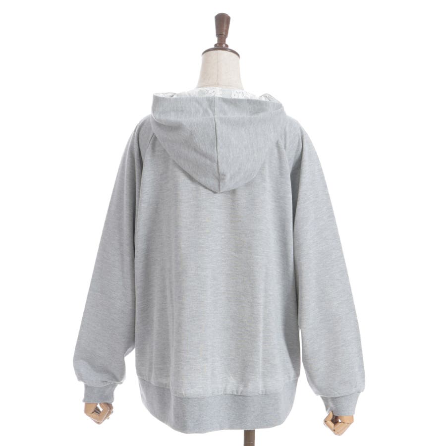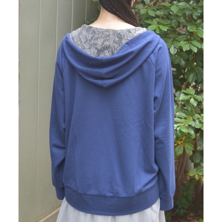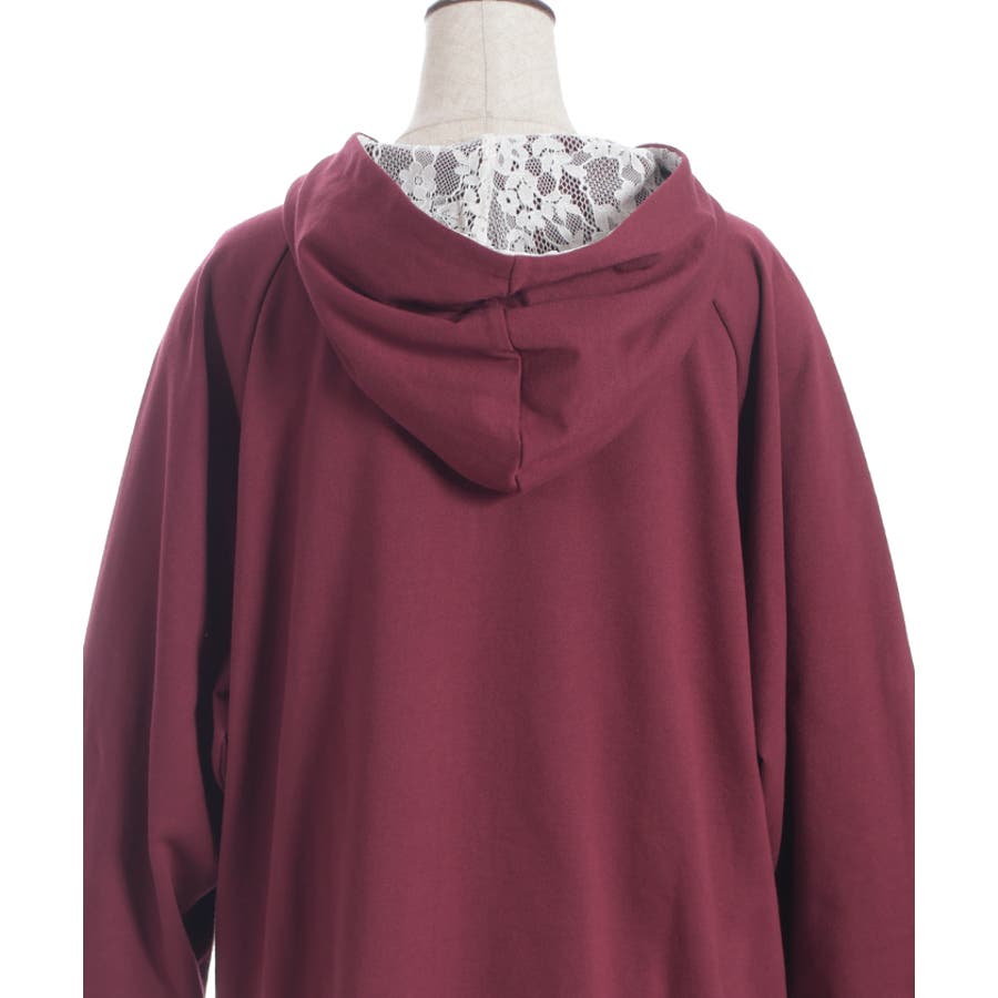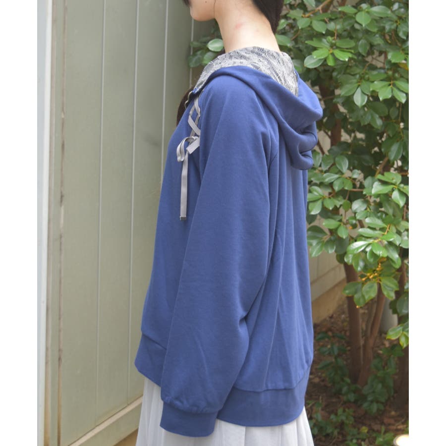 フード裏には、配色のレース生地を重ねてフェミニン感をプラス。
