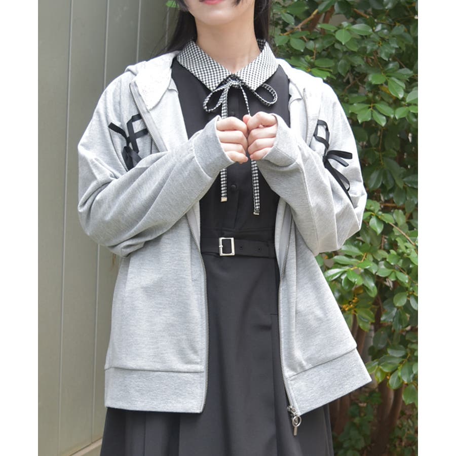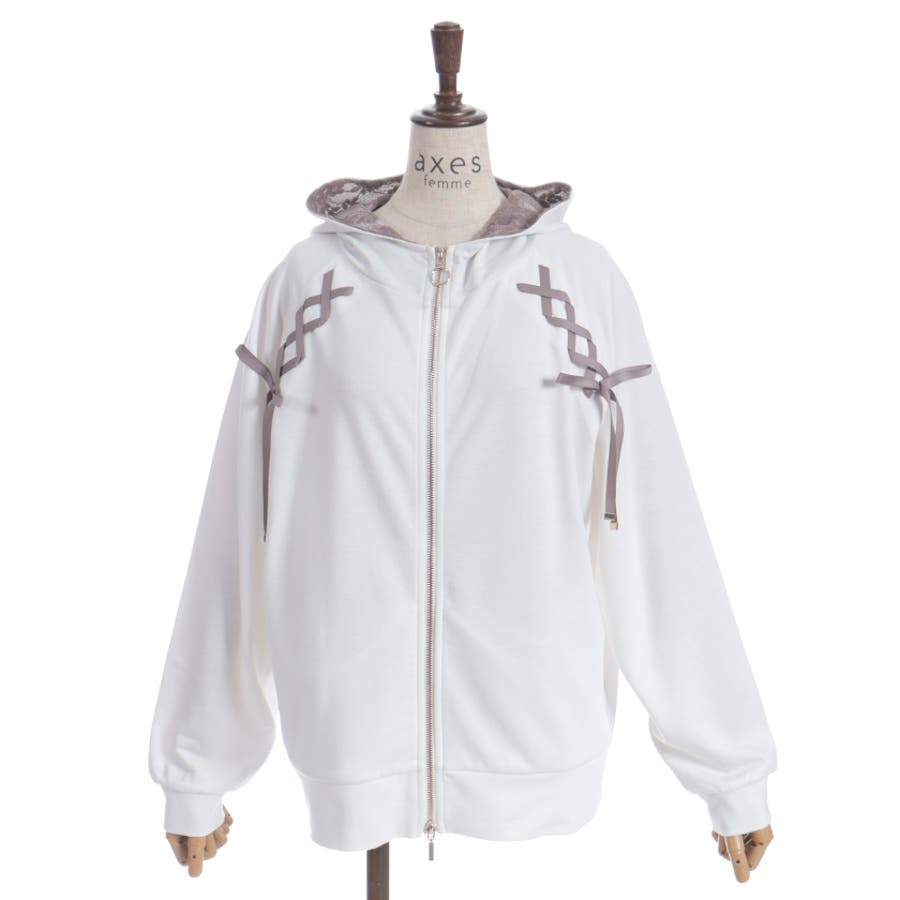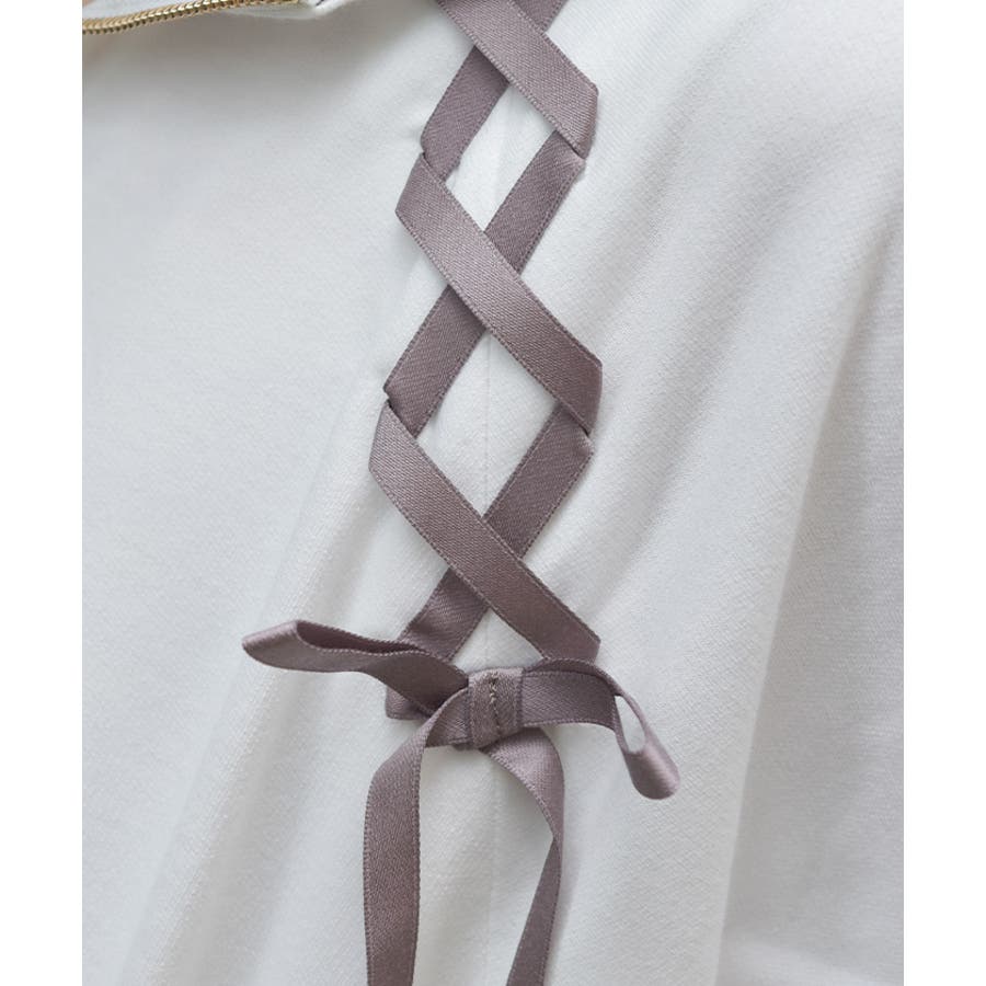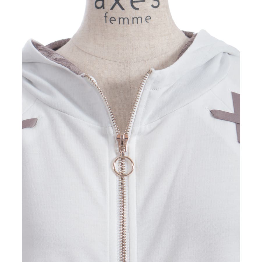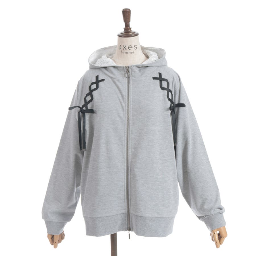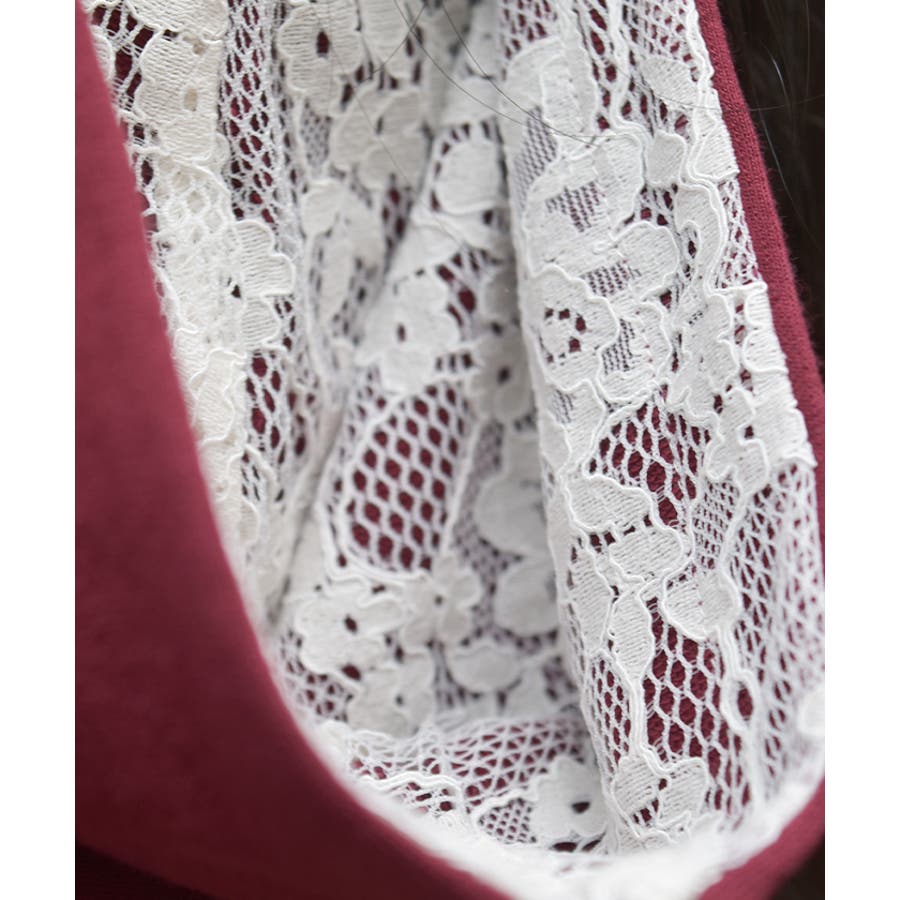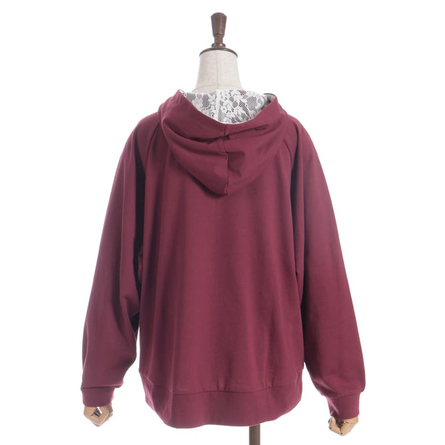 フード裏には、配色のレース生地を重ねてフェミニン感をプラス。