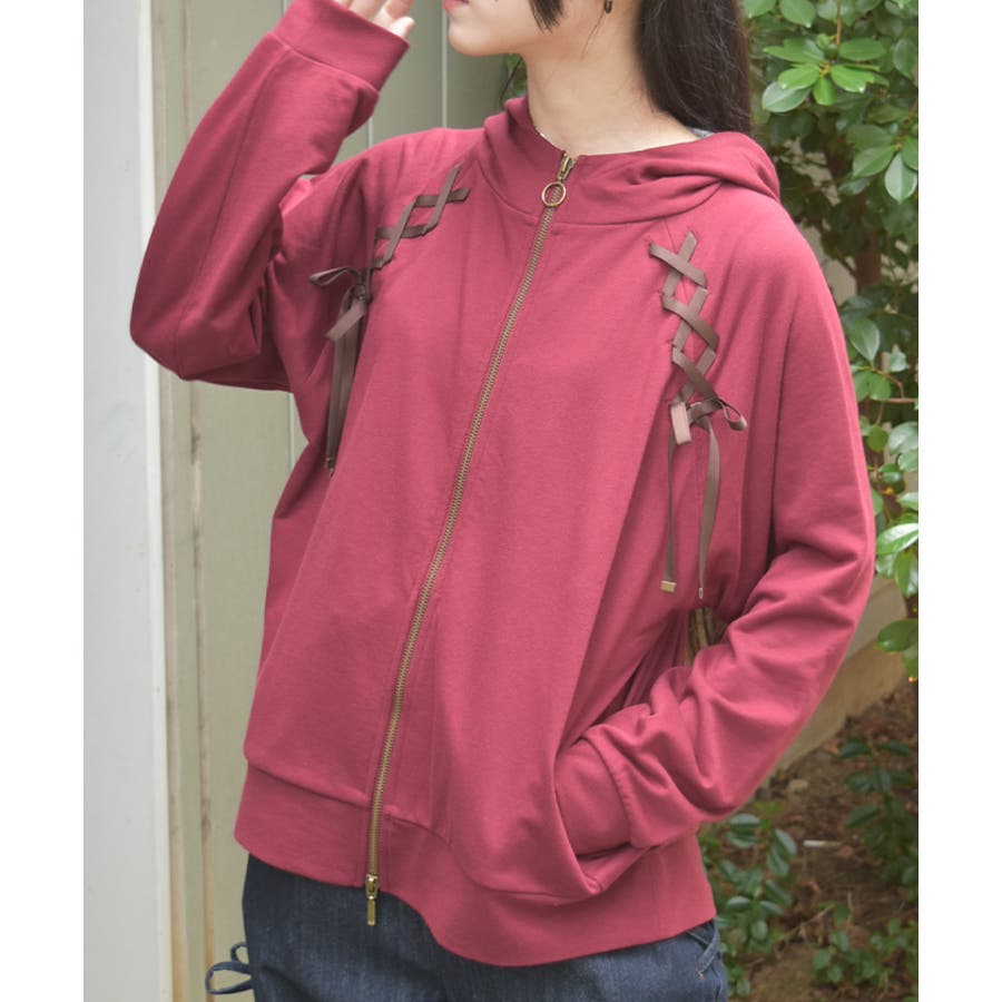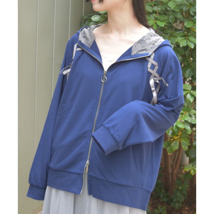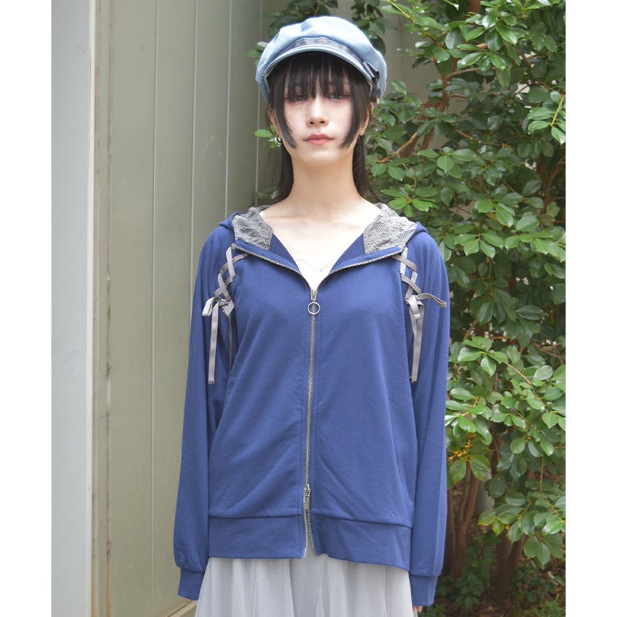 UVカット機能付き!レースアップデザインが目を惹くパーカー