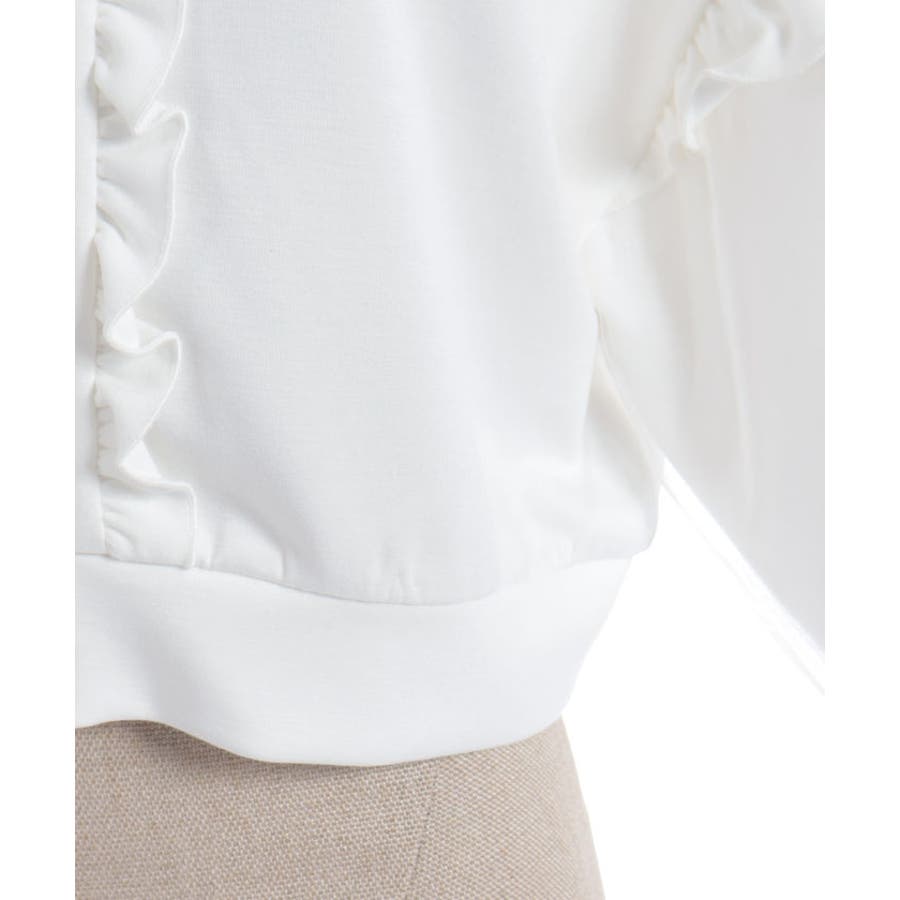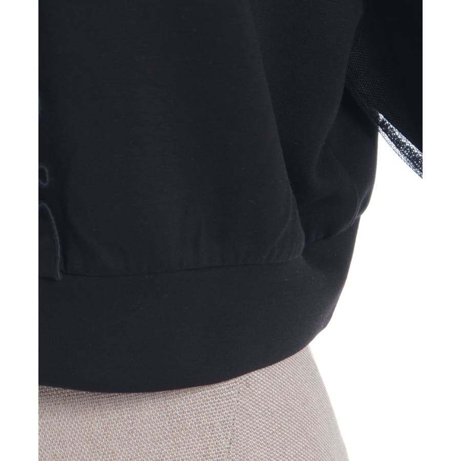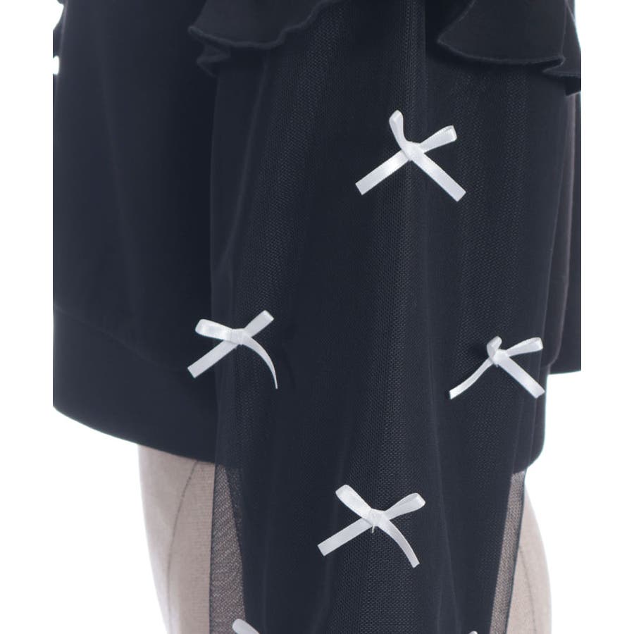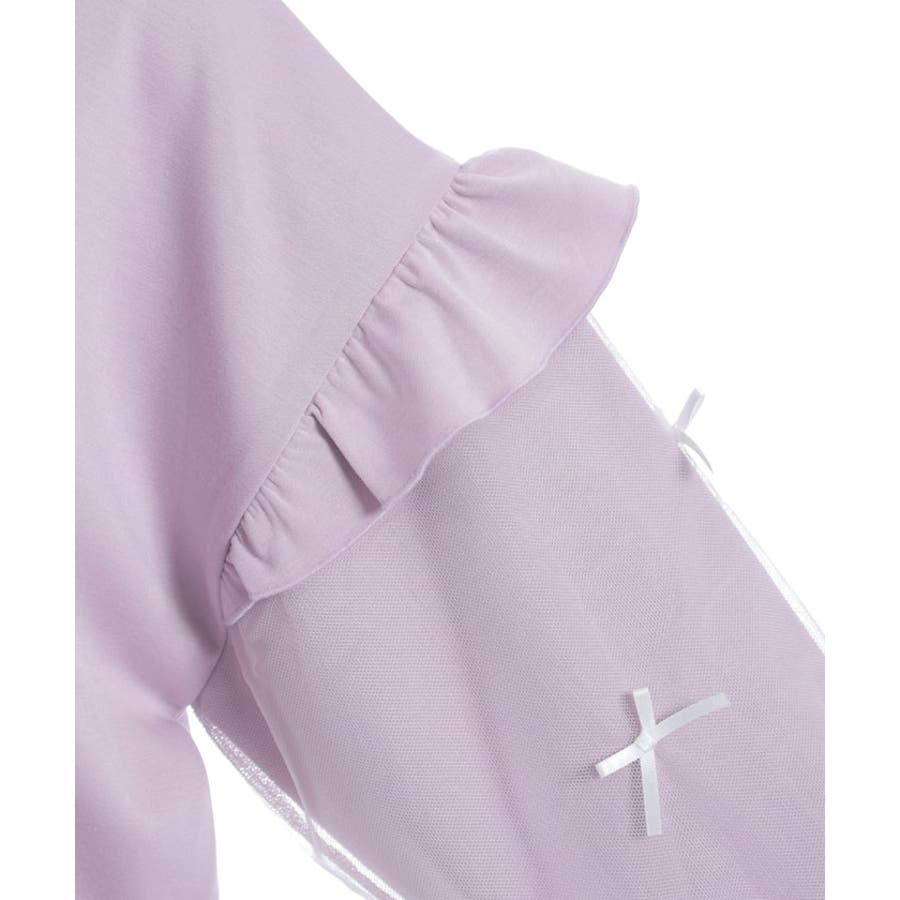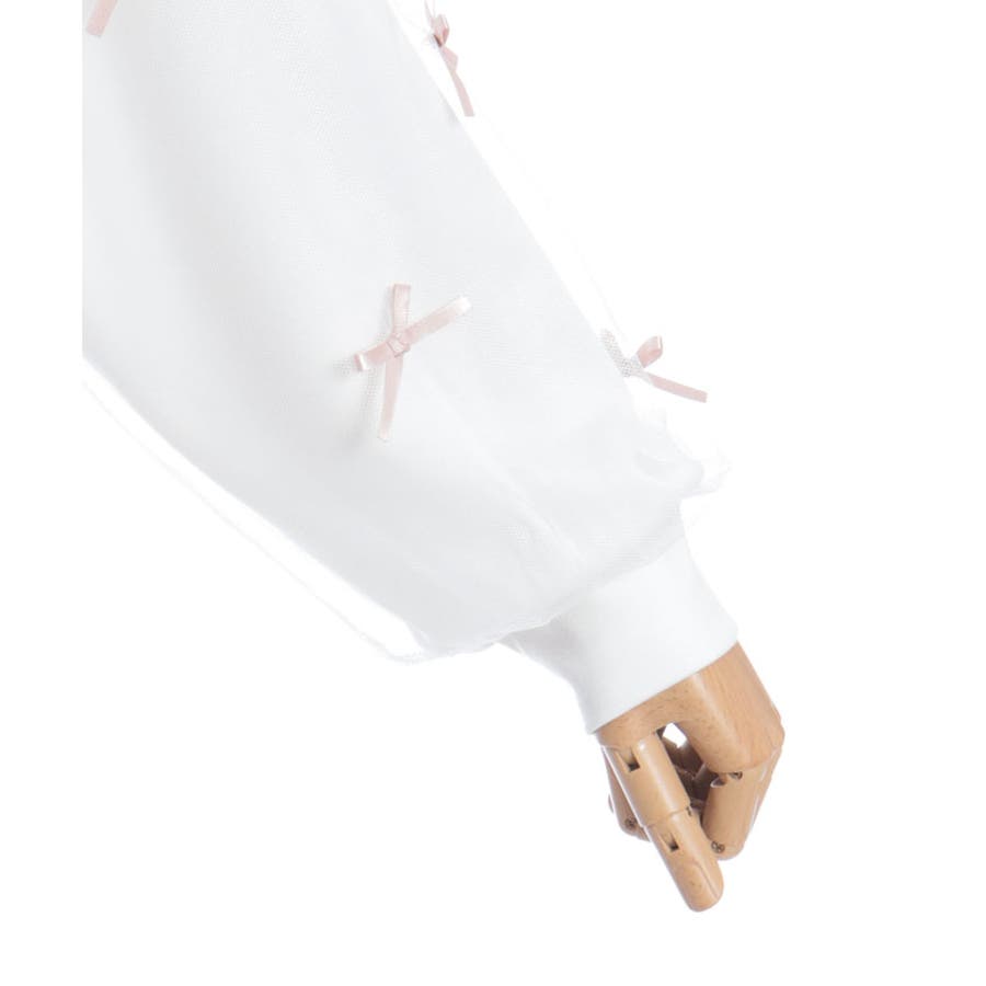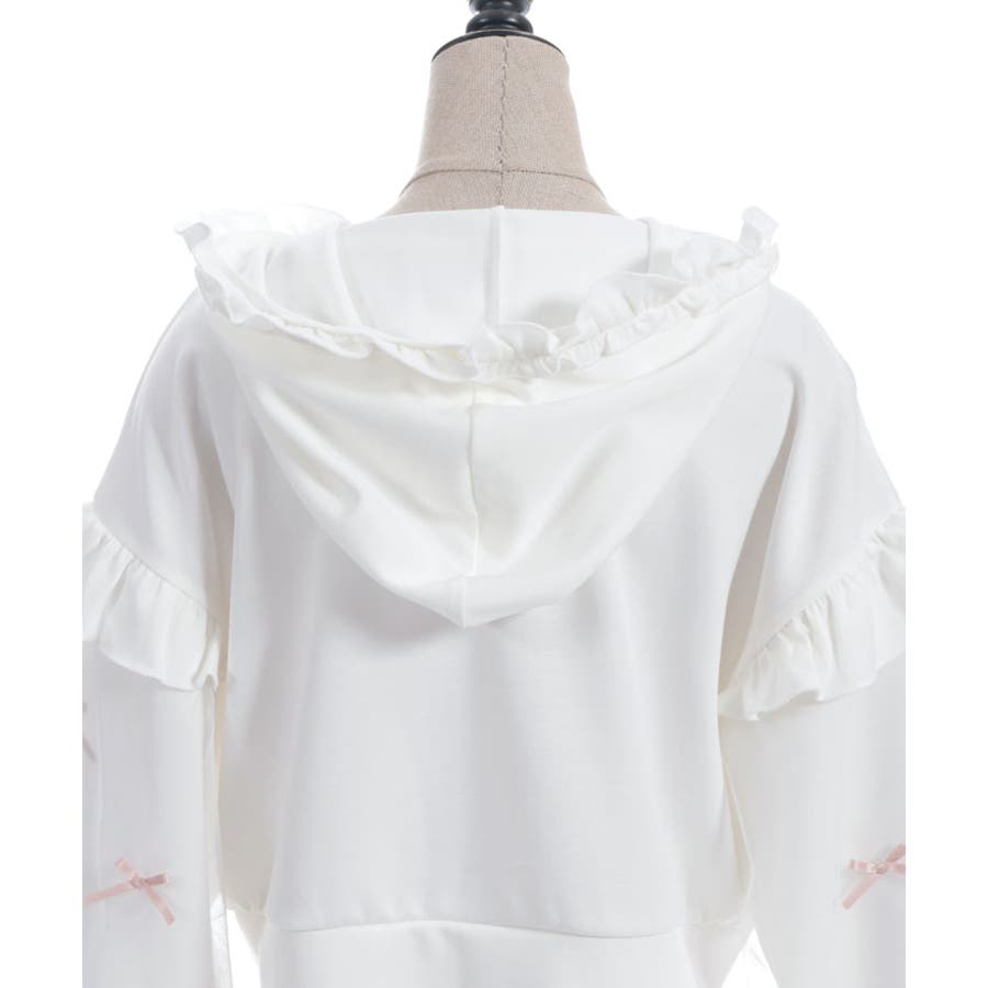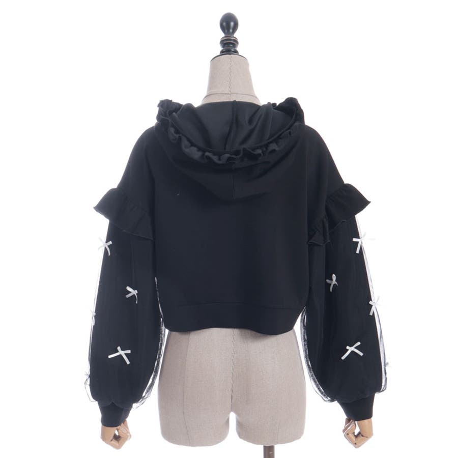 袖にチュールにリボンを散りばめたガーリーなパーカーです。