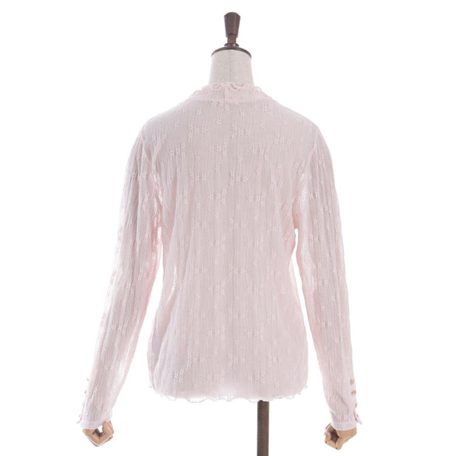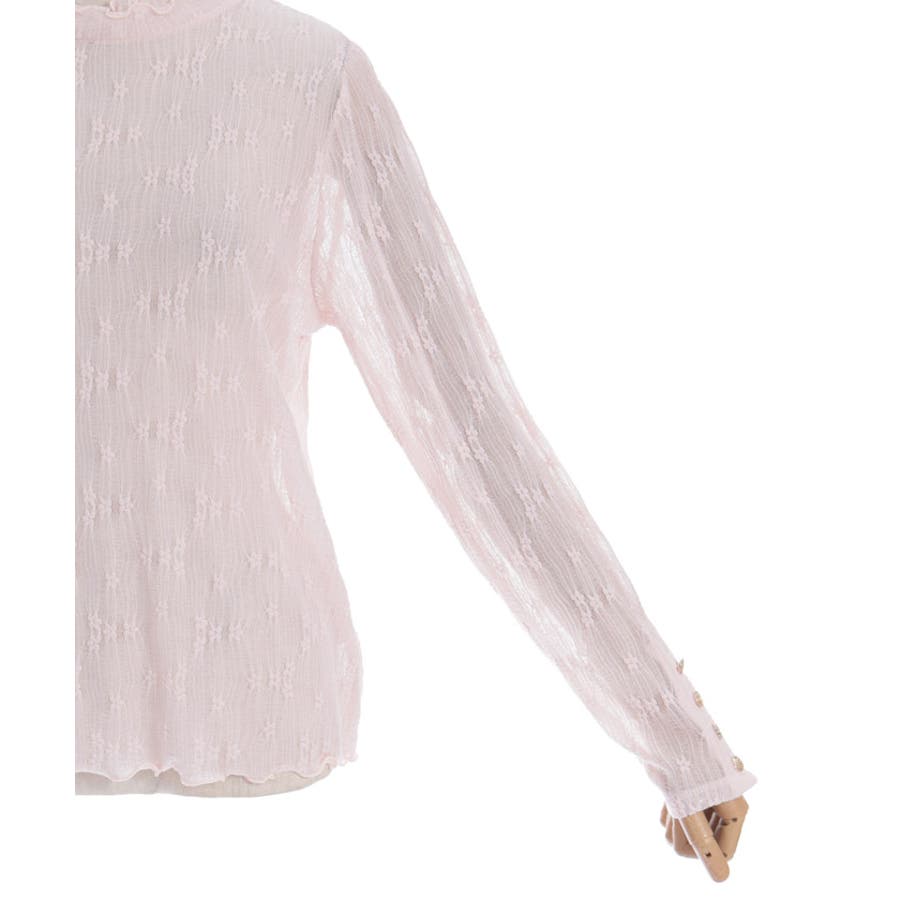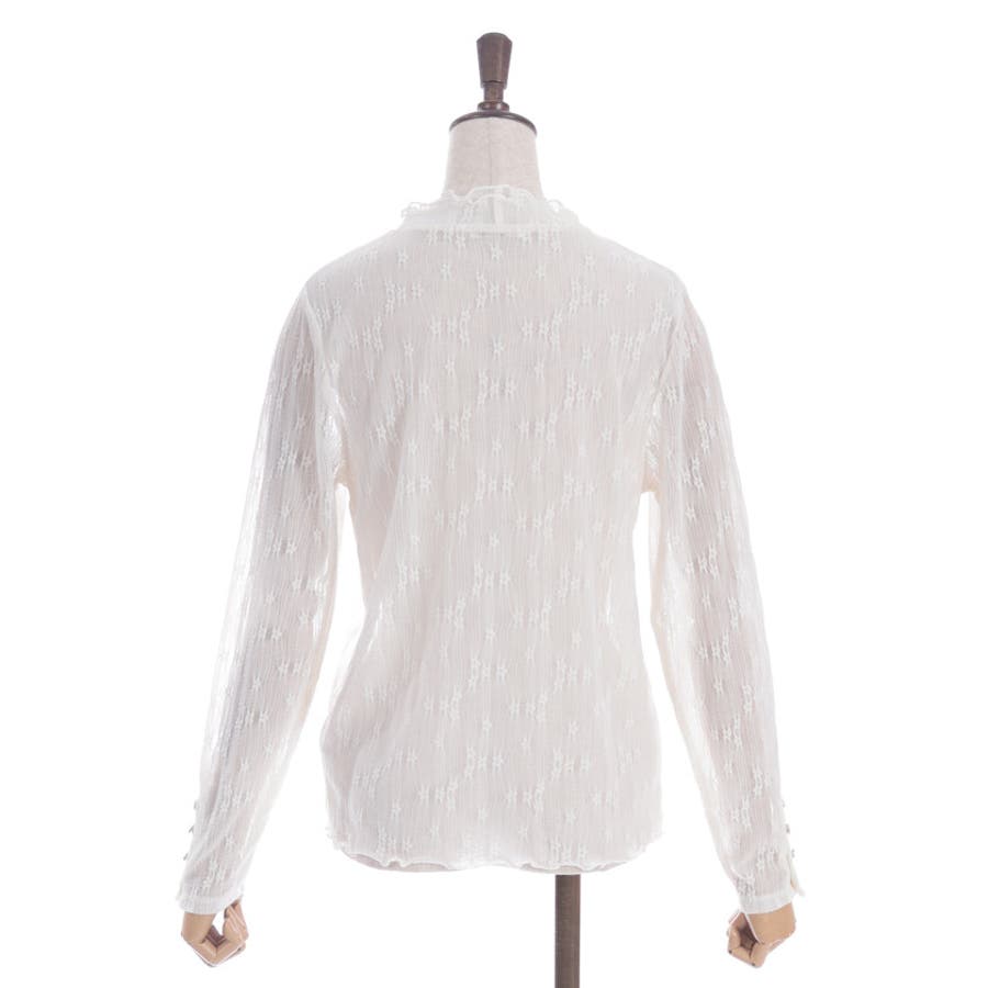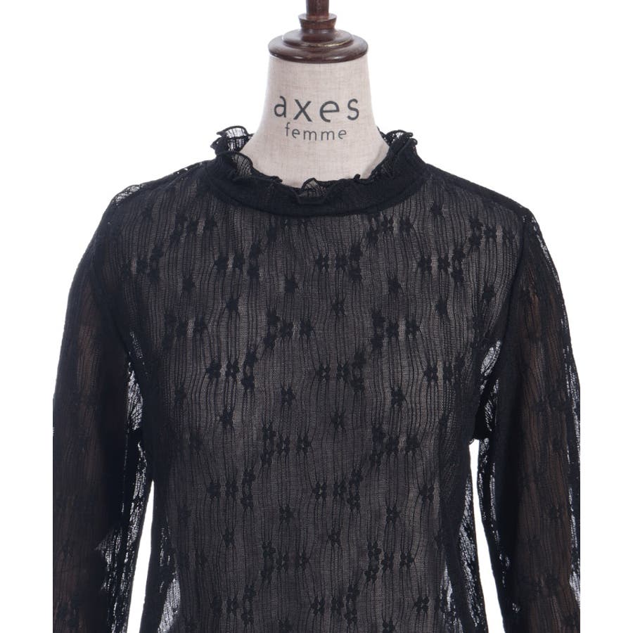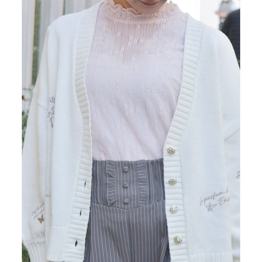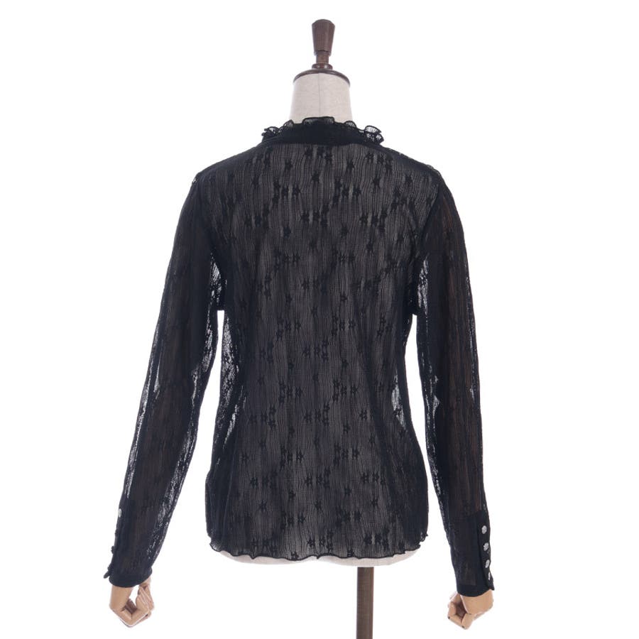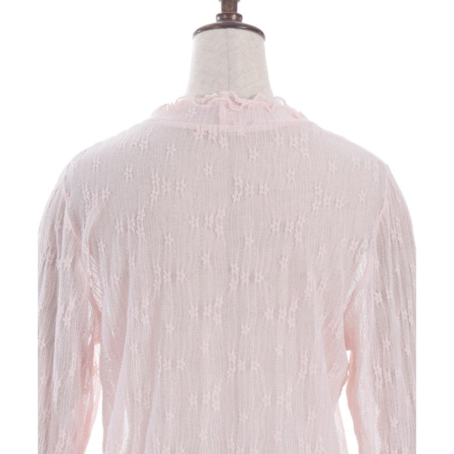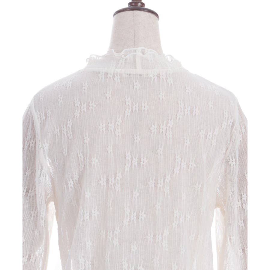 袖の華やかな連ボタンがポイントのレースのシアーインナーです。