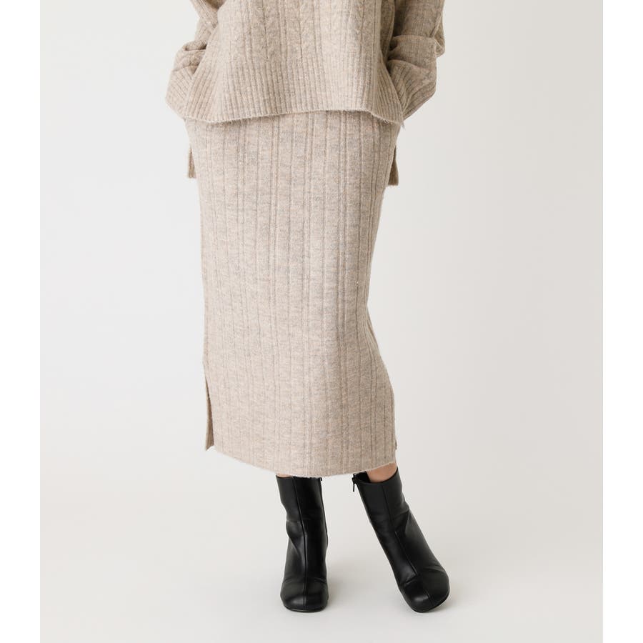 素材に拘り、モコモコとした編み柄に仕上げたWIDE RIB KNIT TIGHTSKIRT。しっかりとした肉感でタイトシルエットながらもボディーラインをあまり拾わず、着回しの効く1着。別途展開中の「CABLEKNIT HOODIE」とのセットアップ着用はもちろん、カジュアルな裏毛トップスとも相性抜群な重宝できる1枚です。