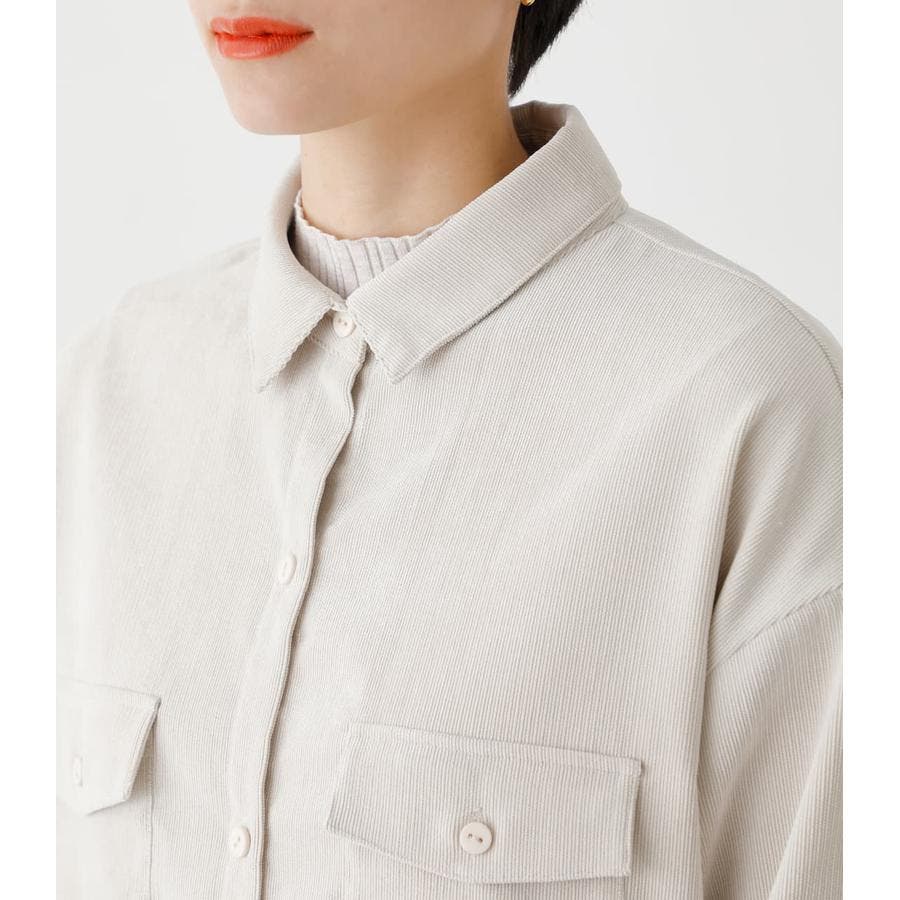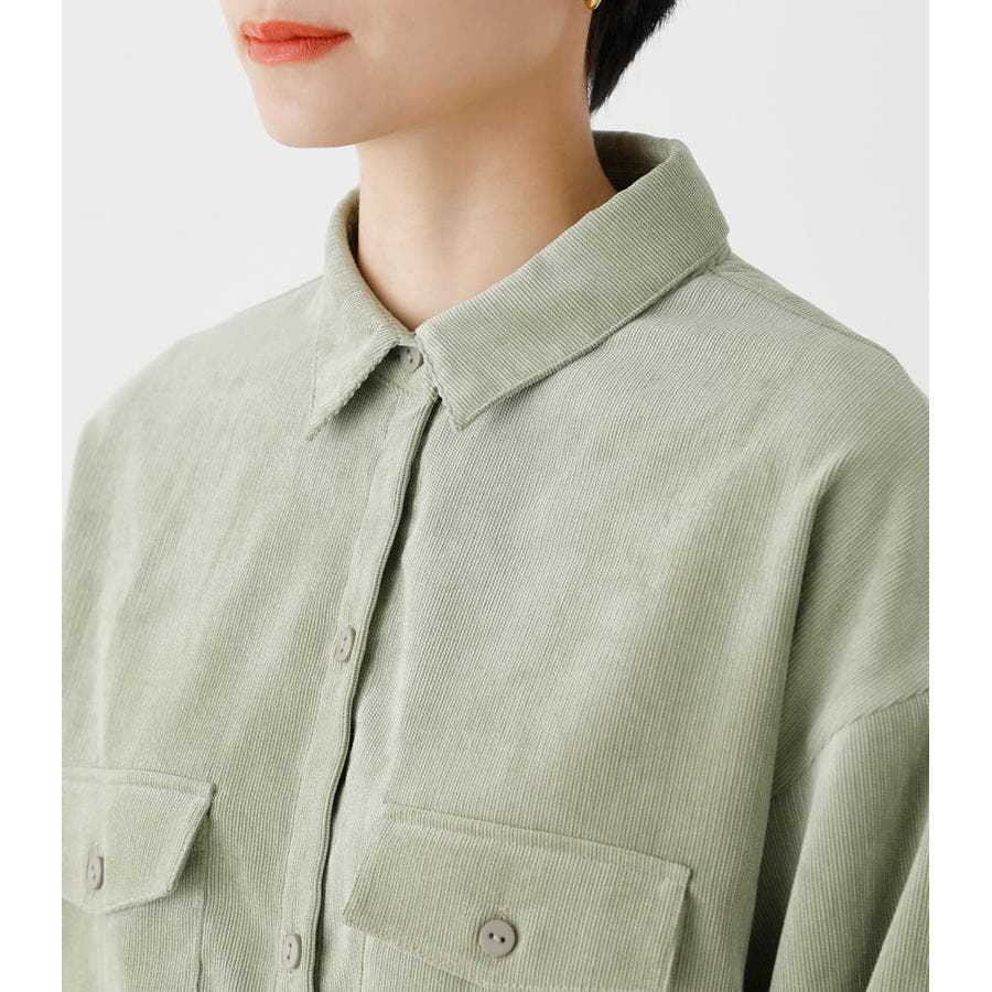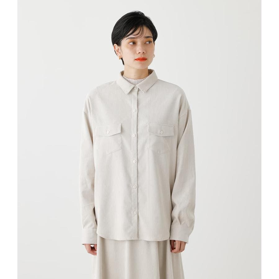 ・ベルト付きのコーデュロイシャツブラウスです。アウトポケットが今年らしいデザインです。