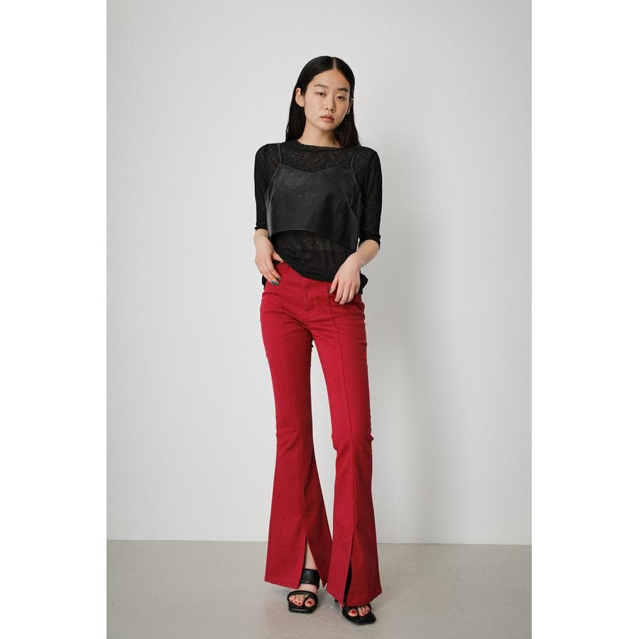 ・カラーパンツと合わせてトレンドライクなスタイルに。
